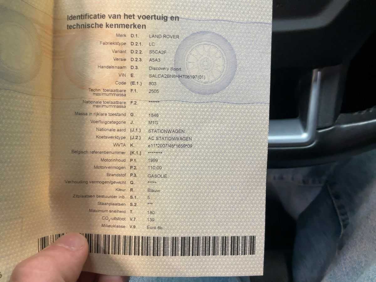 Nee Merk: Land Rover Model: Discovery sport D150 S AWD Bouwjaar: 2017 Afgelezen kilometerstand: 131027km Cilinderinhoud: 1999cc Vermogen (kW): 110kW Brandstof: diesel Datum eerste toelating: 10/2017 APK vervaldatum: 26/10/2027 Transmissie: Automaat Emissieklasse: Euro 6b Aantal sleutels: 2 Nationaliteit documenten: Belgisch Start en rijdt: Ja startinformatie : Start en rijdt Vavato voert geen technische keuring uit.: true Inschrijvingsbewijs - deel 1 : Aanwezig Inschrijvingsbewijs - deel 2: Aanwezig