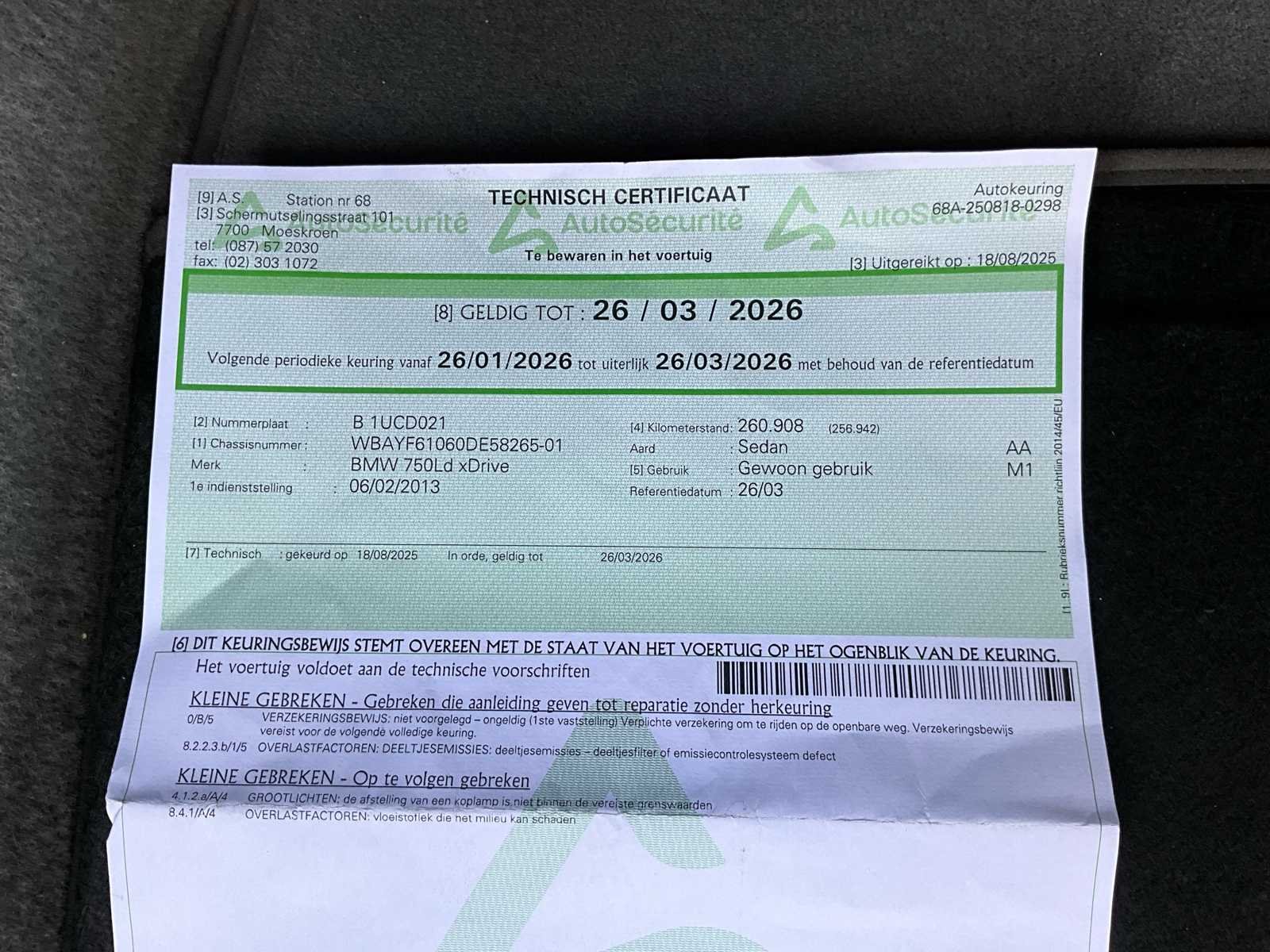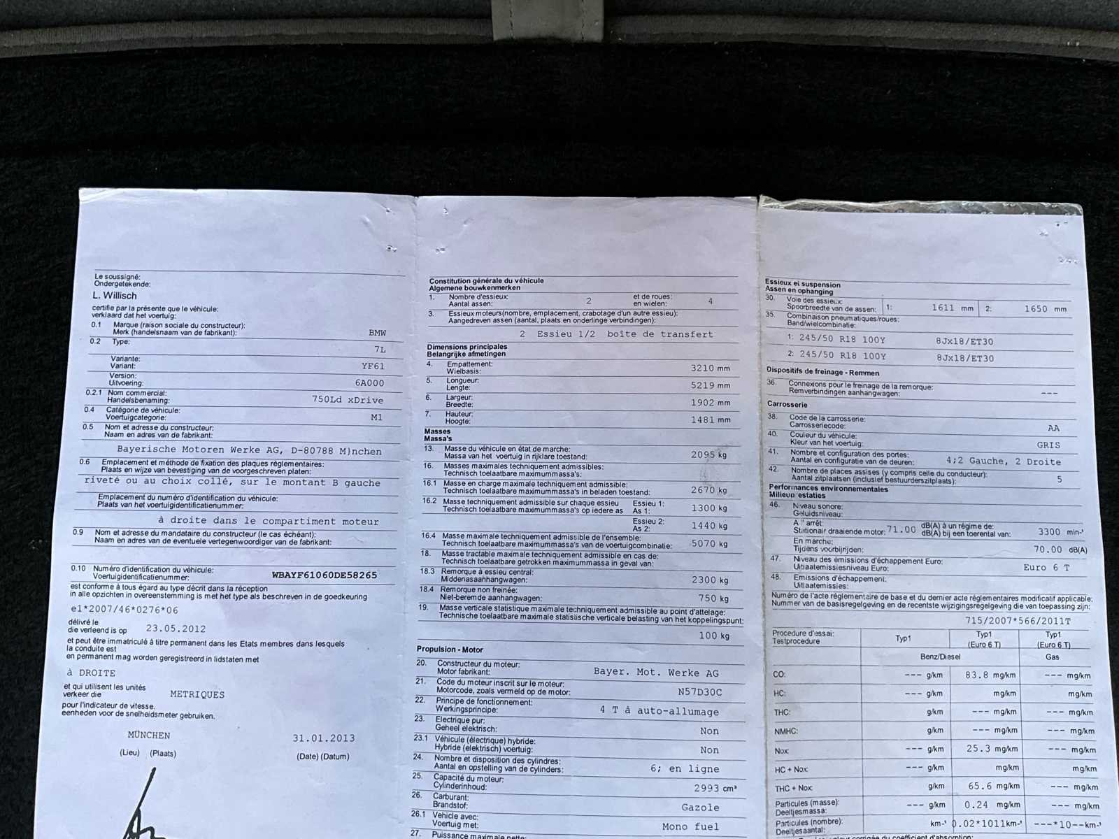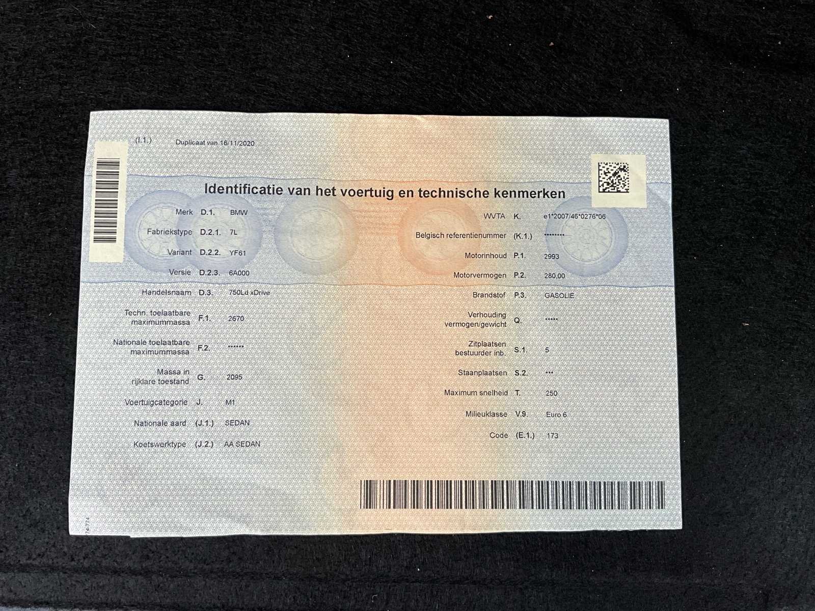 No Merk: BMW Model: 750LD xDrive Bouwjaar: 2013 Afgelezen kilometerstand: 262016km Cilinderinhoud: 2993cc Vermogen (kW): 280kW Brandstof: Diesel Chassisnummer: WBAYF61060DE58265 Datum eerste toelating: 06/02/2013 Aantal zitplaatsen: 5 Transmissie: Automaat Emissieklasse: Euro 6 Aantal deuren: 5 Nationaliteit documenten: Belgisch Start en rijdt: Ja Keuringsrapport geldig tot: 26/03/2026 startinformatie : Start & rijdt Vavato voert geen technische keuring uit.: true Airconditioning: true Navigatie: true Xenon verlichting: true LED-koplampen: true Leder bekleed: true Inschrijvingsbewijs - deel 1 : Aanwezig Inschrijvingsbewijs - deel 2: Aanwezig