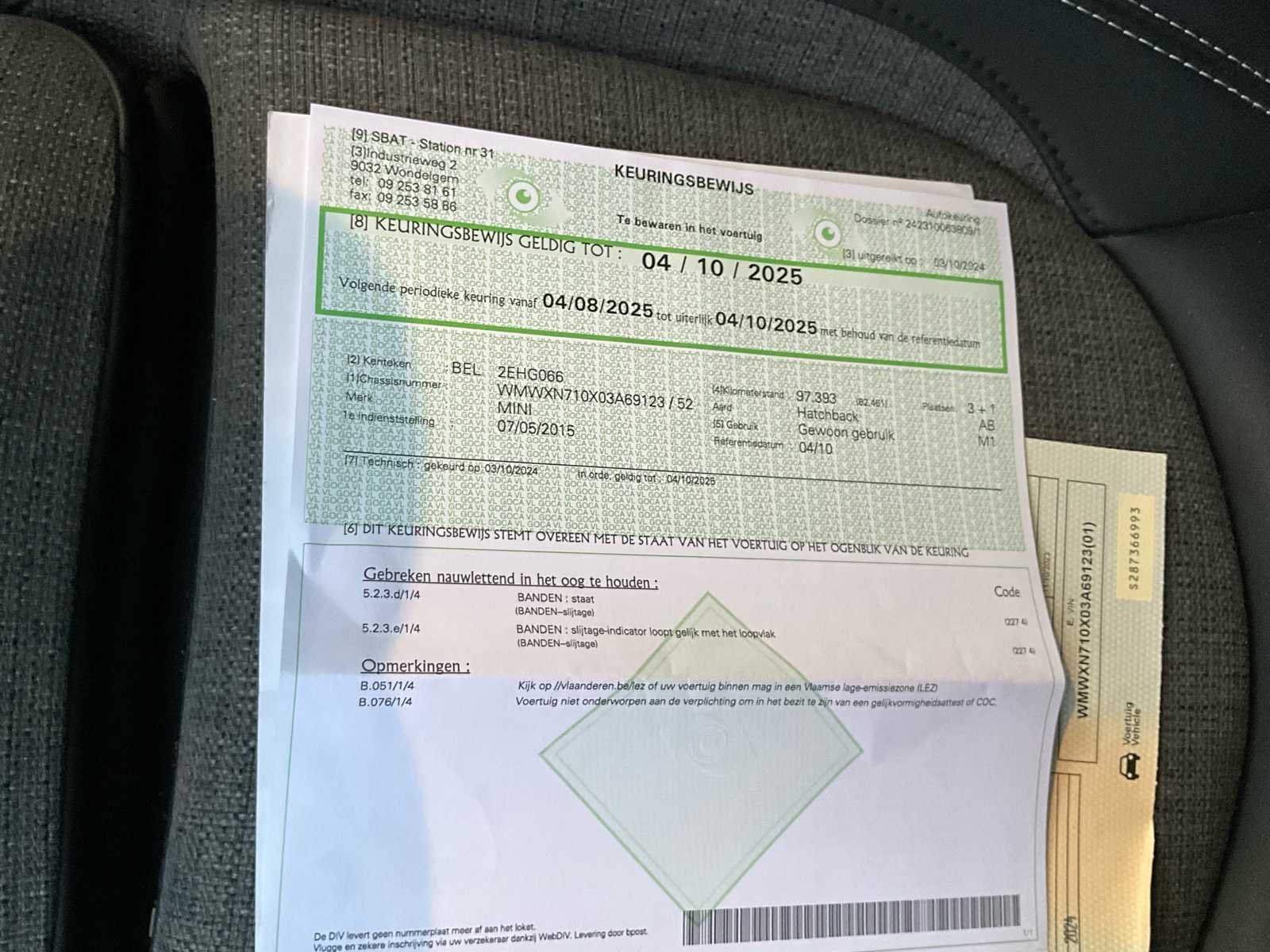 Doet wat hij moet doen geen opmerkingen of defecten Nee Merk: Mini Model: One Bouwjaar: 2015 Cilinderinhoud: 1196cc Vermogen (kW): 75kW Brandstof: benzine Chassisnummer: WMWXN710X03A69123 Datum eerste toelating: 07052015 Aantal zitplaatsen: 4 Transmissie: manueel Emissieklasse: 6b startinformatie : start en rijd Vavato voert geen technische keuring uit.: true Inschrijvingsbewijs - deel 1 : ok Inschrijvingsbewijs - deel 2: pl