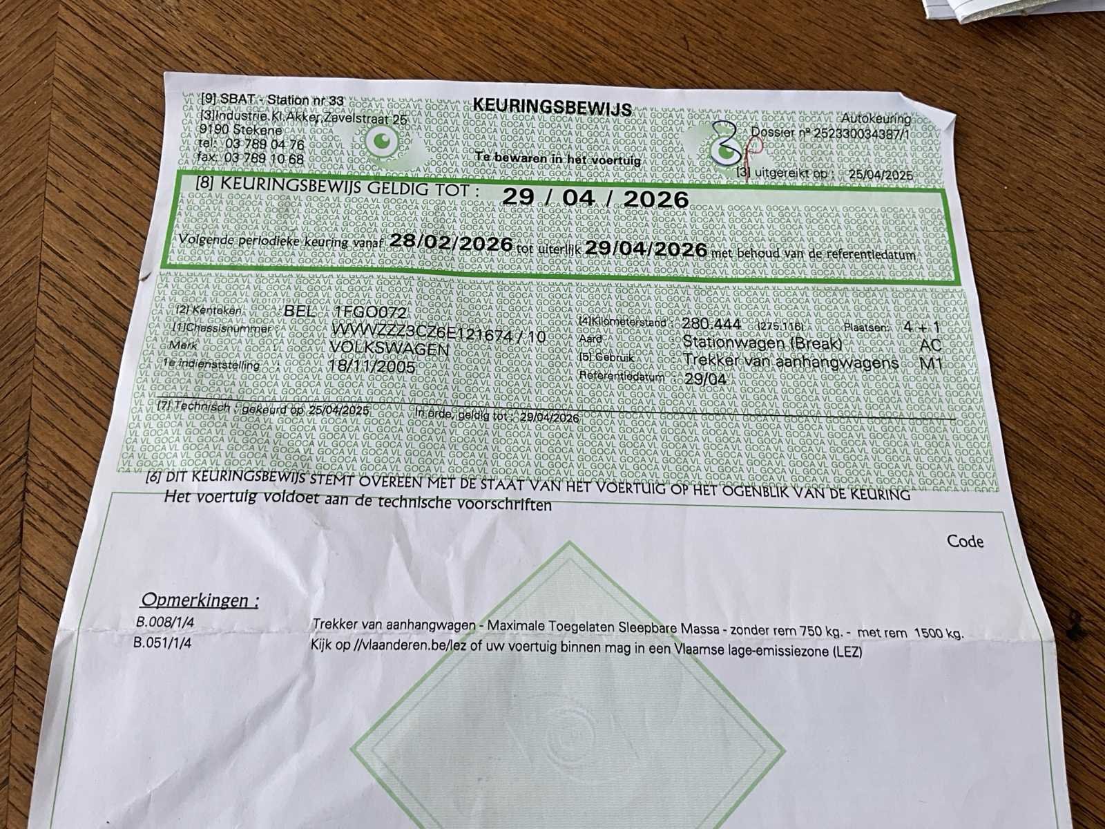 No Merk: Volkswagen Model: Passat Bouwjaar: 2005 Afgelezen kilometerstand: 282917km Cilinderinhoud: 1896cc Vermogen (kW): 77kW Brandstof: Gasolie Chassisnummer: 1674 Emissieklasse: 4 Vavato voert geen technische keuring uit.: true Inschrijvingsbewijs - deel 1 : Ok Inschrijvingsbewijs - deel 2: Ok