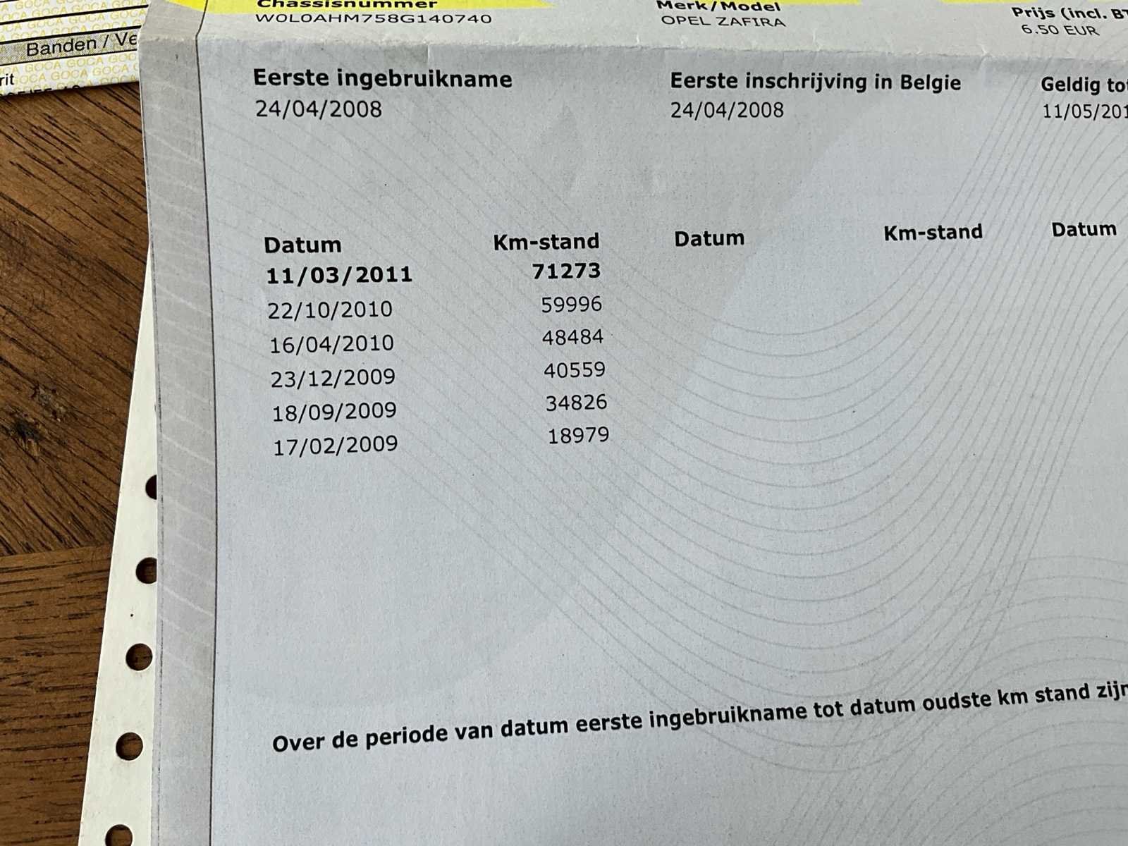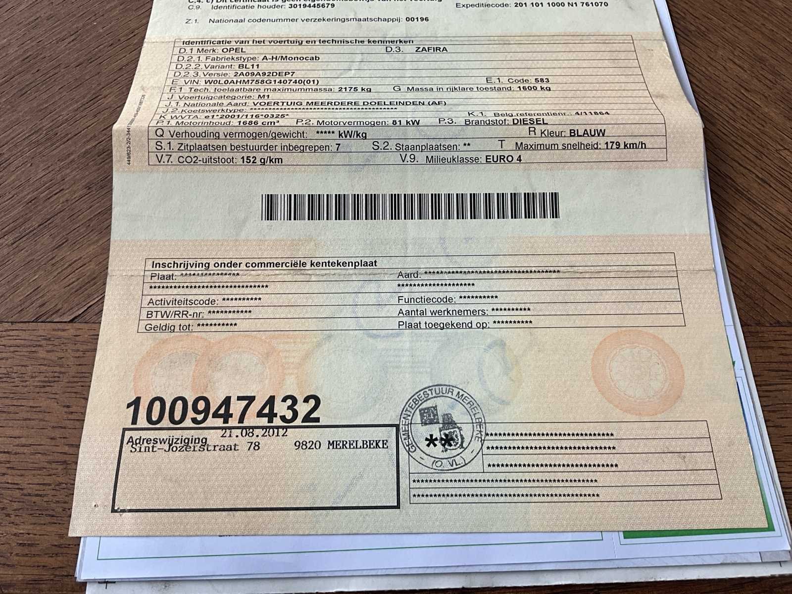 No Merk: Opel Model: Zafira Bouwjaar: 2011 Afgelezen kilometerstand: 209473km Cilinderinhoud: 1686cc Vermogen (kW): 81kW Brandstof: Diesel Chassisnummer: 0740