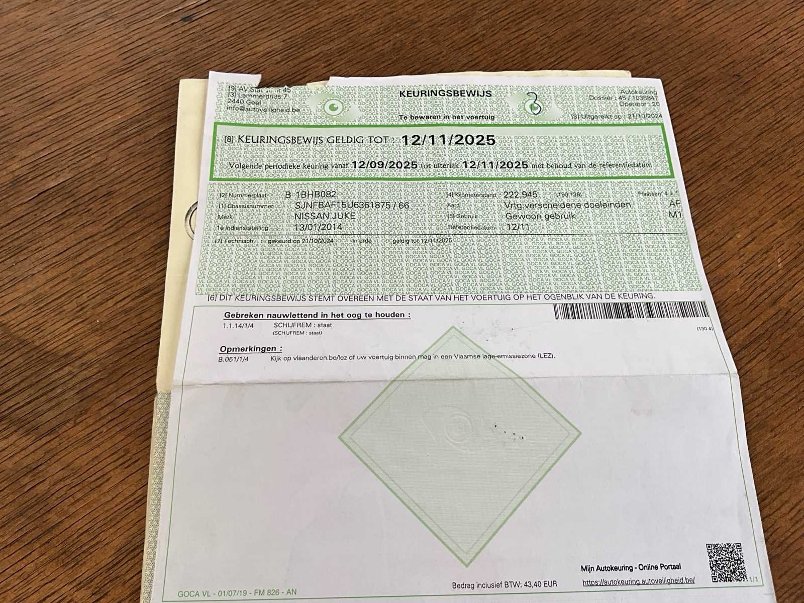 No Merk: Nissan Model: Juke Bouwjaar: 2014 Afgelezen kilometerstand: 263054km Brandstof: Benzine