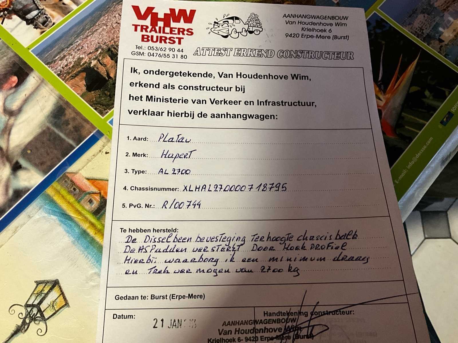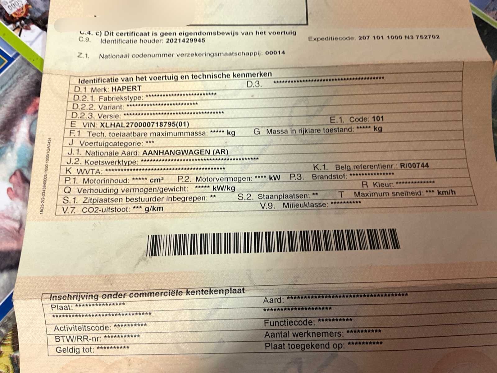 No Merk: Hapert Type: AL2700 Bouwjaar: 2011 Chassisnummer: Xlhal270000718795 Aantal assen: 2