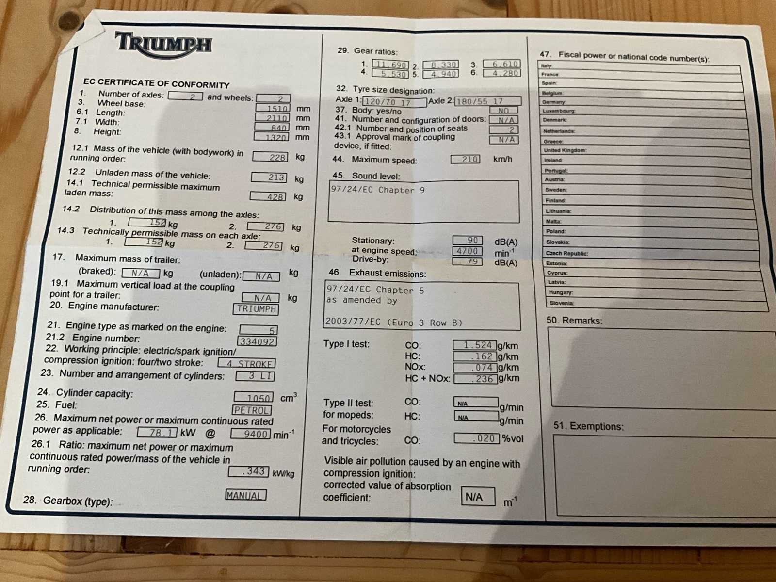 Nieuwe batterij Recente banden Volledig onderhoud geschiedenis Start rijd en voert alle functie uit No Merk: 2008 Triump Model: Tiger Brandstof: Benzine Chassisnummer: SMTTG751S8331652 Cilinderinhoud: 1050cc Datum eerste toelating: 08102008 Nationaliteit documenten: Belg Aantal sleutels: 1 Bouwjaar: 2008
