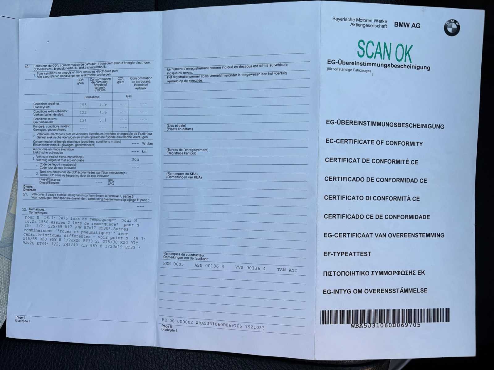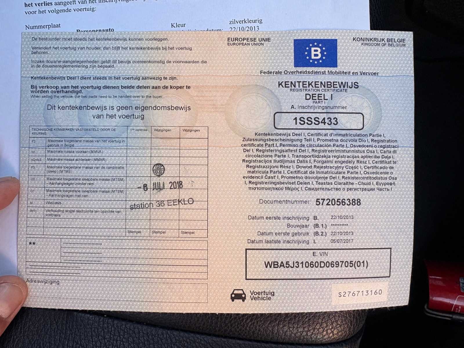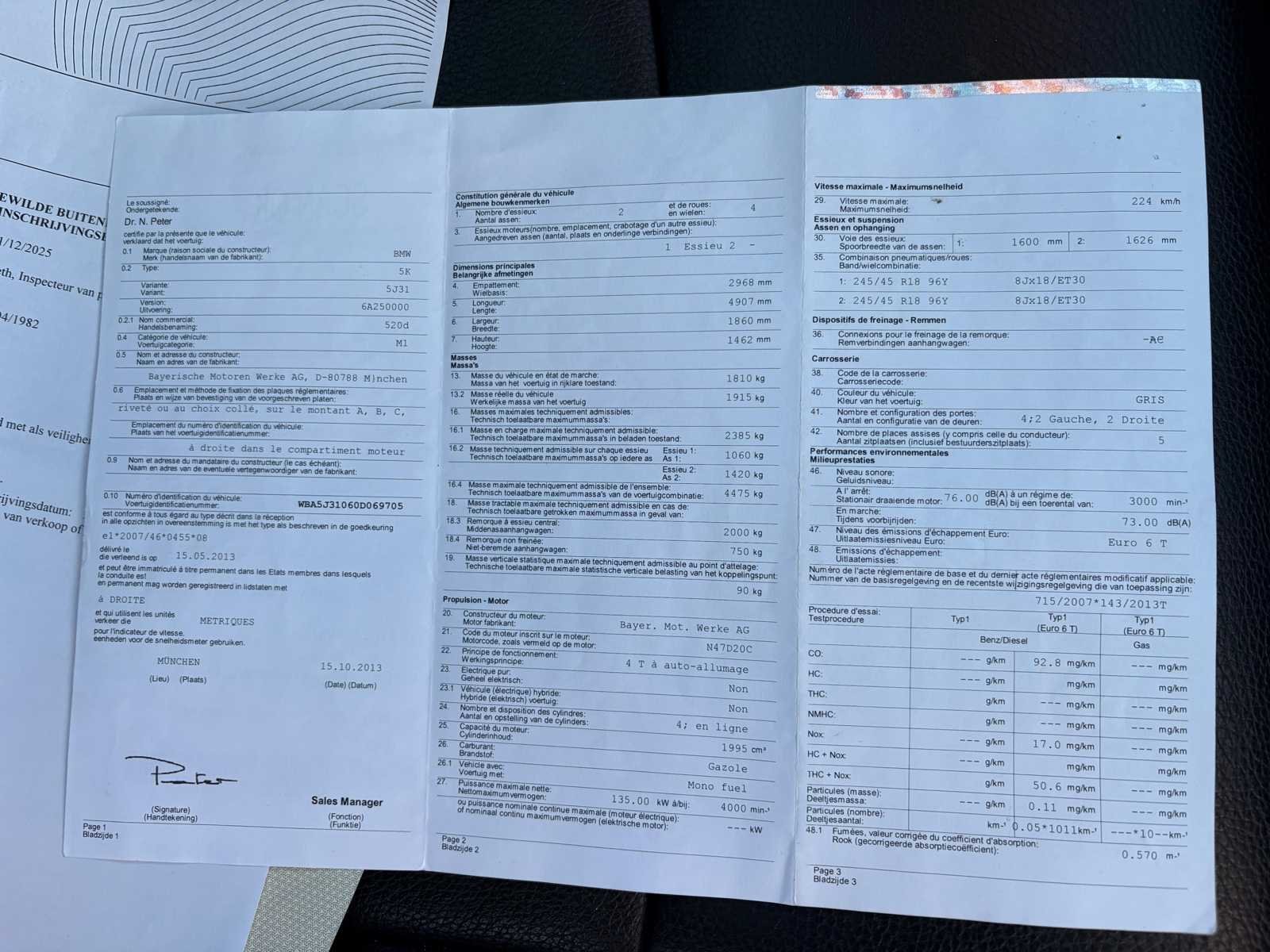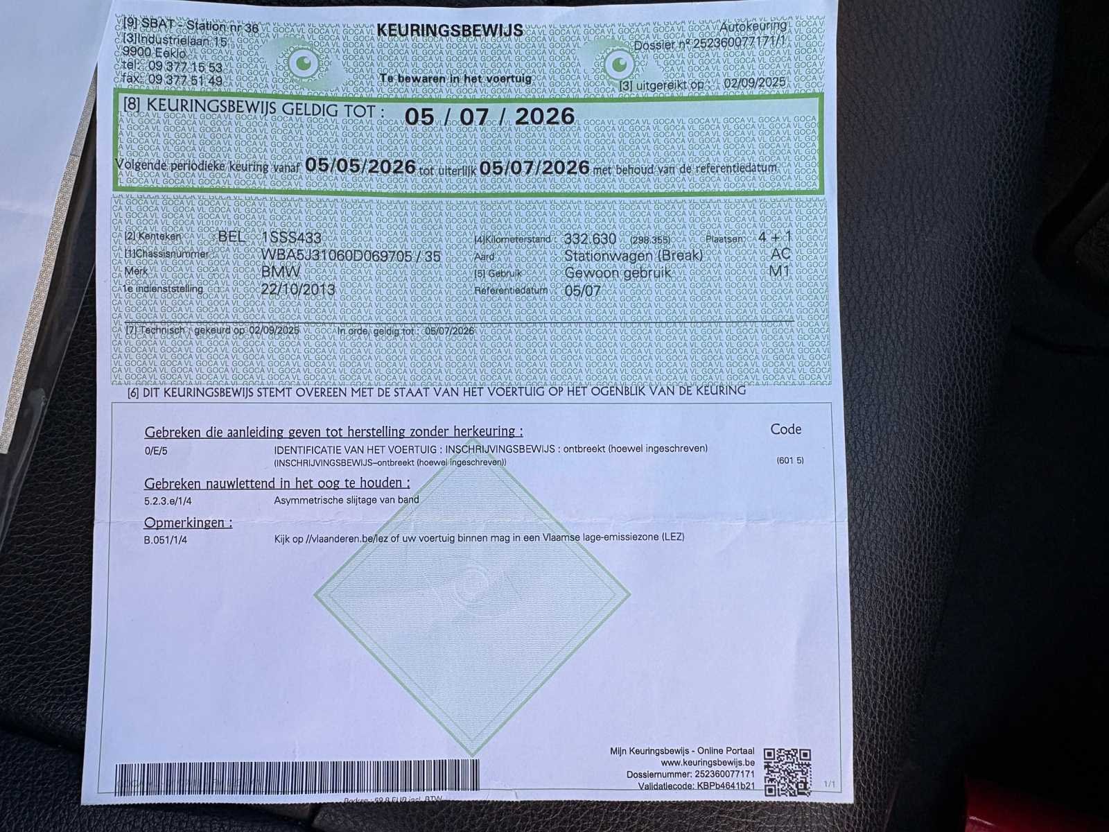 Nee Merk: Bmw Model: 520D Bouwjaar: 2013 Afgelezen kilometerstand: 342049km Cilinderinhoud: 1995cc Vermogen (kW): 135kW Brandstof: Diesel Chassisnummer: WBA5J31060D069705 Datum eerste toelating: 22/10/2013 Vermogen (pk): 184hp Aandrijving: Achterwiel Aantal zitplaatsen: 5 Maximaal trekgewicht ongeremd: 750kg Maximaal trekgewicht geremd: 2000kg Transmissie: Automaat Stuurwiel: Links Emissieklasse: Euro 6 Aantal deuren: 5 Ledig gewicht: 1810kg Aantal cilinders: 4 Carrosserie: Stationwagen Nationaliteit documenten: BE CO2-uitstoot NEDC: 134 Gelijkvormigheidsattest aanwezig: true Start en rijdt: Ja Keuringsrapport geldig tot: 05/07/2026 startinformatie : Start, rijdt, remt Vavato voert geen technische keuring uit.: true Airconditioning: true Navigatie: true Leder bekleed: true Inschrijvingsbewijs - deel 1 : OK Inschrijvingsbewijs - deel 2: Attest Politie