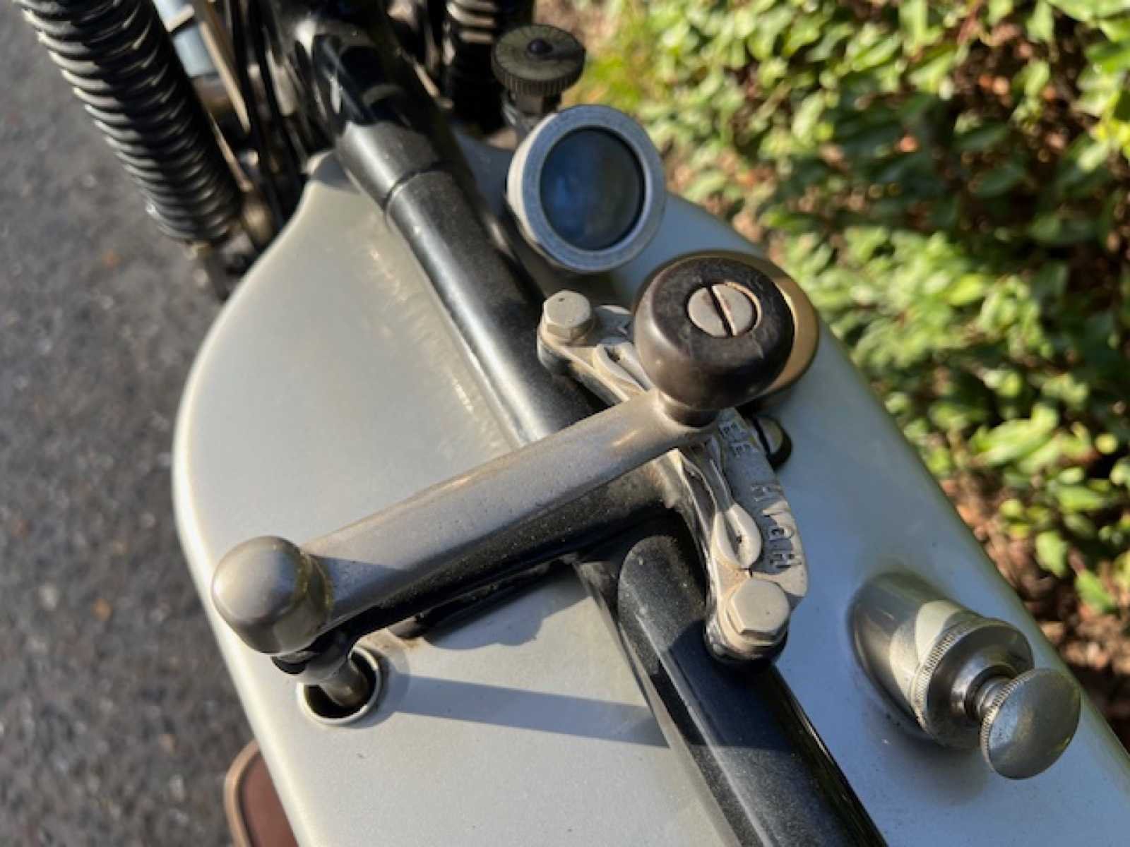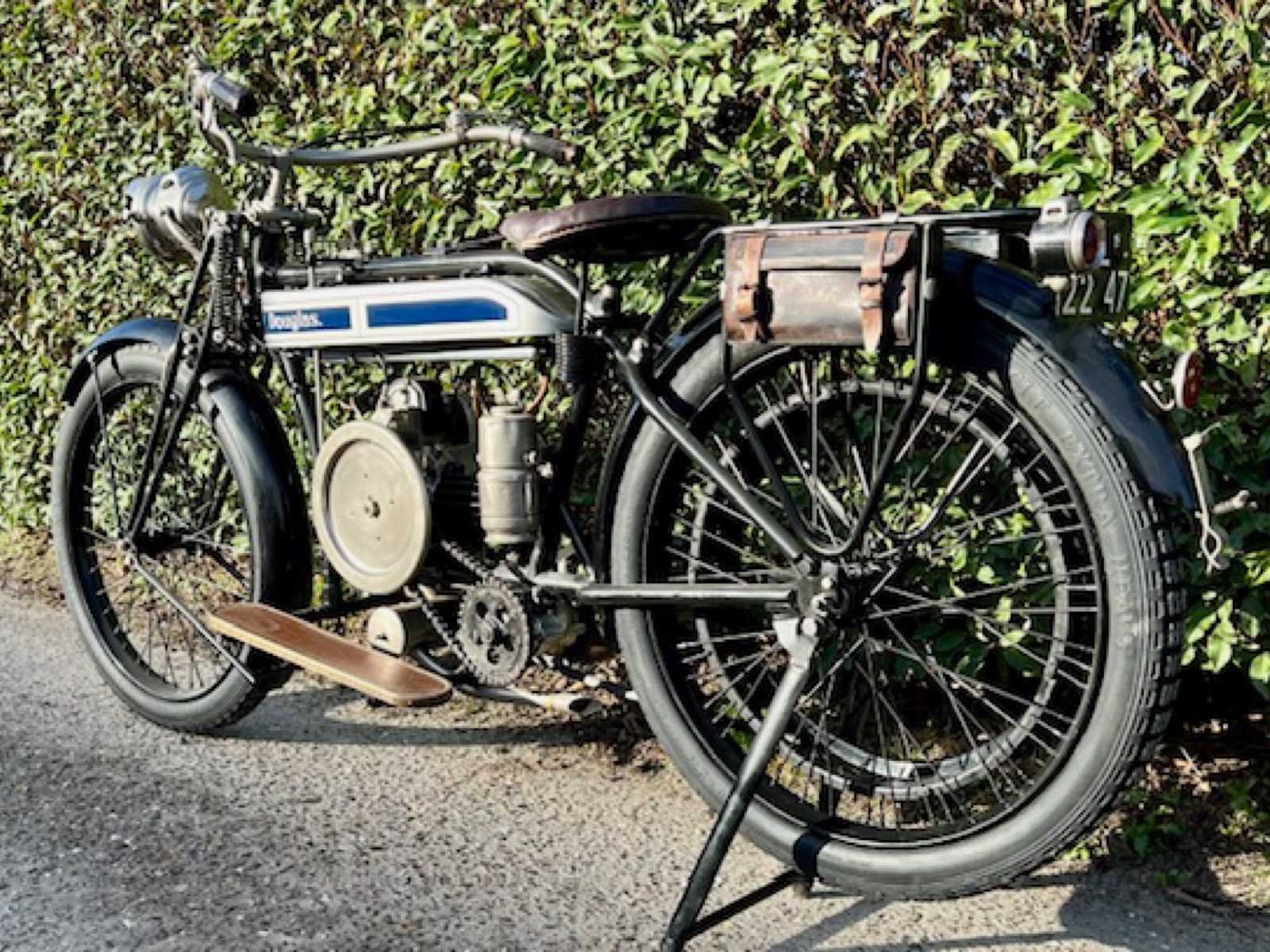 Engelse Douglas 2 3/4HP dit is 350cc. Dit is een boxer zijklepper van 1923 met 2 versnellingen en vrijloop. Geen kickstarter dus moet je deze in gang duwen maar eens deze loopt kan je hem in zijn vrij zetten zodat je niet stilvalt aan elk verkeerslicht. Moto is volledig gereviseerd en er zijn in de afgelopen jaren verschillende ritten mee gedaan. No Merk: 1923 Douglas Model: 2 3/4HP Cilinderinhoud: 350cc Startinformatie: Start en rijdt
