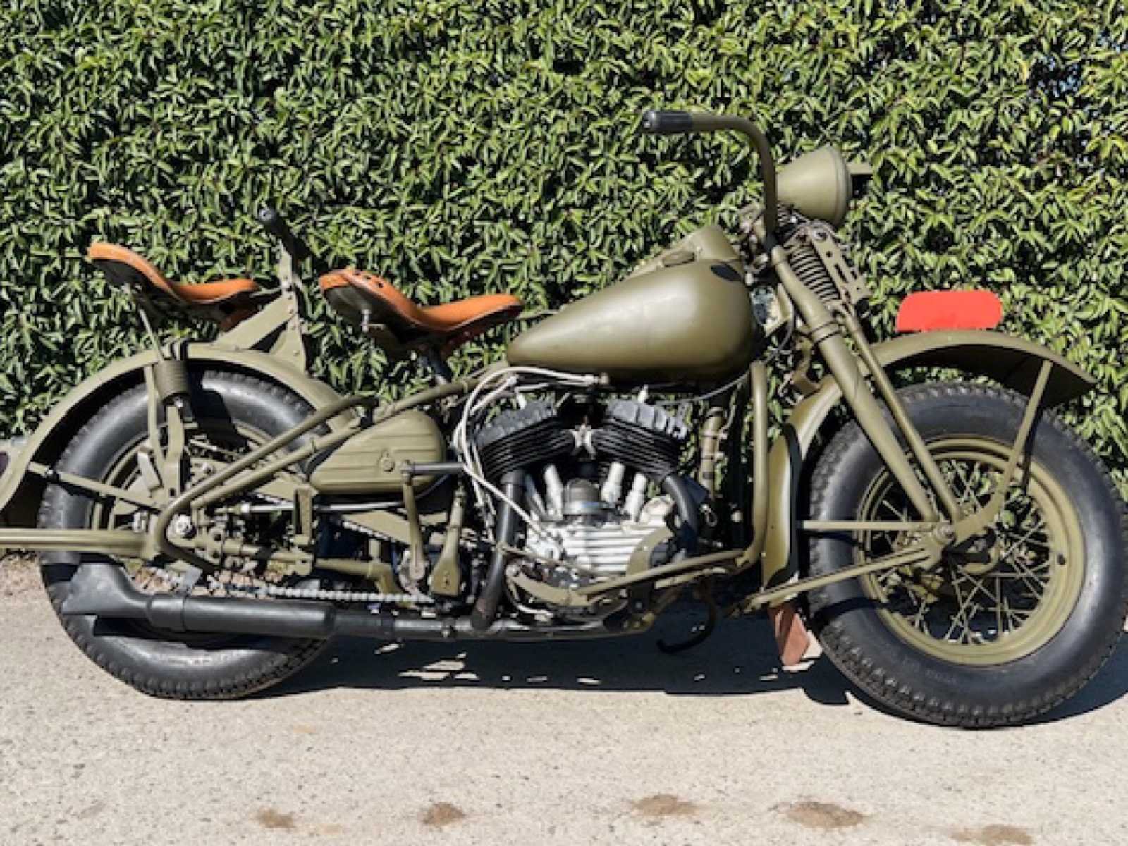 Zeldzame leger Harley! Harley-Davidson 41WL South African Union Defence Forces. Dit is een speciale bestelling van Zuid Afrika bij Harley-Davidson omdat ze te weinig motorfietsen konden bestellen in UK. Deze zijn niet via een land-lease bestelling gegaan maar direct van de Zuid Afrikaanse regering besteld. Zij bestelde eerst 3000 motorfietsen wat later terug gebracht is naar 2350 stuks. De motorfietsen die ze bestelde waren WL modellen, dus geen leger WLA modellen maar 1941 burger WL modellen die aan bepaalde legeruitvoeringen moesten voldoen. De motorfiets hier is versie 2 met een langere voorvork. De langere voorvork en de dikke banden was speciaal voor in het woestijn zand te rijden. Voor meer info van dit zeldzaam model verwijs ik naar het boek van Bruce Palmer waar alles duidelijk in uitgelegd is. Motorfiets komt uit een verzameling waar deze zeer lang gestaan heeft, vorig jaar nog volledig nagezien en terug opgestart. Unieke kans om een zeer zeldzame leger Harley te bekomen. No Merk: 1941 Harley-Davidson Model: 41WL South African Union Defence Forces Bouwjaar: 1941