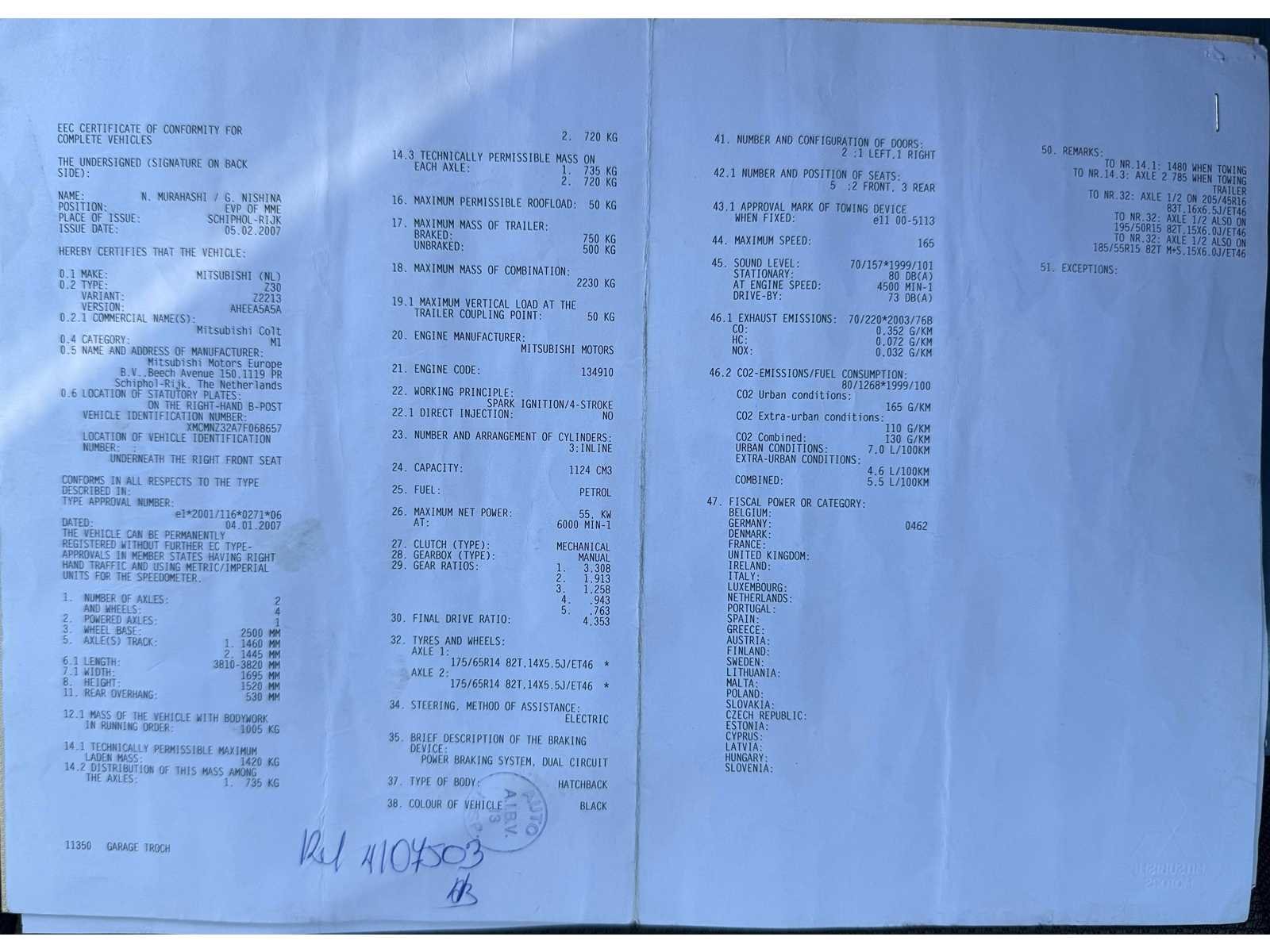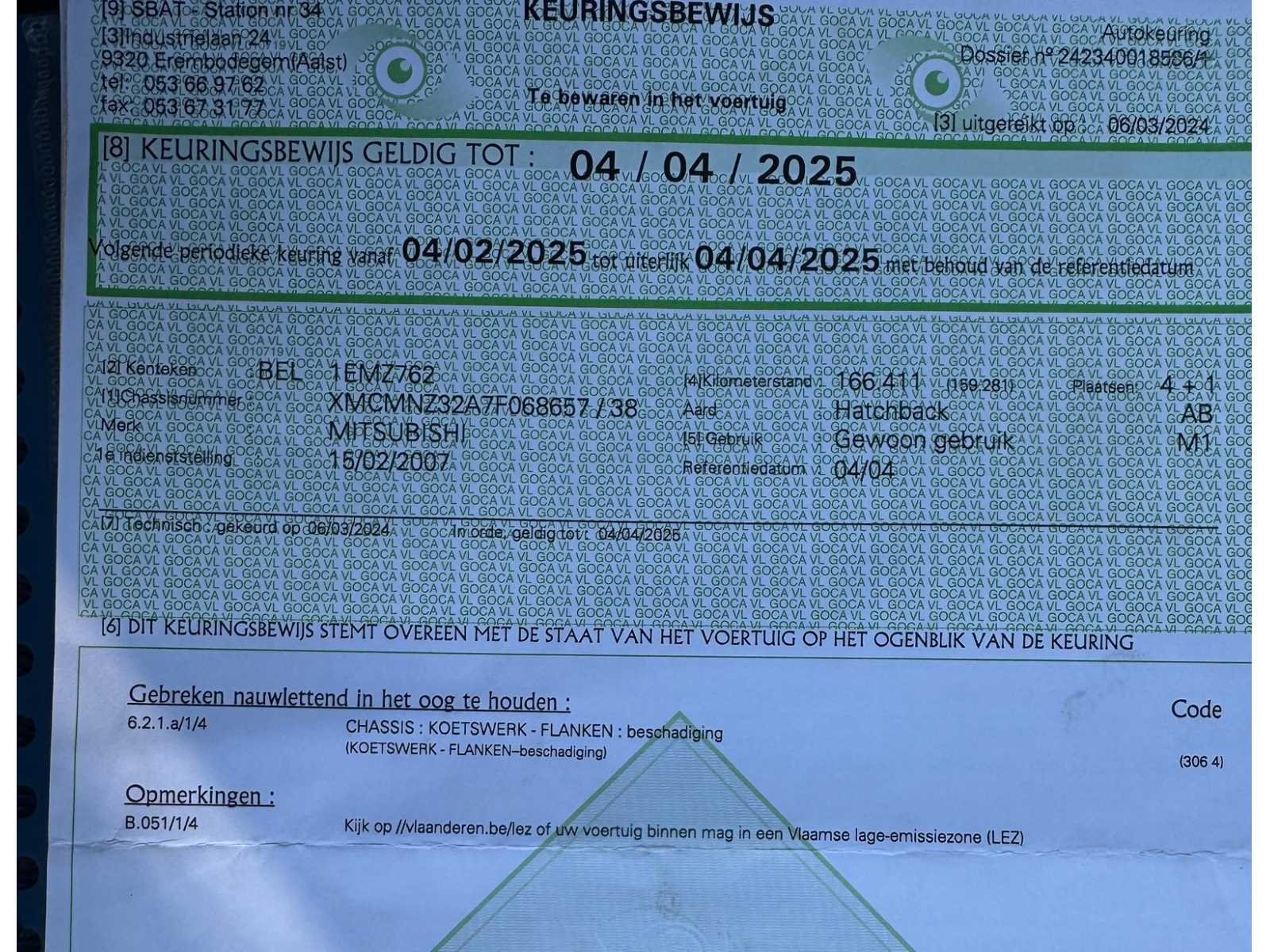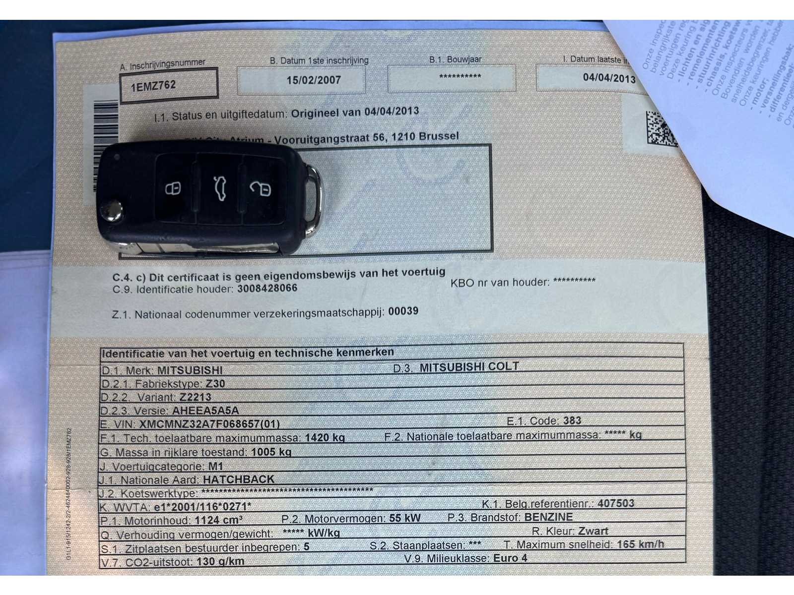 Batterij defect, start wel met booster! Ruitenwissers defect. Nee Merk: Mitsubishi Model: Colt Bouwjaar: 2007 Afgelezen kilometerstand: 180022km Cilinderinhoud: 1124cc Vermogen (kW): 55kW Brandstof: Benzine Chassisnummer: 68657 Datum eerste toelating: 15/02/2007 Vermogen (pk): 74hp Aantal zitplaatsen: 5 Emissieklasse: Euro 4 Ledig gewicht: 1005kg Nationaliteit documenten: BE CO2-uitstoot NEDC: 130 Gelijkvormigheidsattest aanwezig: true Start en rijdt: Ja Keuringsrapport geldig tot: 04/04/2025 startinformatie : Start, rijdt, remt Vavato voert geen technische keuring uit.: true Inschrijvingsbewijs - deel 1 : Ok Inschrijvingsbewijs - deel 2: Ok