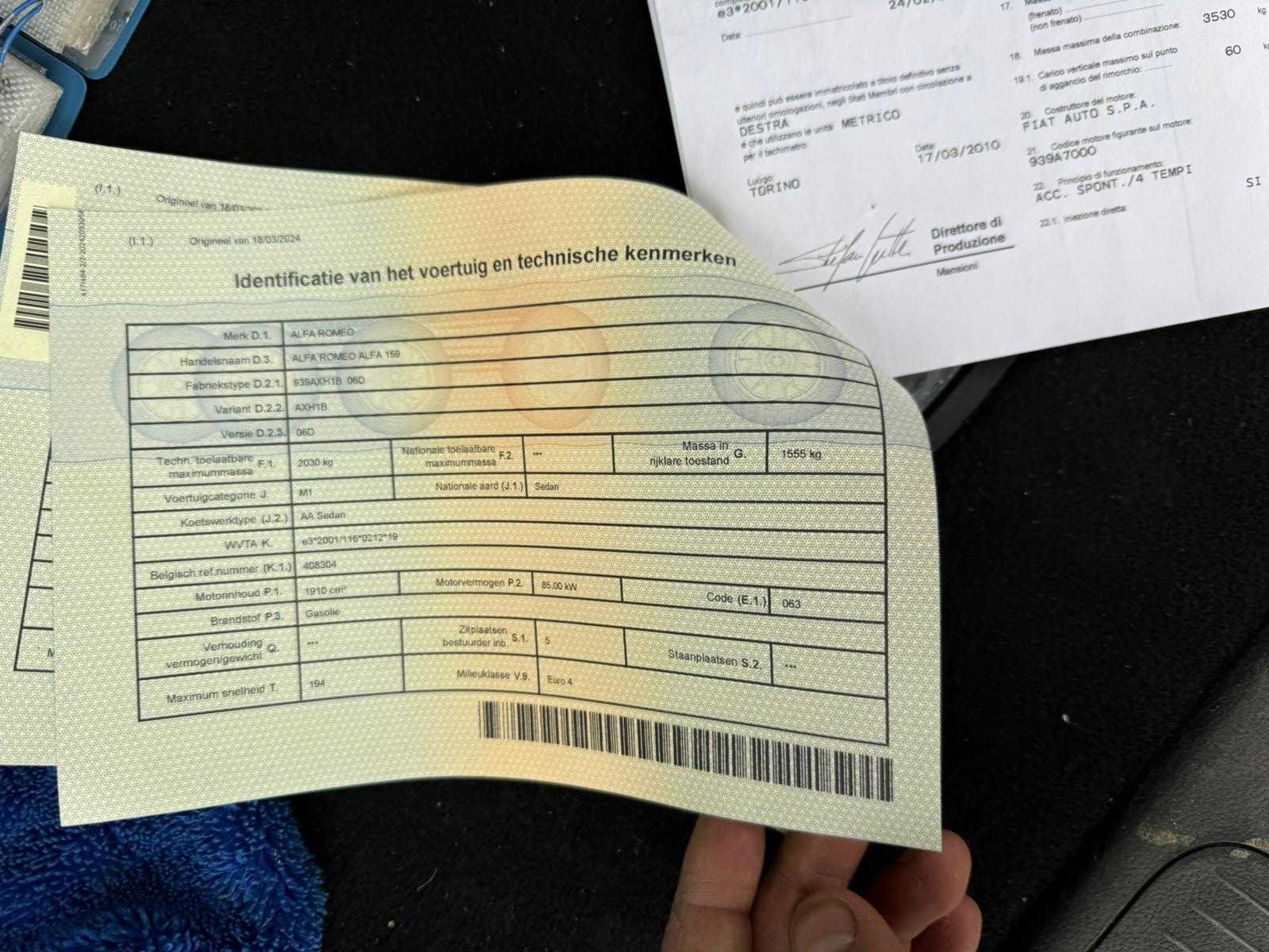 Linkse voor rollement maakt lawaai - Voorruit barst - Beetje krassen - Android dvd scherm met gps en alle benodigdheden Nee Merk: Alfa Romeo Model: 159 Bouwjaar: 2010 Afgelezen kilometerstand: 170251km Cilinderinhoud: 1910cc Vermogen (kW): 85kW Brandstof: diesel Chassisnummer: ZAR93900007267296 Laadvermogen: 475kg Datum eerste toelating: 30/07/2010 Vermogen (pk): 116hp Aantal zitplaatsen: 5 Maximaal trekgewicht ongeremd: 500kg Maximaal trekgewicht geremd: 1500kg Transmissie: manueel Emissieklasse: euro 4 Aantal deuren: 4 Ledig gewicht: 1555kg Aantal cilinders: 4 Nationaliteit documenten: BE CO2-uitstoot NEDC: 138 Gelijkvormigheidsattest aanwezig: true Carpass: true Start en rijdt: ja Keuringsrapport geldig tot: 26/02/2026 Vavato voert geen technische keuring uit.: true Inschrijvingsbewijs - deel 1 : ok Inschrijvingsbewijs - deel 2: ok