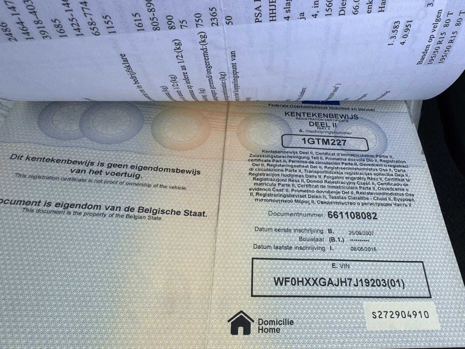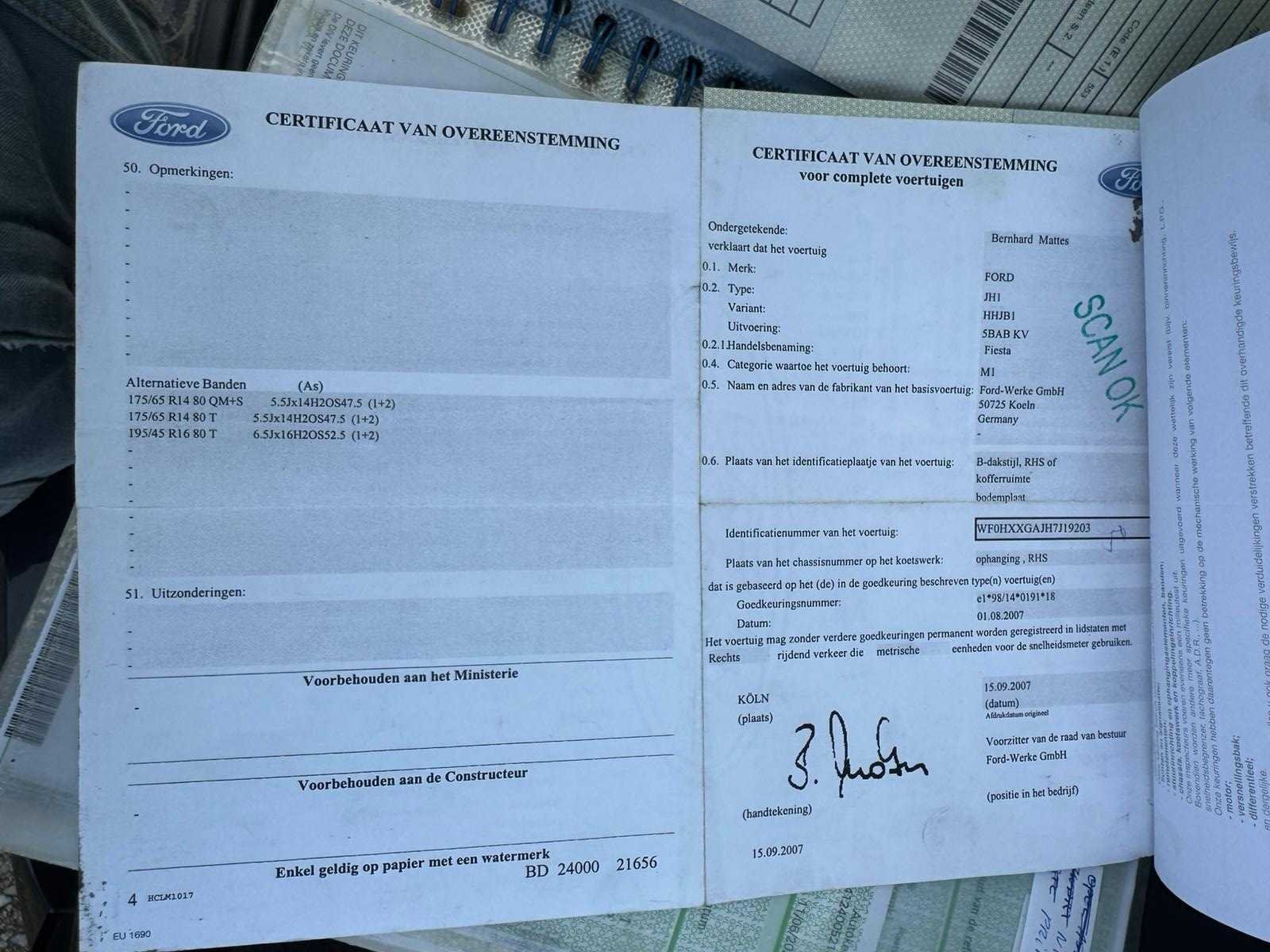 Nee Merk: Ford Model: Fiesta Bouwjaar: 2007 Afgelezen kilometerstand: 252798km Cilinderinhoud: 1560cc Vermogen (kW): 66kW Brandstof: diesel Chassisnummer: WF0HXXGAJH7J19203 Laadvermogen: 460kg Datum eerste toelating: 25/09/2007 Vermogen (pk): 90hp Aantal zitplaatsen: 5 Transmissie: manueel Emissieklasse: euro 4 Ledig gewicht: 1155kg Aantal cilinders: 4 Nationaliteit documenten: BE CO2-uitstoot NEDC: 116 Gelijkvormigheidsattest aanwezig: true Start en rijdt: ja Keuringsrapport geldig tot: 05/05/2026 startinformatie : Start dynamo dient vervangen te worden! Vavato voert geen technische keuring uit.: true Inschrijvingsbewijs - deel 1 : ok Inschrijvingsbewijs - deel 2: ok
