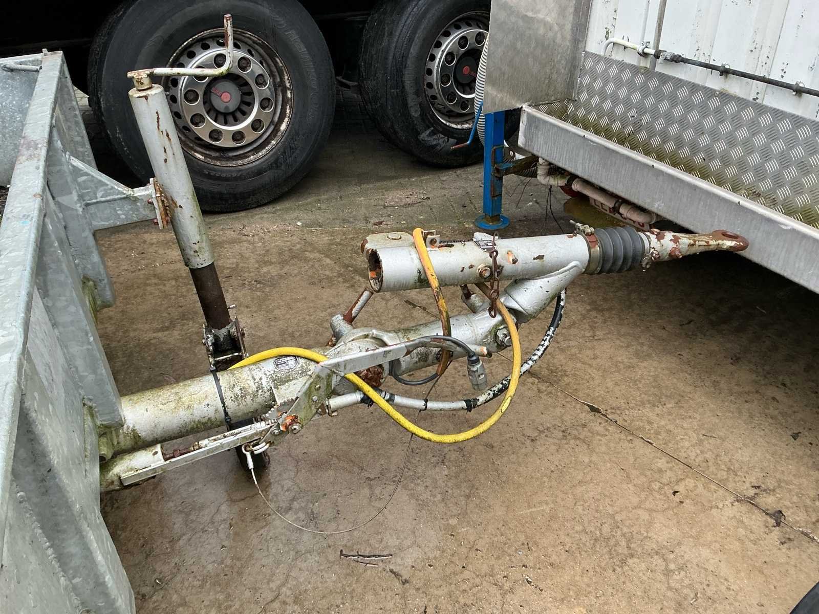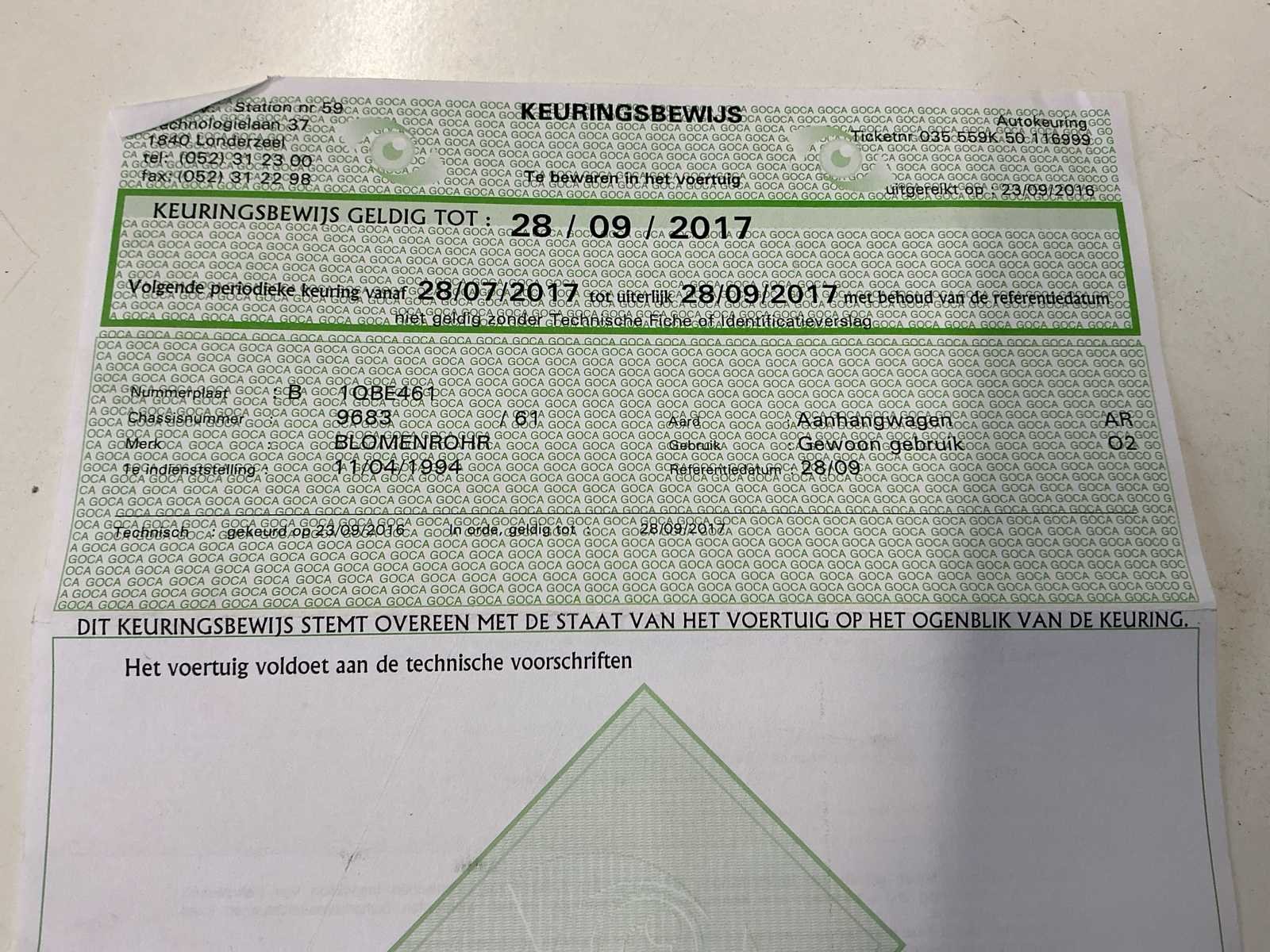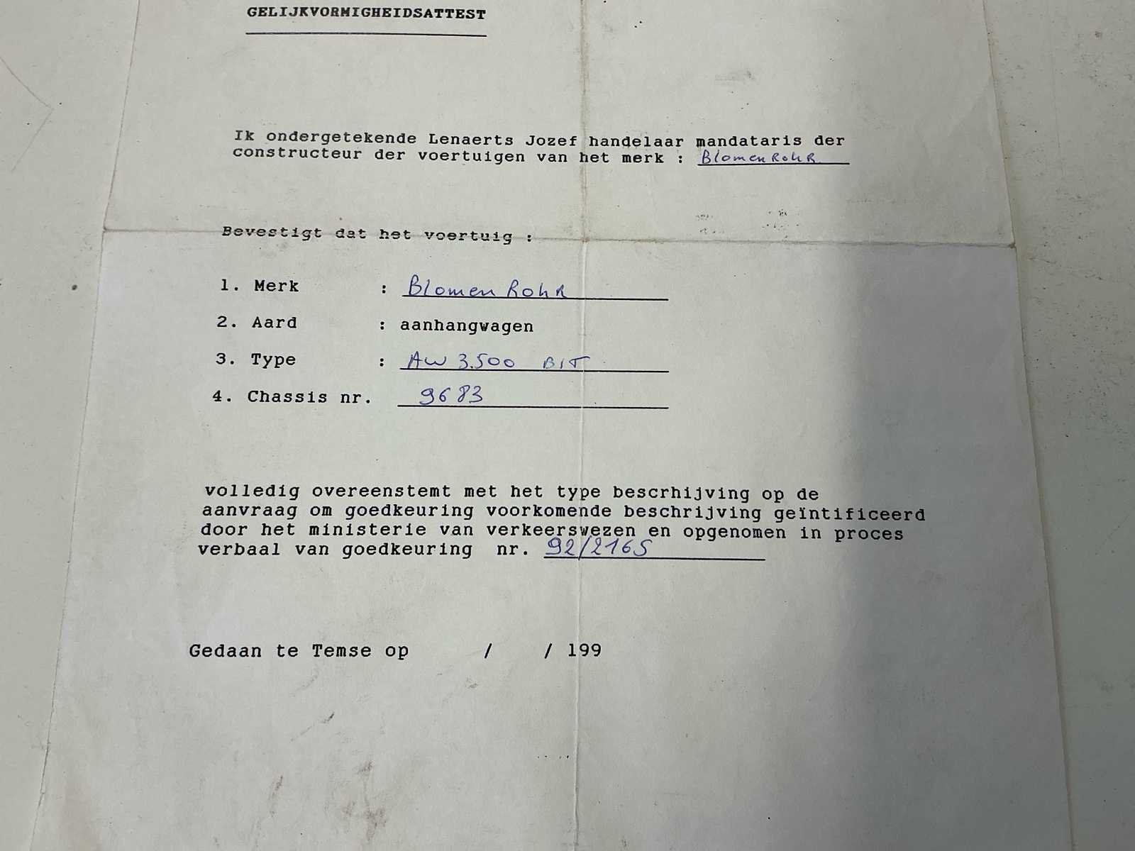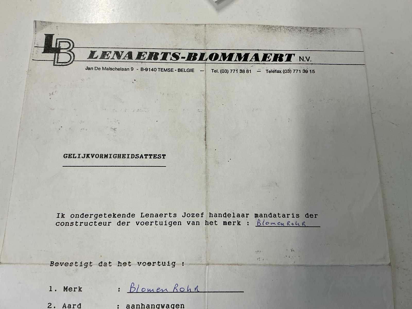 Deze Blomenröhr HW 3500 BT tandem aanhangwagen werd gebouwd in 1993 en beschikt over een maximaal toegelaten massa van 3.500 kg. Het ledig gewicht bedraagt 1.040 kg, wat zorgt voor een degelijke laadcapaciteit binnen het toegelaten totaalgewicht. De aanhangwagen is voorzien van een mechanische ophanging en een trekoogkoppeling. Achteraan zijn twee robuuste oprijplaten geïntegreerd, waardoor het laden van machines, voertuigen of zwaar materieel eenvoudig en efficiënt verloopt. Het betreft een open plateau-uitvoering, geschikt voor uiteenlopende transporttoepassingen in bouw, landbouw of industrie. De constructie is verzinkt en robuust uitgevoerd, passend bij professioneel gebruik. Dankzij de tandem asopstelling biedt de aanhangwagen extra stabiliteit tijdens transport. Ideaal voor het vervoeren van machines, mini-gravers, hoogtewerkers of ander rollend materieel. No Merk: Blomenröhr Type: HW 3500 BT Bouwjaar: 1993 Chassisnummer: 9683 Datum eerste toelating: 11/04/1994 Kentekenpapieren compleet?: true Nationaliteit documenten: België