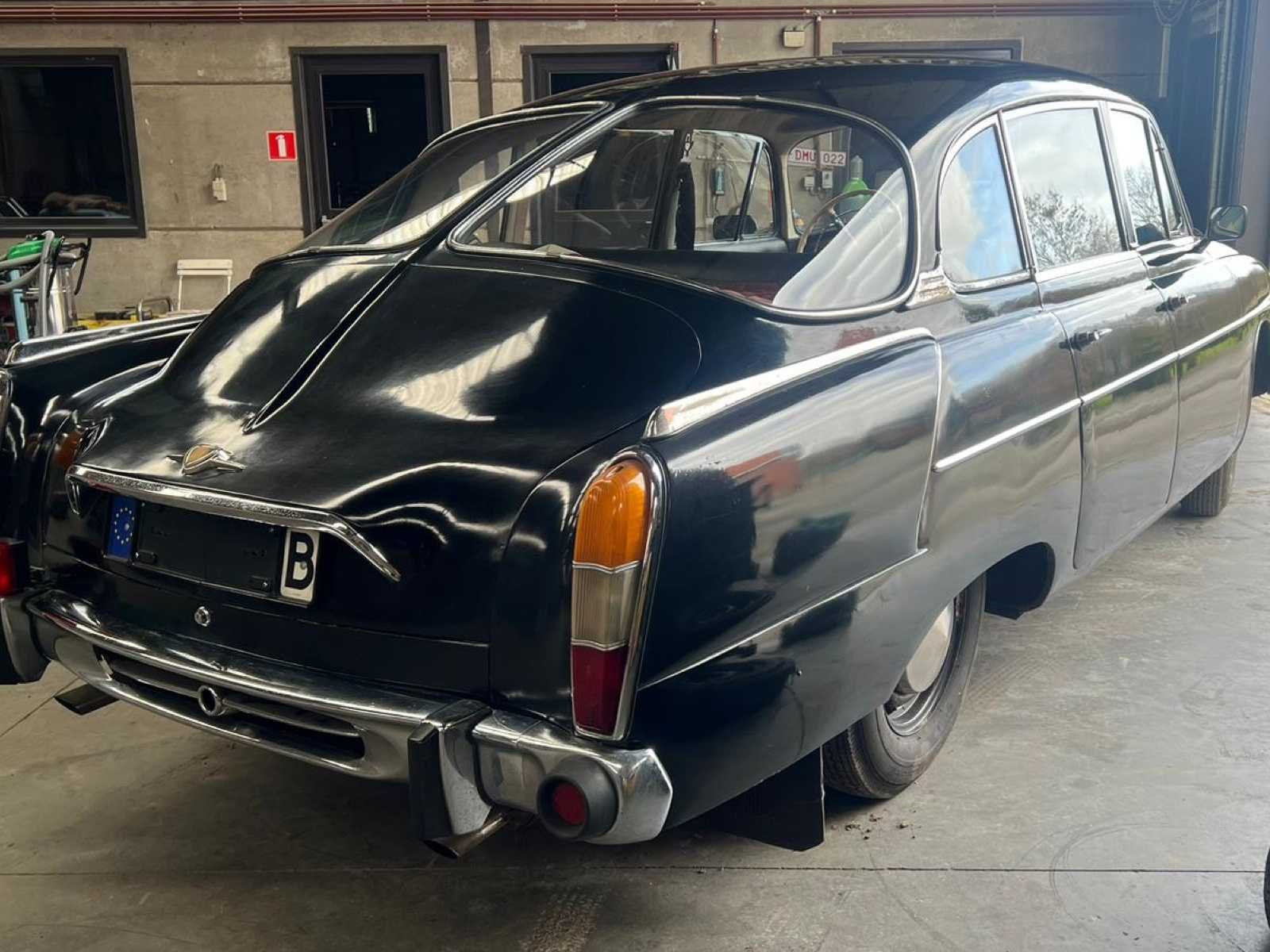 Bijzondere en zeldzame Tatra 603 uit 1966, een iconische Tsjechoslowaakse luxeberline met achterin geplaatste luchtgekoelde V8-motor. Dit model staat bekend om zijn vooruitstrevende aerodynamische ontwerp, karakteristieke drievoudige koplampen en uitzonderlijke techniek. Deze Tatra 603 beschikt over een 2.472 cc benzinemotor met een vermogen van 77 kW en is gekoppeld aan een manuele transmissie. Het chassisnummer 135002 stemt overeen met de aanwezige Belgische documenten. Het voertuig werd voor het eerst in gebruik genomen op 5 januari 1966 en is sinds 10 augustus 1998 ingeschreven als oldtimer. De wagen verkeert in originele en rijdende staat, met typische patina passend bij zijn leeftijd. Het interieur is uitgevoerd met klassieke bankzetels en een authentiek dashboard met karaktervolle details. De achterin geplaatste V8-motor is zichtbaar in de motorruimte en vormt het technische hart van deze bijzondere klassieker. De Tatra 603 werd destijds geproduceerd als representatieve staatsberline en is vandaag een gegeerde verzamelwagen met beperkte beschikbaarheid op de markt. Dankzij het oldtimerstatuut geniet het voertuig van de bijhorende voordelen binnen België. Een unieke kans om eigenaar te worden van een technisch en historisch uitzonderlijke klassieker, geschikt voor verzamelaars, liefhebbers van Oost-Europese autogeschiedenis en investeerders in bijzondere voertuigen. No Merk: Tatra Type: 603 2.5 V8 Bouwjaar: 1966 Chassisnummer: 135002 Afgelezen kilometerstand: 22870 Brandstof: Benzine Datum eerste inschrijving: 05/01/1966 Nationaliteit documenten: België Kentekenpapieren compleet?: true Vermogen (kW): 77kW Kleur: Zwart Cilinderinhoud: 2472