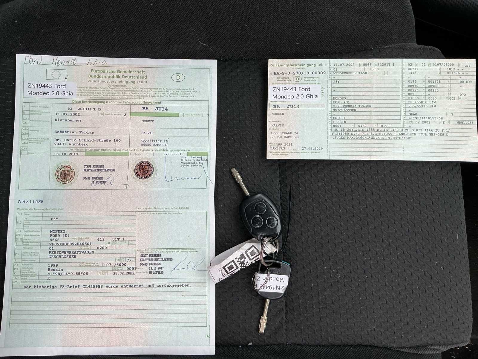 Ruime en comfortabele Ford Mondeo in de Ghia-uitvoering, uitgerust met een 2.0 benzinemotor (1999 cc) en een vermogen van 107 kW. Deze berline staat bekend om zijn rijcomfort, degelijke wegligging en praktische binnenruimte. Gebruikssporen volgens leeftijd en kilometerstand. No Merk: Ford Model: Mondeo Type: B5Y Ghia Afgelezen kilometerstand: 136808km Cilinderinhoud: 1999cc Vermogen (kW): 107kW Brandstof: Benzine Chassisnummer: WF05XXGBB52U46501 Datum eerste toelating: 28/02/2002 Vermogen (pk): 145hp Aandrijving: FWD Aantal zitplaatsen: 5 Kleur: Grijs Transmissie: Handgeschakeld Stuurwiel: LHD Emissieklasse: Euro 4 Aantal deuren: 5 Aantal sleutels: 2 Velgmaat: 16" Aantal cilinders: 4 Carrosserie: Sedan Nationaliteit documenten: Duits Start en rijdt: Ja Zichtbare schade: Ja Self drive export possible : true Airconditioning: true