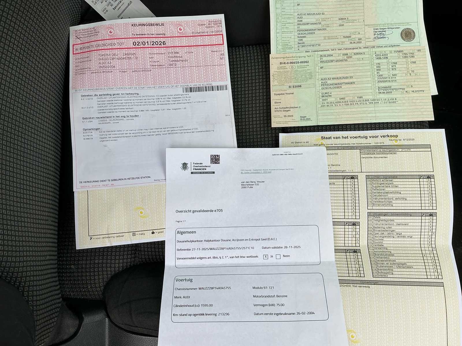 Sportieve en tijdloze Audi A3 met 1.6 benzinemotor (1595 cc) en een vermogen van 75 kW. Deze compacte hatchback staat bekend om zijn degelijke bouwkwaliteit, comfortabele rijervaring en betrouwbare prestaties. De wagen combineert een strak design met praktische bruikbaarheid en is geschikt als ideale stadswagen of betaalbare instapper in het Audi-segment. Heeft nieuwe uitlaat, bougies thermostaat en onderhoud gekregen. Toerenteller werkt niet meer. Gebruikssporen volgens leeftijd en kilometerstand. No Merk: Audi Model: A3 Cilinderinhoud: 1595cc Vermogen (kW): 75kW Brandstof: Benzine Chassisnummer: WAUZZZ8P14A045755 Datum eerste toelating: 26/02/2004 Vermogen (pk): 102hp Aandrijving: FWD Aantal zitplaatsen: 5 Kleur: Zwart Transmissie: Handgeschakeld Stuurwiel: LHD Emissieklasse: Euro 4 Aantal deuren: 3 Aantal sleutels: 1 Velgmaat: 16" Aantal cilinders: 4 Nationaliteit documenten: Duits Start en rijdt: Ja Keuringsrapport geldig tot: 02/01/2026 Self drive export possible : true Vavato voert geen technische keuring uit.: true Airconditioning: true