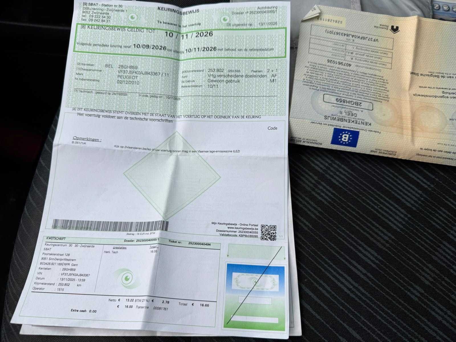 No Kenteken: 2BGH859 Merk: Peugeot Model: Partner Type: 7 Bouwjaar: 2010 Afgelezen kilometerstand: 254335km Cilinderinhoud: 1598cc Vermogen (kW): 72kW Brandstof: Benzine Chassisnummer: VF37J5FK0AJ843367 Datum eerste toelating: 02/12/2010 Aantal zitplaatsen: 5 Transmissie: Handgeschakeld Emissieklasse: Euro 5 Aantal sleutels: 2 Nationaliteit documenten: Belgische Start en rijdt: Ja Keuringsrapport geldig tot: 10/11/2026 Vavato voert geen technische keuring uit.: true Inschrijvingsbewijs - deel 1 : Aanwezig Inschrijvingsbewijs - deel 2: Aanwezig