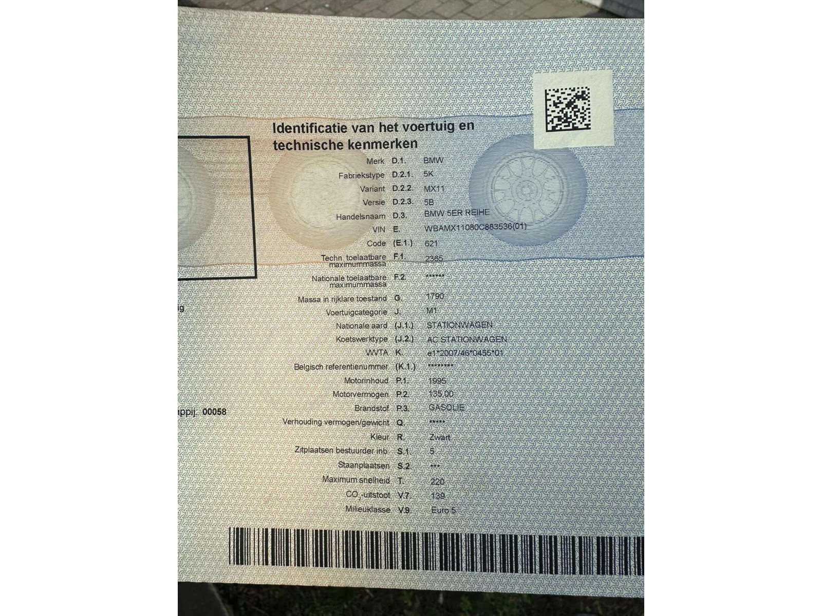 No Merk: BMW Model: 5 reeks Bouwjaar: 2011 Afgelezen kilometerstand: 310545km Cilinderinhoud: 1995cc Vermogen (kW): 135kW Brandstof: diesel Chassisnummer: WBAMX11080C883536 Zichtbare schade: JA