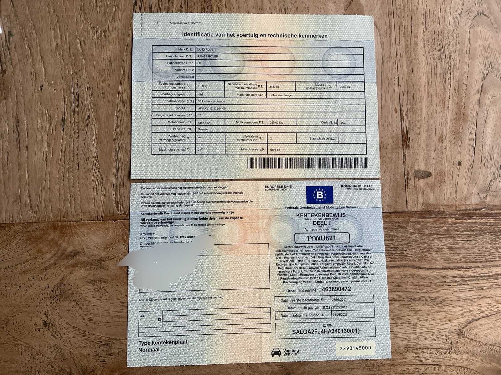 Origineel Belgisch voertuig Lichte vracht Luchtvering 360 camera Inklapbare trekhaak (elektrisch) Soundbox Apple Carplay 3500KG trekvermogen No Merk: Range Rover Model: Vogue 4.4 SDV8 Type: - Lichte vracht Bouwjaar: 2017 Afgelezen kilometerstand: 169103km Cilinderinhoud: 4367cc Vermogen (kW): 250kW Brandstof: Diesel Chassisnummer: SALGA2FJ4HA340130 Maximaal trekgewicht ongeremd: 750kg Maximaal trekgewicht geremd: 3500kg Aantal sleutels: 2 Nationaliteit documenten: Belgisch Onderhoudshistorie: Beschikbaar Start en rijdt: Ja startinformatie : start en rijd Vavato voert geen technische keuring uit.: true Airconditioning: true Navigatie: true Xenon verlichting: true Leder bekleed: true Luchtvering: true Vierwielaandrijving 4x4: true Inschrijvingsbewijs - deel 1 : Aanwezig Inschrijvingsbewijs - deel 2: Aanwezig