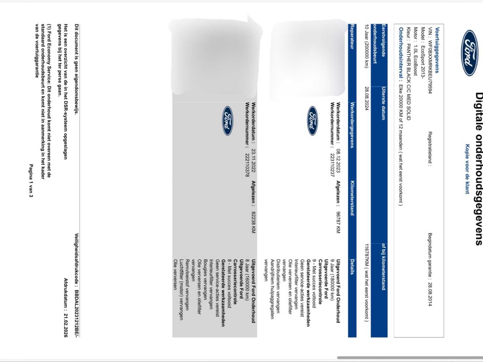 Onderhoudsboek zie foto's Niet-rokend voertuig ABS, centrale armleuning, alarm, dakdrager Bluetooth / GSM, Spraakbesturing Automatische klimaatregeling Achteruitrijsensor, ESP, Isofix, 17 lichtmetalen velgen Boordcomputer, radio/cd/aux Automatische koplamp, mistlicht, dagrijlicht Elektrische spiegels, cruisecontrol, afstandsbediening Centrale vergrendeling, elektrische voor- en achterruiten, multifunctioneel stuurwiel No Merk: Ford Model: EcoSport Type: JK8 Bouwjaar: 2014 Afgelezen kilometerstand: 127458km Cilinderinhoud: 998cc Vermogen (kW): 92kW Brandstof: Benzine Chassisnummer: WF0BXXMRKBEU79594 Datum eerste toelating: 18/05/2015 Vermogen (pk): 125hp Energielabel: Euro 5b Aantal zitplaatsen: 5 Kleur: Zwart Transmissie: Handboek Stuurwiel: Links Aantal deuren: 5 Gelijkvormigheidsattest aanwezig: waar Carpass: waar Vavato voert geen technische keuring uit.: waar Airconditioning: true Navigatie: true