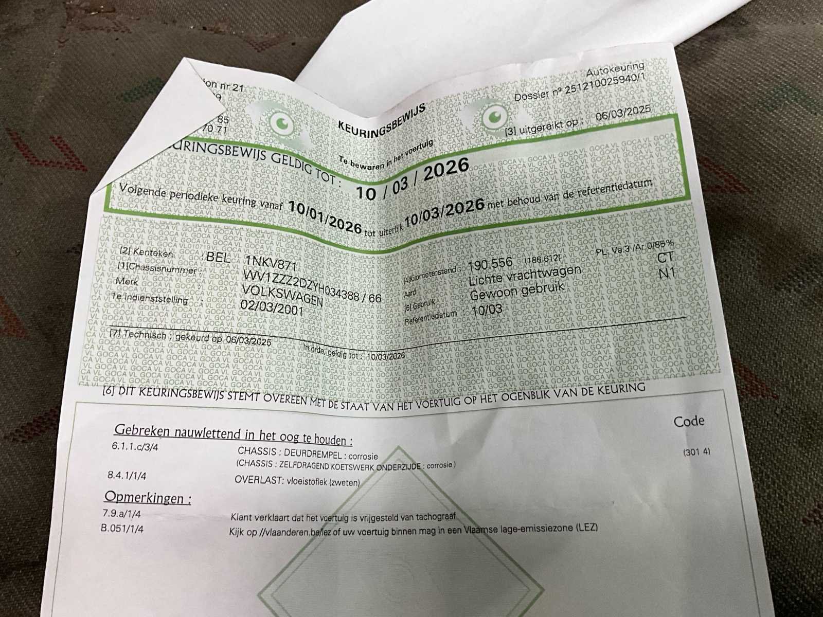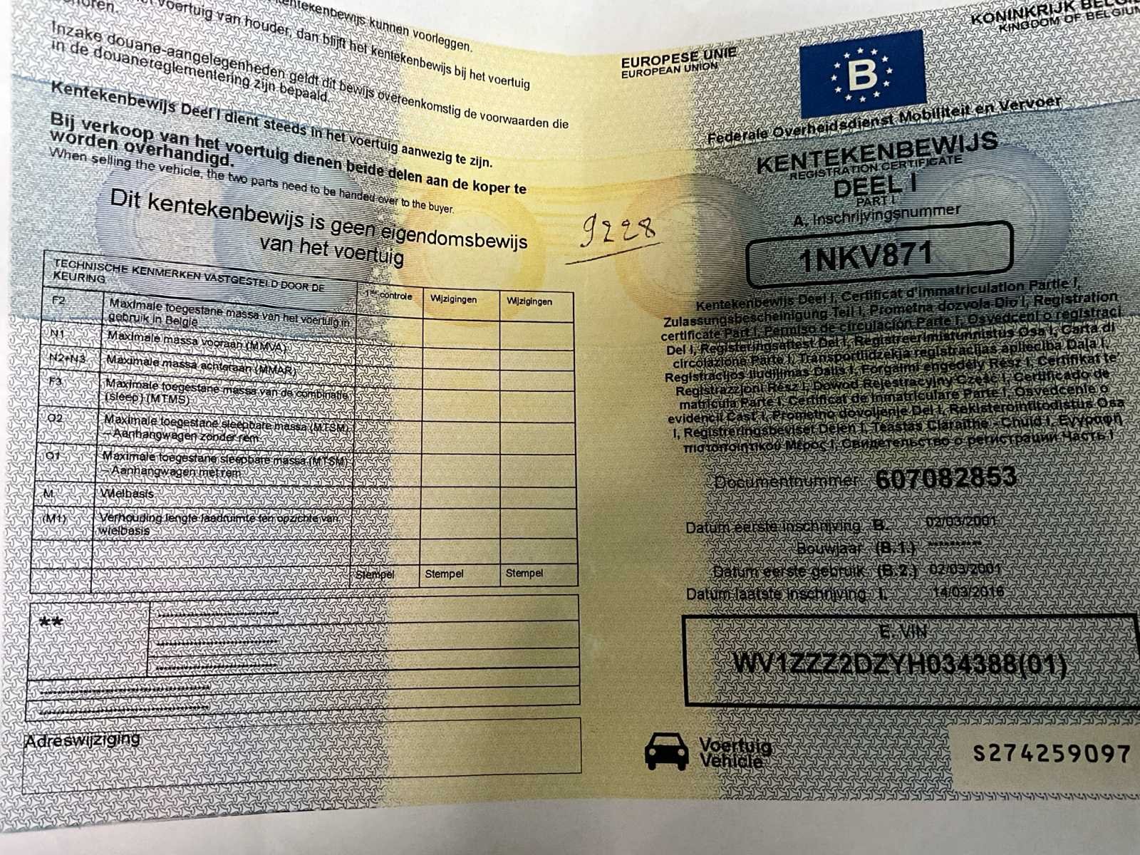 No Merk: Volkswagen Bouwjaar: 2001 Afgelezen kilometerstand: 191506km Brandstof: Diesel Datum eerste toelating: 02/03/2001 Transmissie: Handgeschakeld Nationaliteit documenten: Belgisch Start en rijdt: Ja startinformatie : Start en rijdt Vavato voert geen technische keuring uit.: true Inschrijvingsbewijs - deel 1 : Aanwezig Inschrijvingsbewijs - deel 2: Aanwezig