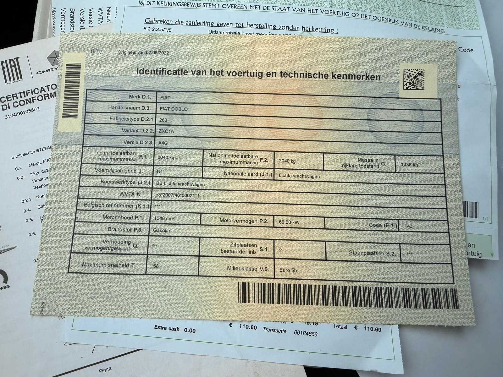 Nee Merk: Fiat Model: Doblo Bouwjaar: 2014 Cilinderinhoud: 1248cc Vermogen (kW): 66kW Brandstof: diesel Datum eerste toelating: 05/02/2014 Nationaliteit documenten: Belgisch Start en rijdt: Ja startinformatie : Start en rijdt Inschrijvingsbewijs - deel 1 : Aanwezig Inschrijvingsbewijs - deel 2: Niet aanwezig