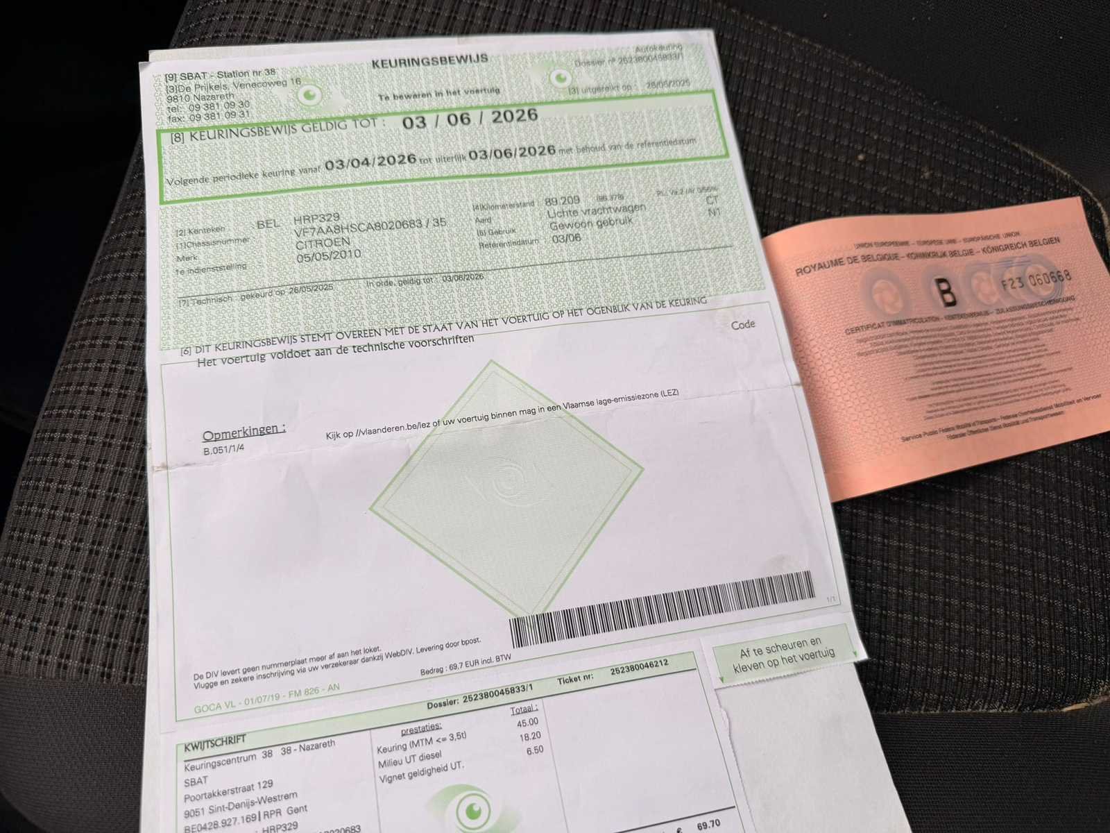 Nee Merk: Citroën Model: Nemo Bouwjaar: 2010 Afgelezen kilometerstand: 91197km Cilinderinhoud: 1398cc Vermogen (kW): 50kW Brandstof: diesel Datum eerste toelating: 05/05/2010 Nationaliteit documenten: Belgisch Start en rijdt: Ja startinformatie : Start en rijdt Inschrijvingsbewijs - deel 1 : Aanwezig Inschrijvingsbewijs - deel 2: Aanwezig