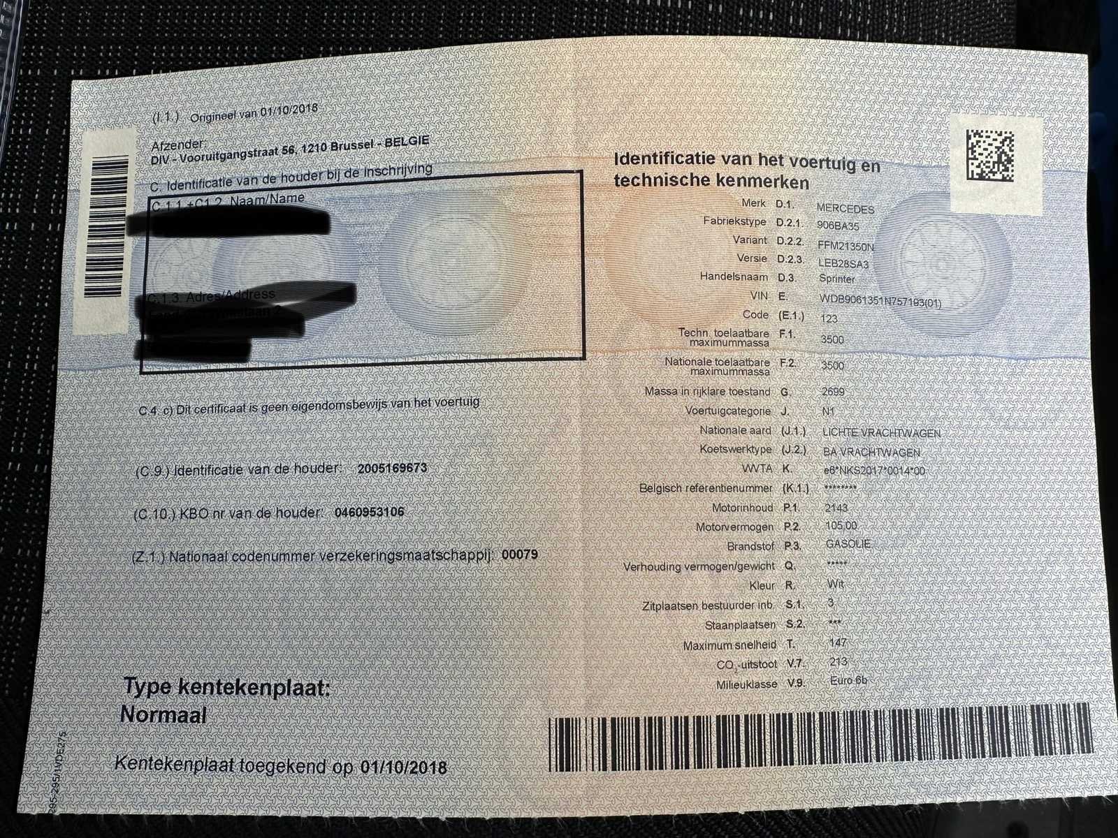 Mercedes, Model:Sprinter 314 Meubelbak Bouwjaar:2017 Brandstof: Diesel Motorvermogen :140 pk Euro 6 Kilometerstand:144995 Chassisnummer: WDB906135N757193 Nee Kenteken: VDE275 Merk: Mercedes Type: 314 Bouwjaar: 2018 Chassisnummer VIN: WDB906135N757193 Cilinderinhoud: 2143cc Datum eerste toelating: 2017 Datum eerste toelating (NL): 01/10/2018 Fuel Type: Diesel