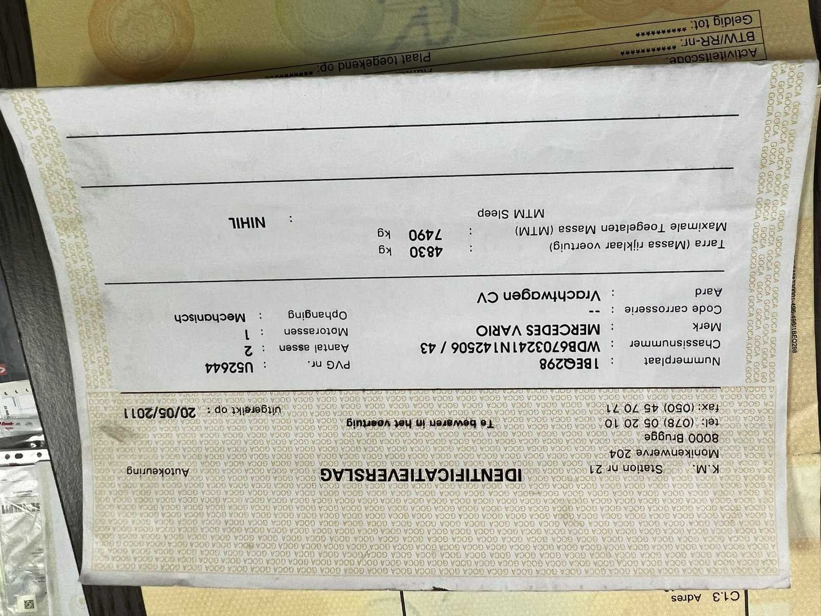 Alles in werkende staat. Nee Merk: Mercedes-Benz Type: Vario 813 D Bouwjaar: 2011 Cilinderinhoud: 4250cc Datum eerste toelating: 13/05/2011 Fuel Type: Diesel Startinformatie: Start en rijdt Afgelezen kilometerstand: 88981km Nationaliteit documenten: Belgisch