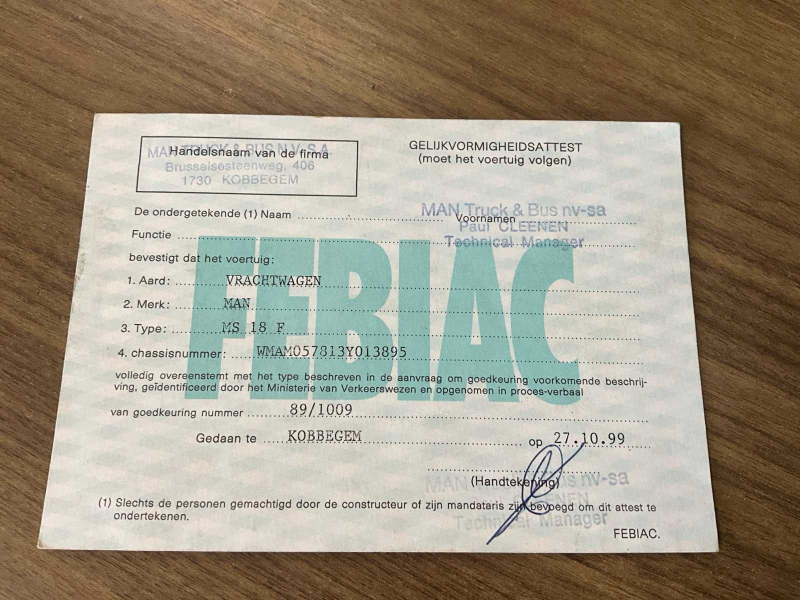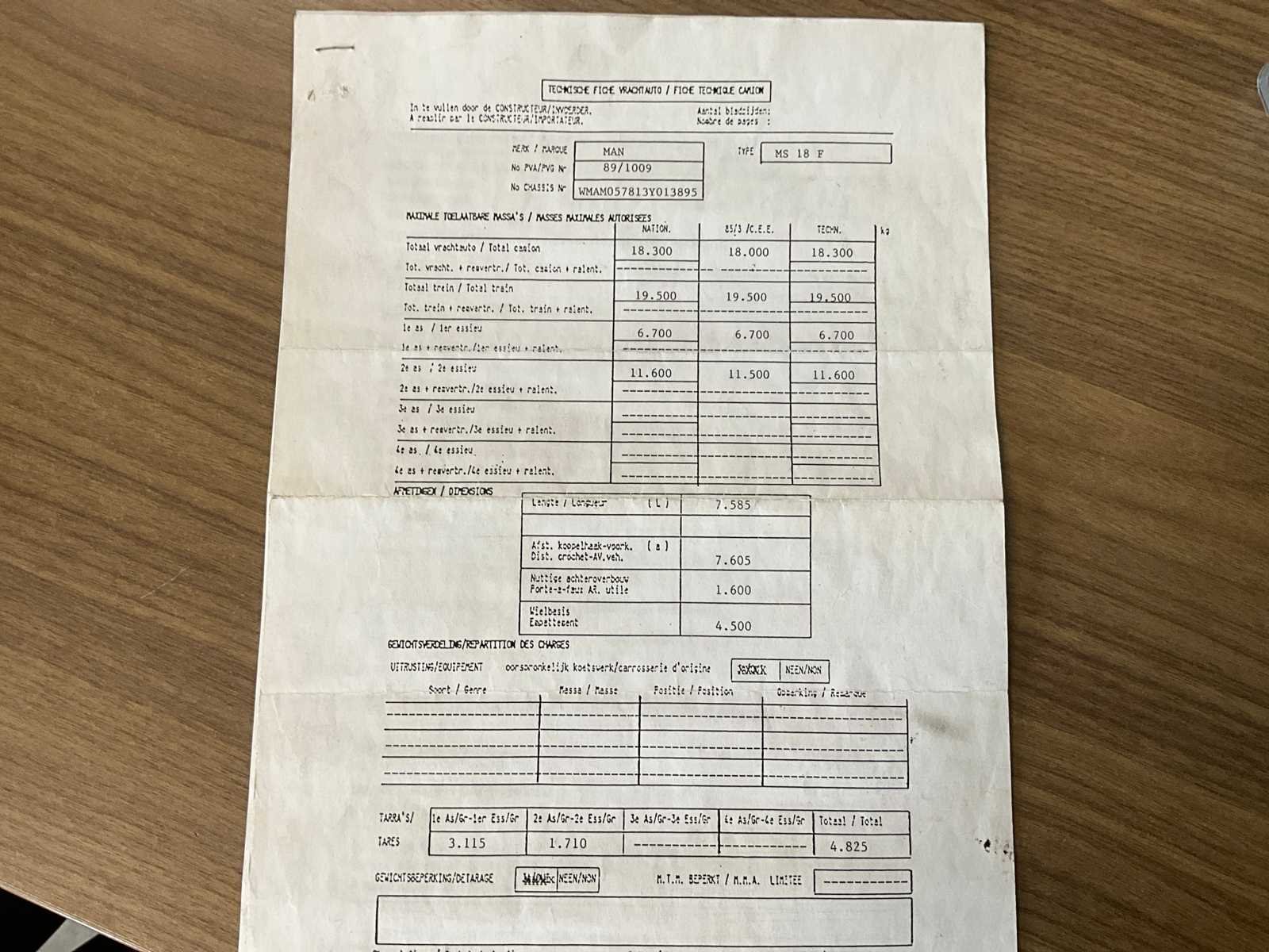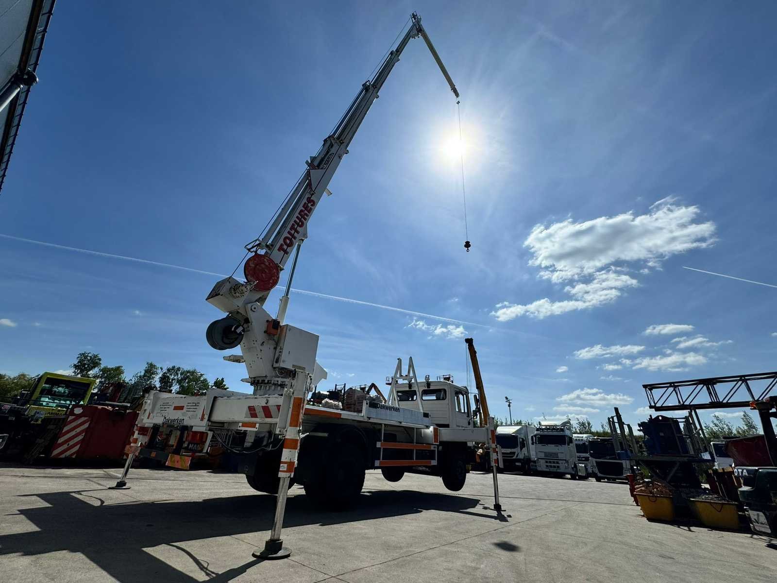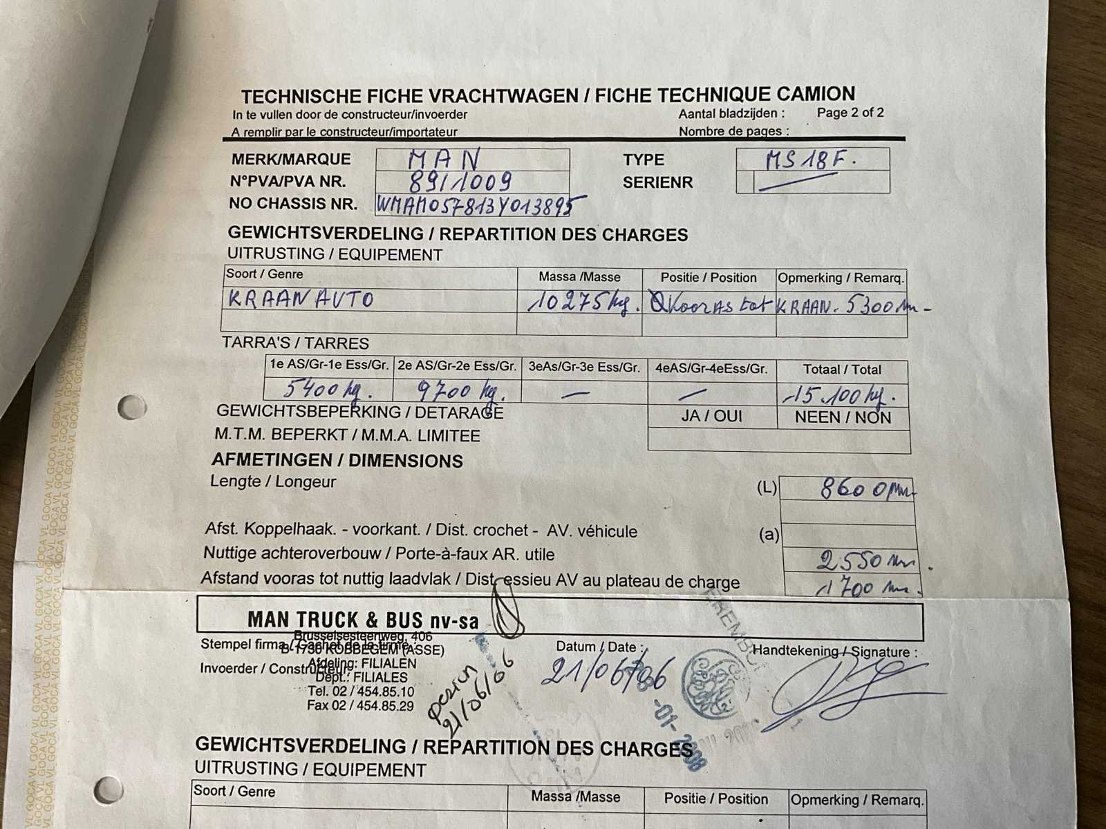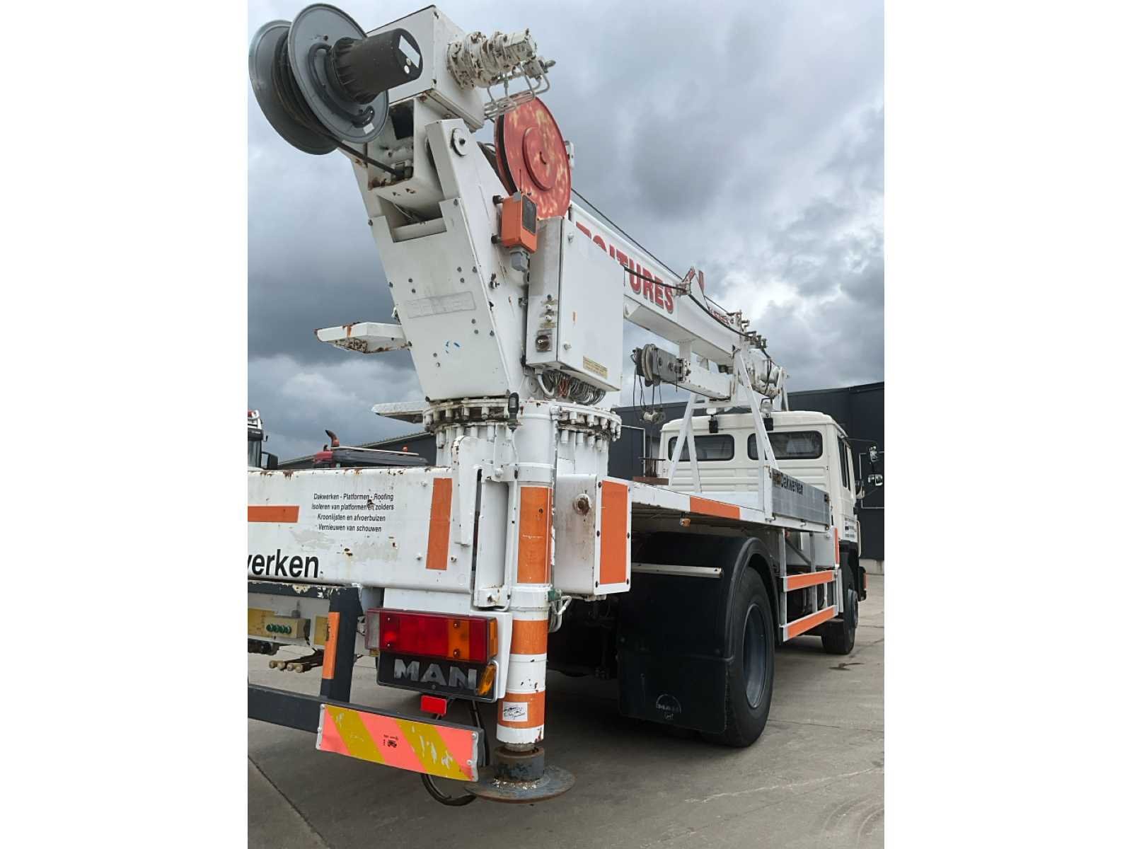 Volledig functioneel (zie foto’s). geldige technische keuring Nee Merk: MAN Type: kraanwagen Böcker Bouwjaar: 1994 Chassisnummer VIN: WMAM057813Y013895 Kilometerstand bij opname: 43875km Datum eerste toelating: 4/11/1994 Aantal assen: 2 Totale afmeting Hoogte: 15100mm Nationaliteit documenten: B Kentekenpapieren compleet?: true Aantal zitplaatsen: 2 Handgeschakelde versnellingsbak: true Diesel: true