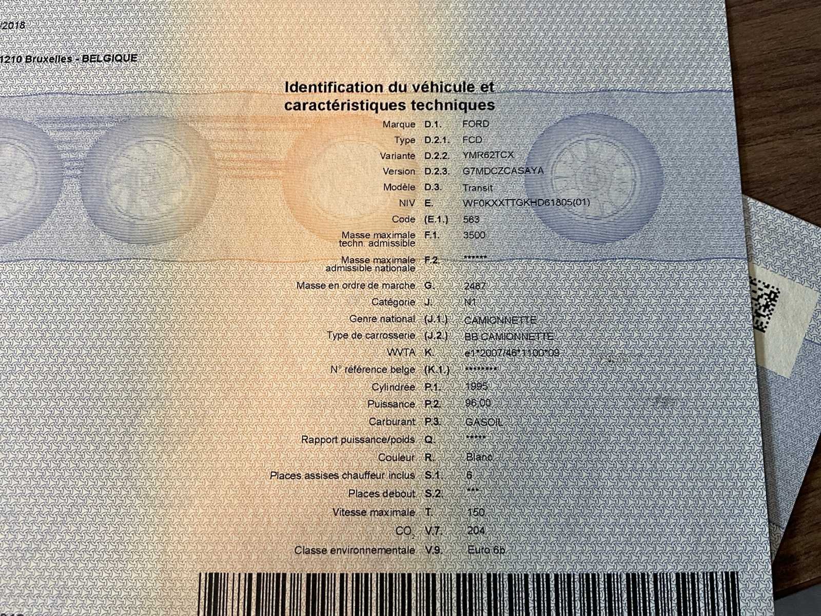 Motorprobleem (zie video) - carrosserie ziet er netjes uit, interieur gebruikssporen (zie foto’s) - wordt verkocht zonder inhoud in laadruimte Nee Merk: Ford Model: Transit Type: lichte vracht Bouwjaar: 2018 Cilinderinhoud: 1995cc Vermogen (kW): 96kW Brandstof: diesel Chassisnummer: WF0KXXTTGKHD61805 Laadvermogen: 1010kg Datum eerste toelating: 22/1/2018 Aantal zitplaatsen: 2 Transmissie: Handgeschakeld Emissieklasse: Euro 6b Nationaliteit documenten: B Gelijkvormigheidsattest aanwezig: true Start en rijdt: nee Vavato voert geen technische keuring uit.: true Inschrijvingsbewijs - deel 1 : Aanwezig Inschrijvingsbewijs - deel 2: Aanwezig