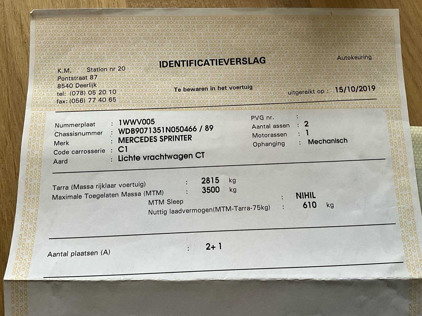 Klein onderhoud gehad in januari/26 3 zijdig kipper Nieuwe remblokken Nieuwe batterij sinds 3 maanden Exclusief werkmatrialen 320x200 laadruimte Inoxen netten , is demonteerbaar Nee Merk: Mercedes Model: Sprinter Bouwjaar: 2019 Cilinderinhoud: 2143cc Vermogen (kW): 120kW Brandstof: Diesel Chassisnummer: WDB9071351N050466 Datum eerste toelating: 09102019 Aantal zitplaatsen: 3 Transmissie: Handschakkeld Stuurwiel: Links Emissieklasse: 6B Aantal sleutels: 2 Nationaliteit documenten: Belg Gelijkvormigheidsattest aanwezig: true Start en rijdt: Ja Keuringsrapport geldig tot: 15/10/2026 Vavato voert geen technische keuring uit.: true Inschrijvingsbewijs - deel 1 : Aanwezig Inschrijvingsbewijs - deel 2: Aanwezig