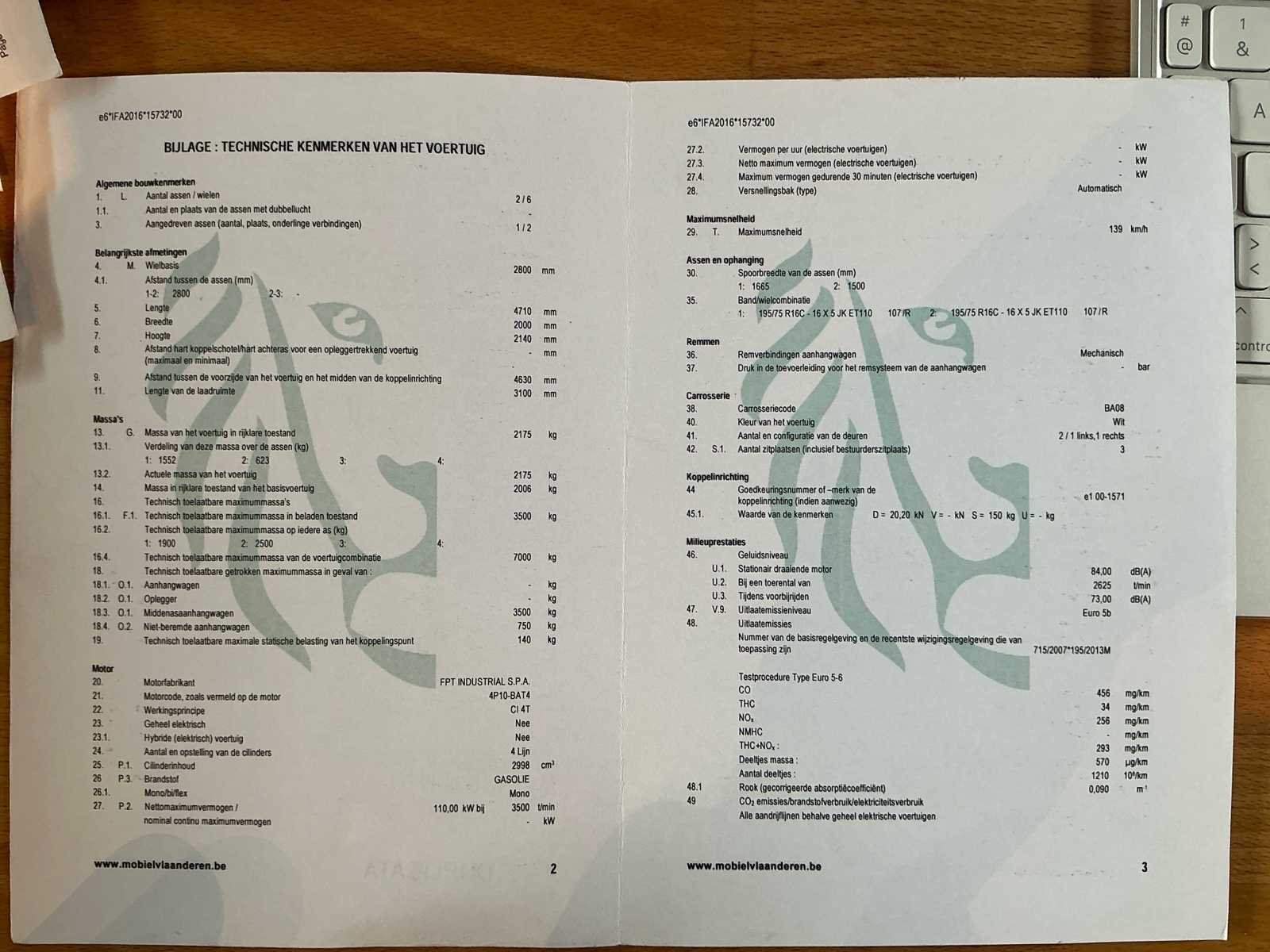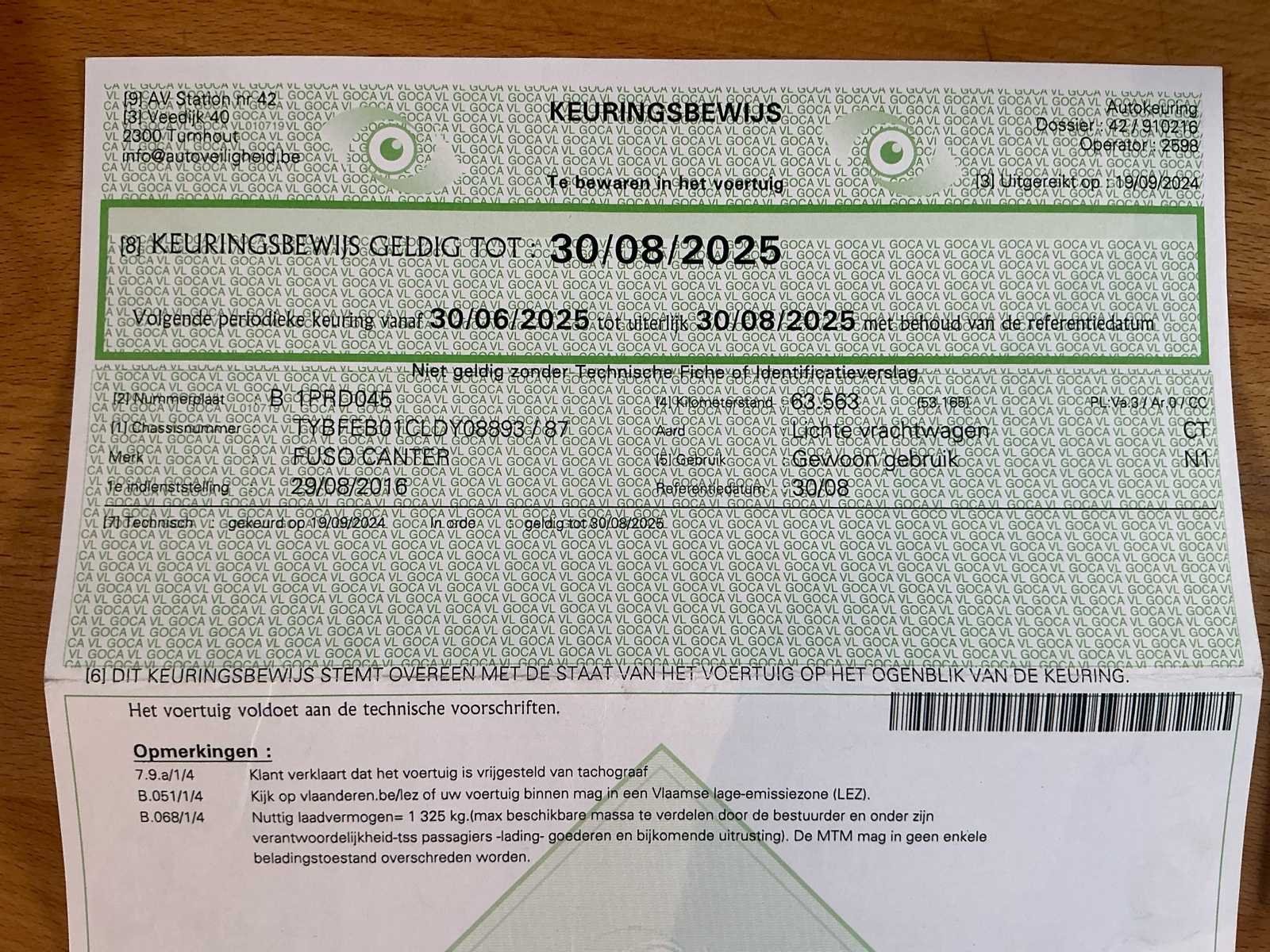 Wordt verkocht in combinatie! Trekker + aanhangwagen. laadbrug tot 1000kg + steunpoten Trekker is 3,5T (Belgisch B rijbewijs) , in combinatie met trailer = 7T (Belgisch BE rijbewijs!) Beiden voorzien van inschrijvingsbewijs Deel 1 en 2 (fotos) Aanhangwagen eerste inschrijving: 16/03/2016 Vavato voert geen technische keuring uit en keuringsrapport geldig tot 30/08/2025. Aanhangwagen voorzien van luchtremmen & luchtvering Nee Merk: Mitsubishi Fuso Type: Canter Bouwjaar: 2016 Chassisnummer: TYBFEB01CLDY07893 Afgelezen kilometerstand: 67000km Cilinderinhoud: 2998cc Vermogen (kW): 110kW Brandstof: Diesel Datum eerste inschrijving: 29/08/2016 Transmissie: Automaat Aantal zitplaatsen: 3 Nationaliteit documenten: BE Stuurwiel: Links Aantal deuren: 2 Aantal sleutels: 2 Carrosserie: Trekker + aanhangwagen CO2-uitstoot NEDC: 248 Emissieklasse: Euro 5b Kentekenpapieren compleet?: true Boorddocumenten aanwezig?: true Startinformatie: Heeft motorstoring, motor draait maar voertuig opladen voor transport!