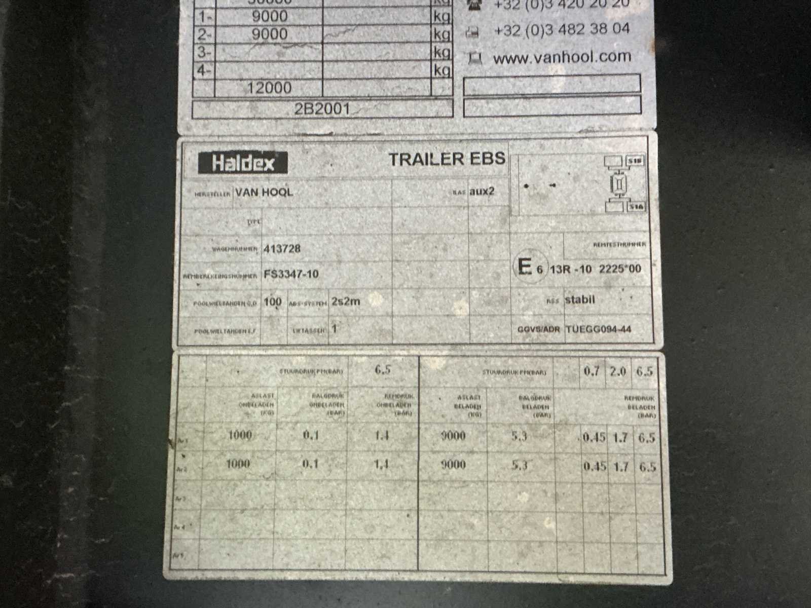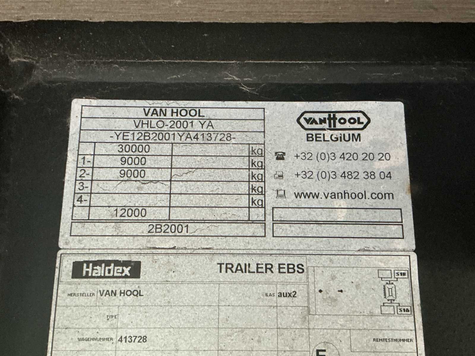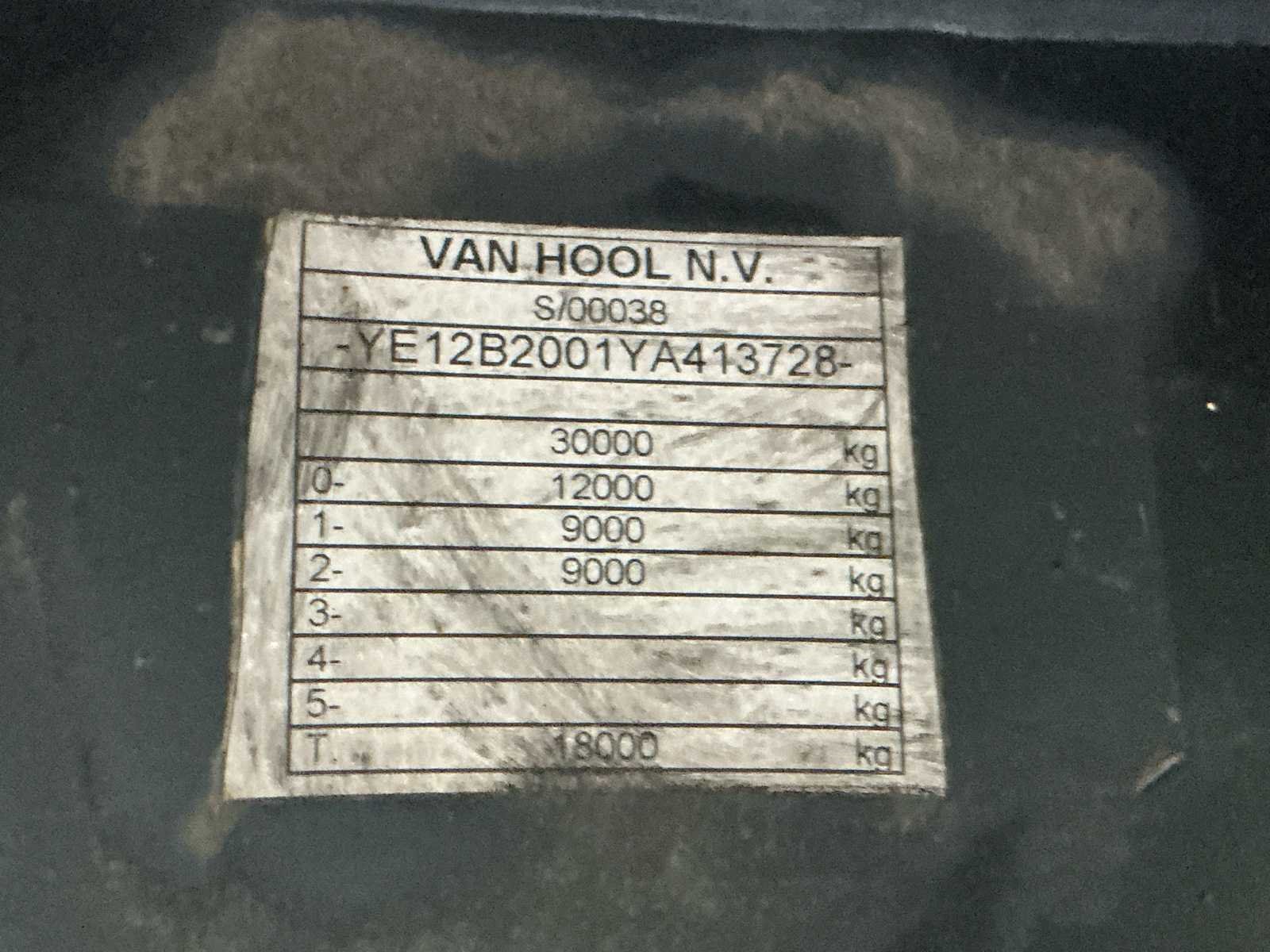 Deze Van Hool VHLO-2001 YA oplegger werd voor het eerst ingeschreven op 2 april 2009 en is uitgerust met een luchtgeveerde tandem asopstelling (2 assen van elk 9.000 kg). De maximaal toegelaten massa bedraagt 30.000 kg, met een maximaal asvermogen van 18.000 kg. Het ledig gewicht bedraagt 7.690 kg. De oplegger is voorzien van een Haldex Trailer EBS-remsysteem en beschikt over een hydraulische laadklep achteraan, wat het laden en lossen van goederen aanzienlijk vergemakkelijkt. Dankzij de pneumatische ophanging wordt een stabiele en comfortabele rit gegarandeerd, ook bij wisselende belading. De oplegger is gekeurd en geldig tot 4 mei 2026. Deze Van Hool oplegger is geschikt voor diverse transporttoepassingen en vormt een degelijke en betrouwbare oplossing voor professioneel gebruik. No Merk: Van Hool Type: VHLO-2001 YA Bouwjaar: 2009 Chassisnummer VIN: YE12B2001YA413728 Datum eerste toelating: 02/04/2009 Aantal assen: 2 Hydraulische laadklep: true