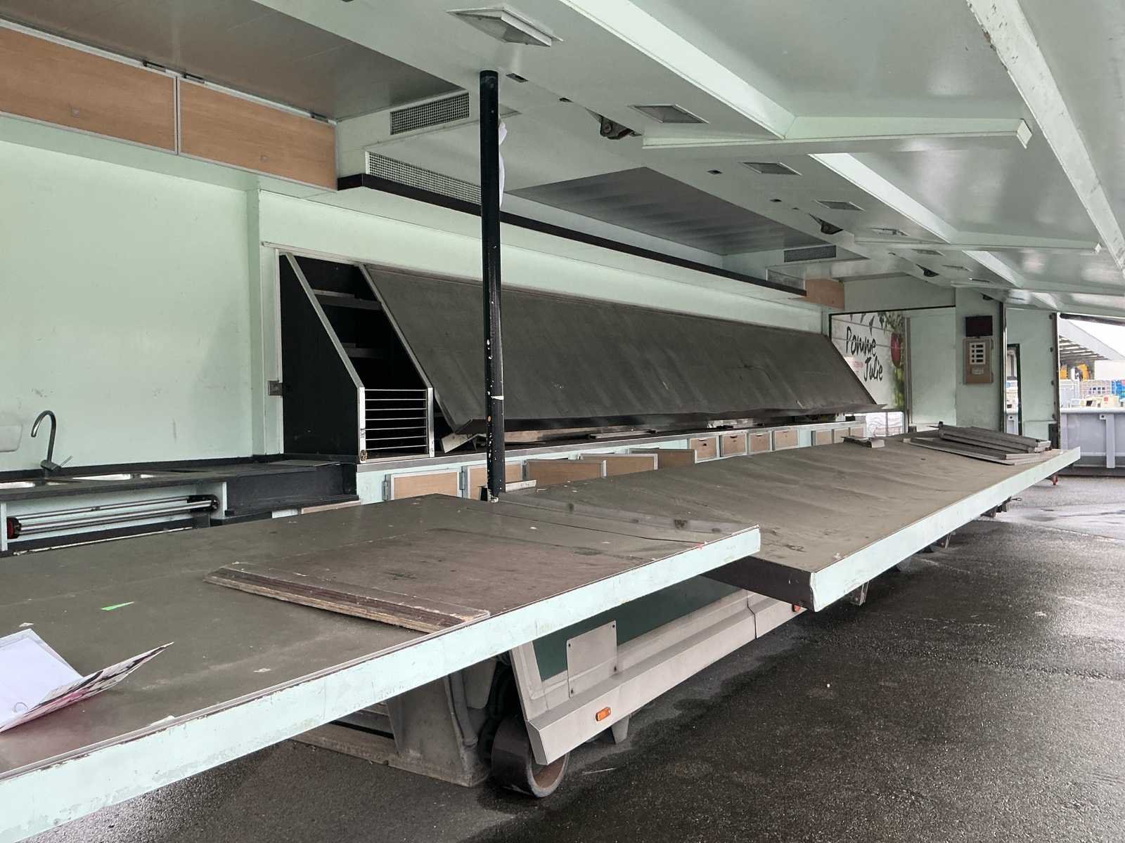 Afmetingen transport: Lerngte: 13700mm Breedte: 2600mm Hoogte: 3350mm Afmetingen uitgebouwd: Lengte: 18600mm Breedte: 5000mm Hoogte: 3350mm -Vernieuwde batterijen 22 000KG MTM Papieren aanwezig No Merk: DEDE Bouwjaar: 2006 Chassisnummer VIN: DE100205 Datum eerste toelating: 14/07/2006 Koeltrailer: true