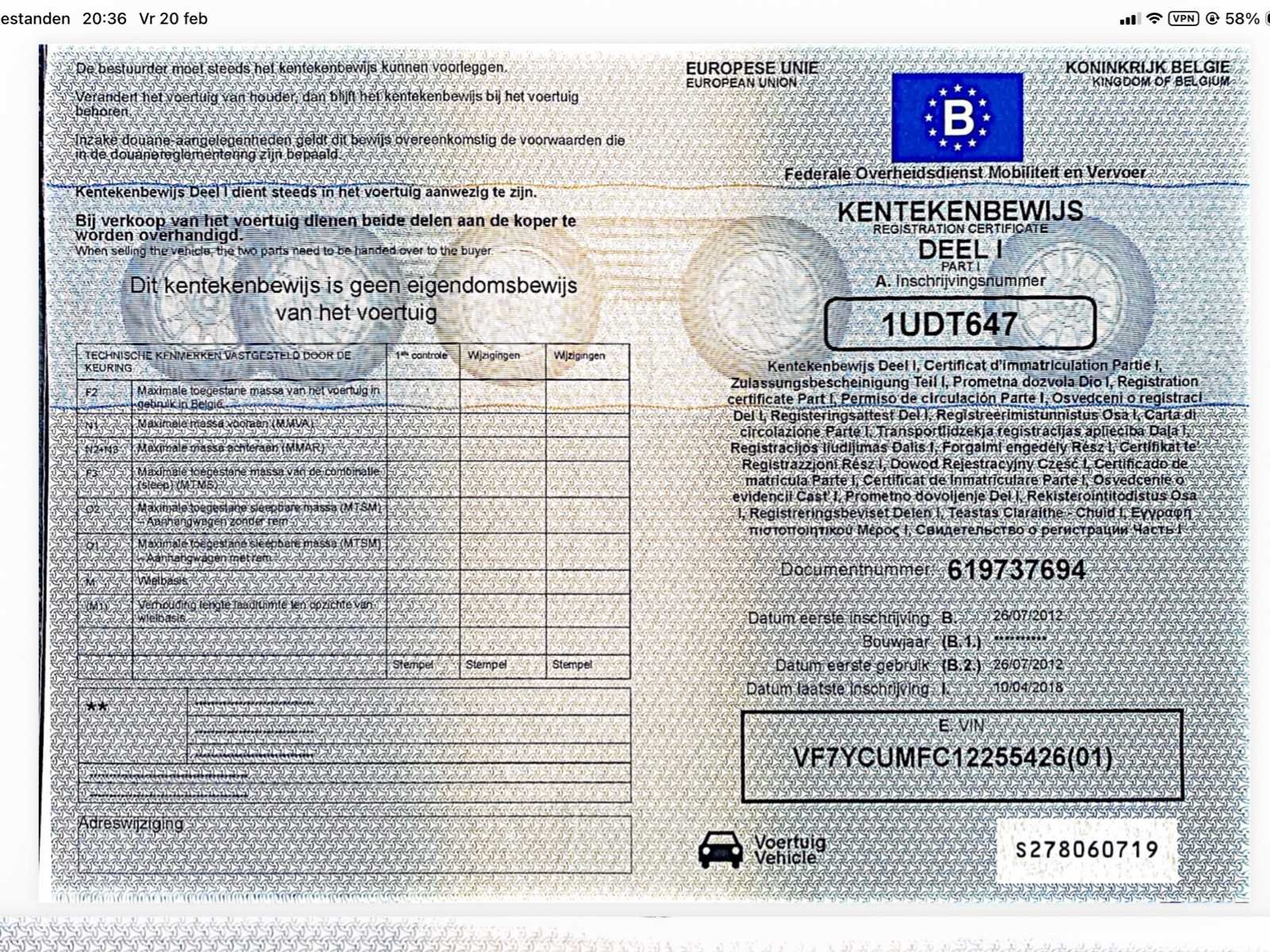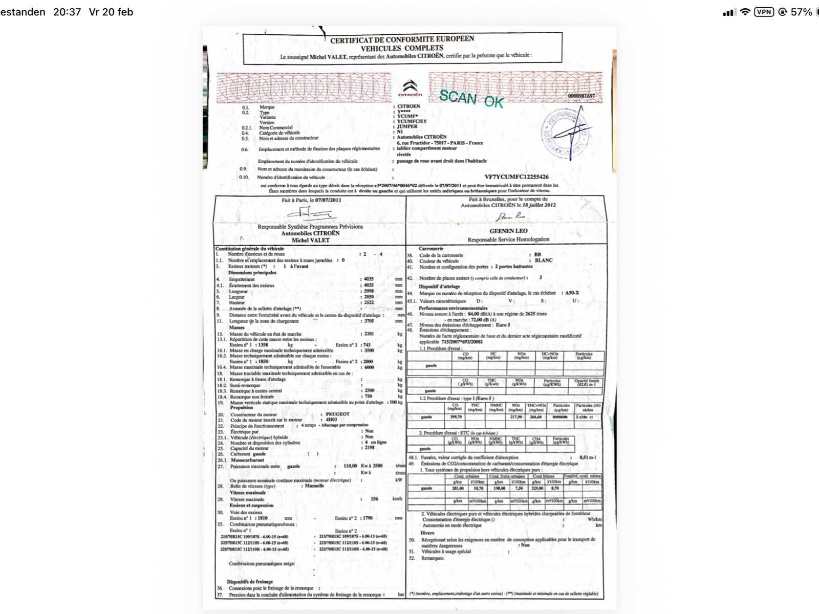 Camionette is aan alle zijdes voorzien van reclame stickers, deze zijn omwille privacy redenen verwijderd. Nee Merk: Citroën Type: Jumper Bouwjaar: 2012 Chassisnummer: VF7YCUMFC12255426 Afgelezen kilometerstand: 153000km Cilinderinhoud: 2198cc Vermogen (kW): 110kW Brandstof: Diesel Datum eerste toelating: 26/07/2012 Transmissie: Handgeschakeld Aantal zitplaatsen: 3 Kleur: Wit Nationaliteit documenten: Belgisch Aantal deuren: 5 Aantal sleutels: 2 Emissieklasse: EURO 5 Kentekenpapieren compleet?: true Boorddocumenten aanwezig?: true