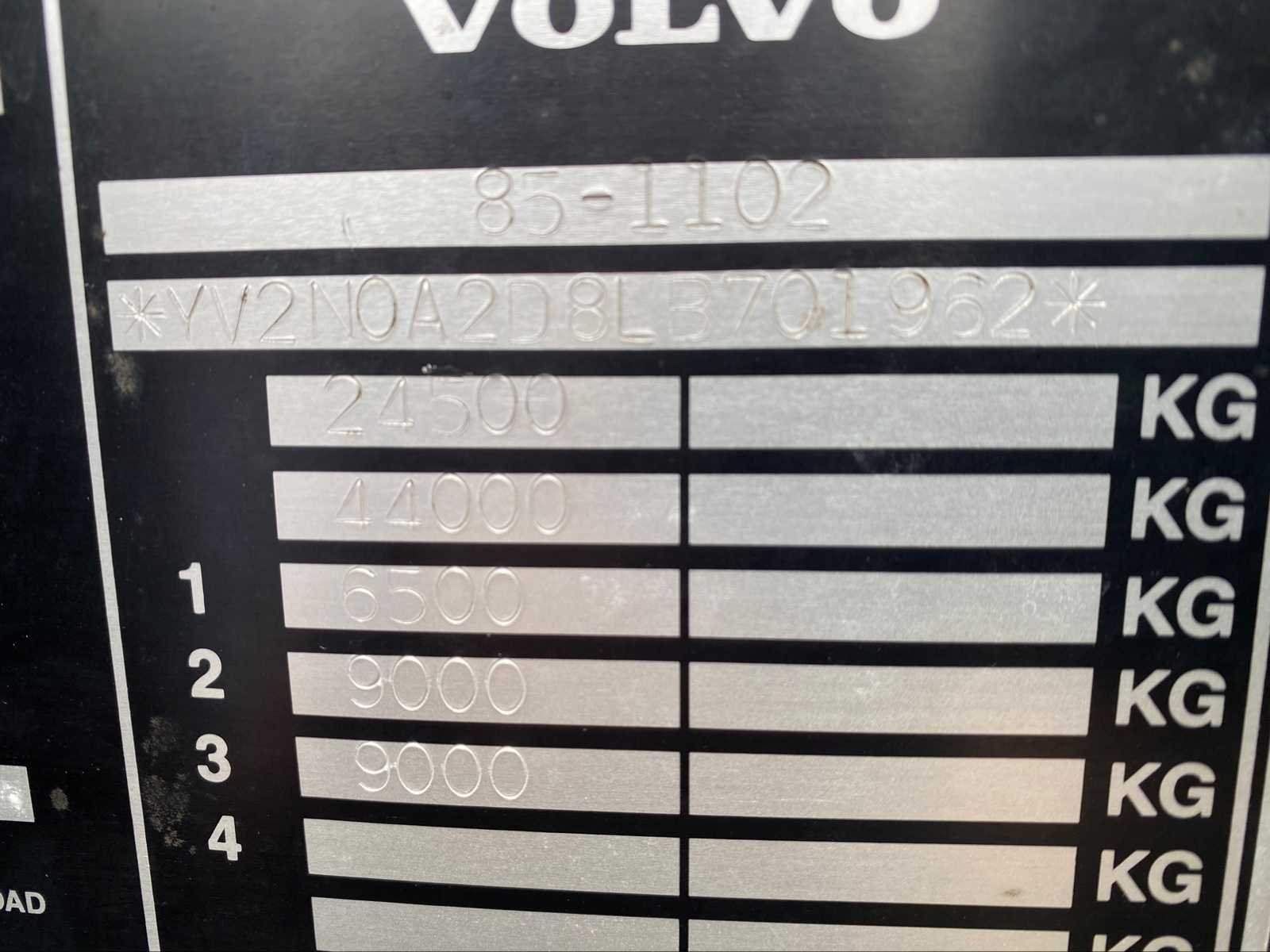 Inschrijvingsbewijs: attest van ministerie Belgische defensie aanwezig, nodig om in te schrijven; Gelijkvormigheidsattest: niet aanwezig Bandenmaat: 14.00R20; Afmetingen laadbak: 5700x2400mm, met neerklapbare schoften 550mm met bache No Merk: Volvo Type: N10 6x4 cargo Bouwjaar: 1988 Chassisnummer VIN: YV2N0A2D8LB701962 Aantal assen: 3 Handgeschakelde versnellingsbak: true Diesel: true