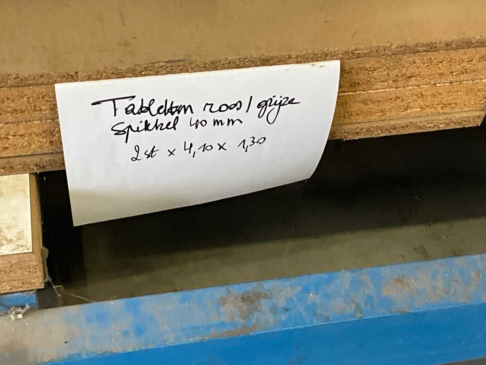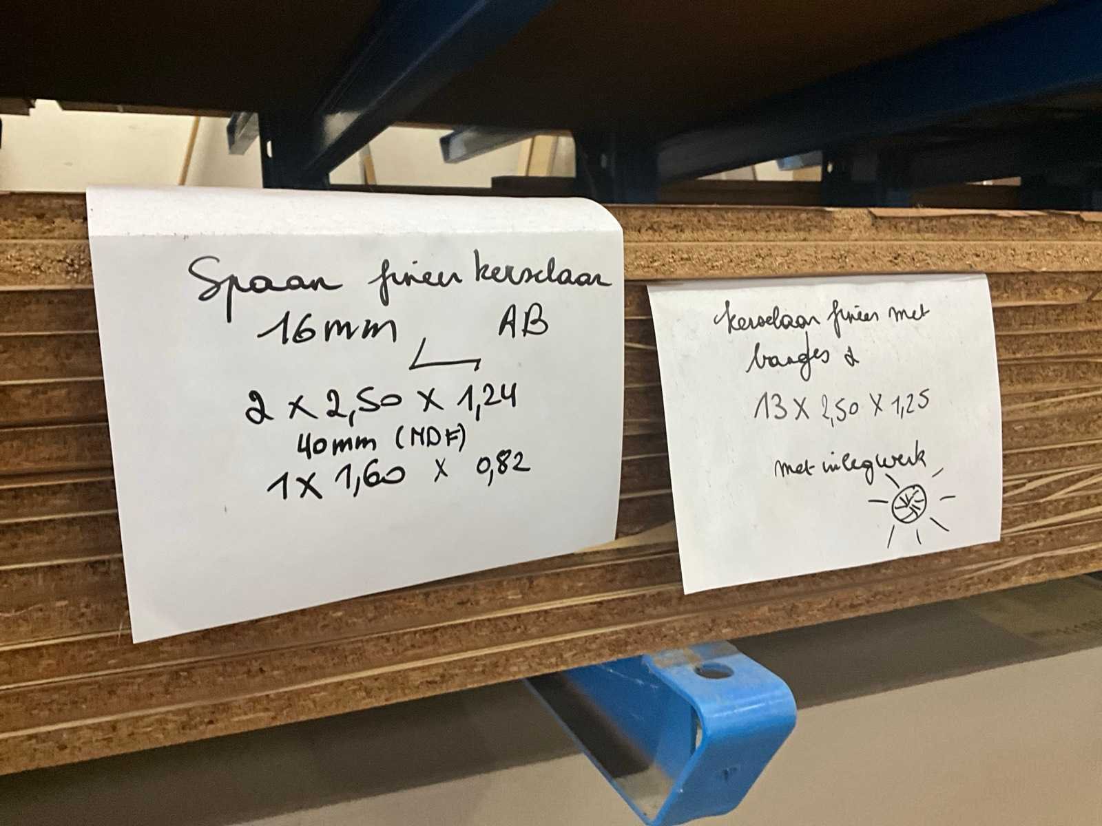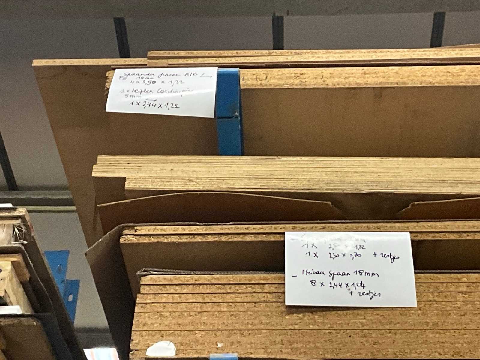Bestaand uit spaanderplaat 16 mm, Sapeli spaanderplaat 18 mm, Fincer spaanderplaat, multiplex, volkeren betonlook-zwart-zwart verlijmd-antraciet-enz.. platen, in 10 secties van draagarmstelling Nee