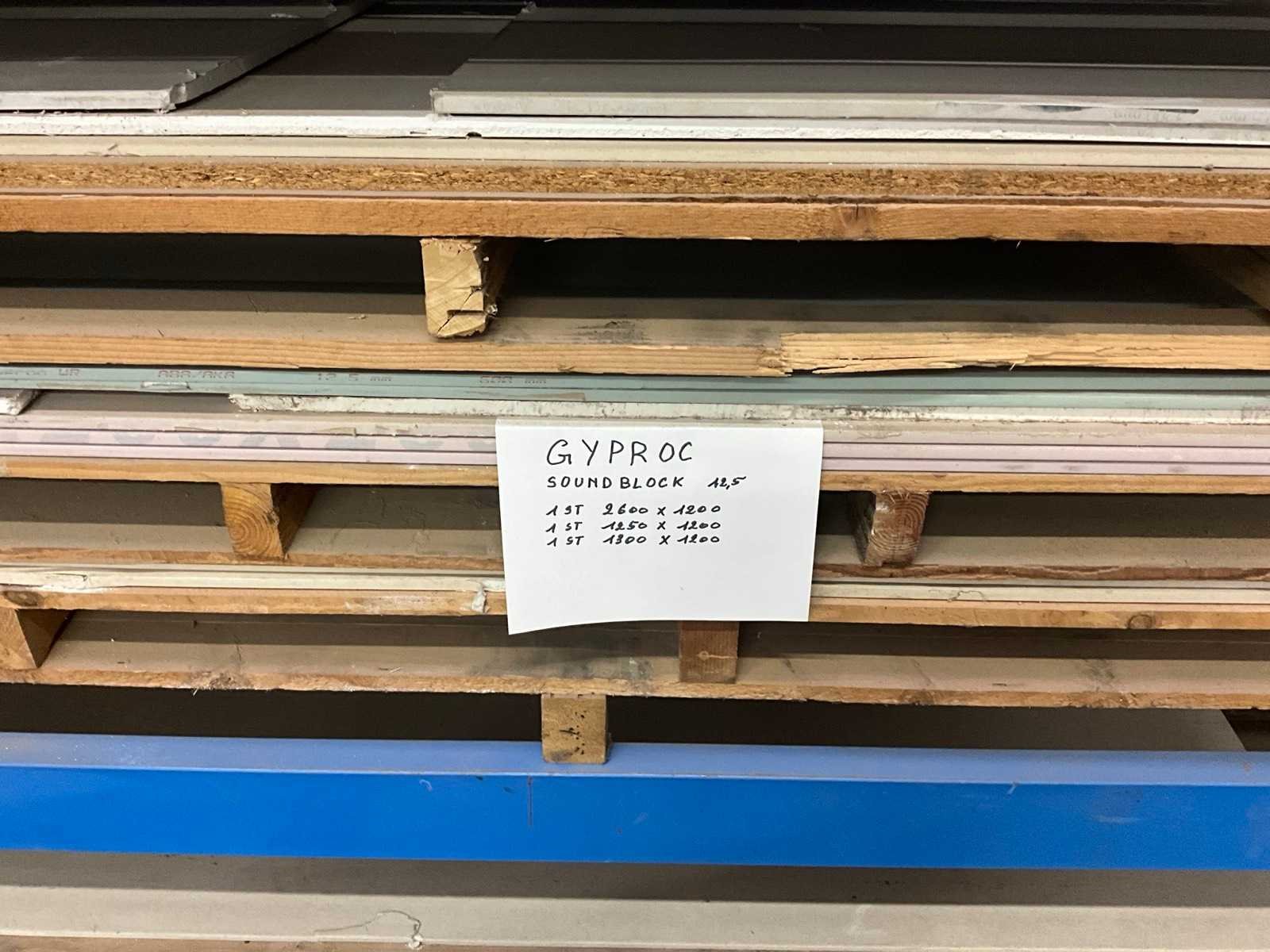 Inhoud Bestaand uit Formica, Laminaat, vensterbank, Gyplat, Gyproc, Promatec, enz.., in circa 16 secties, palletstelling bestaande uit 4x staander 1200x4000 mm + 34 liggers lengte 3600 mm Nee