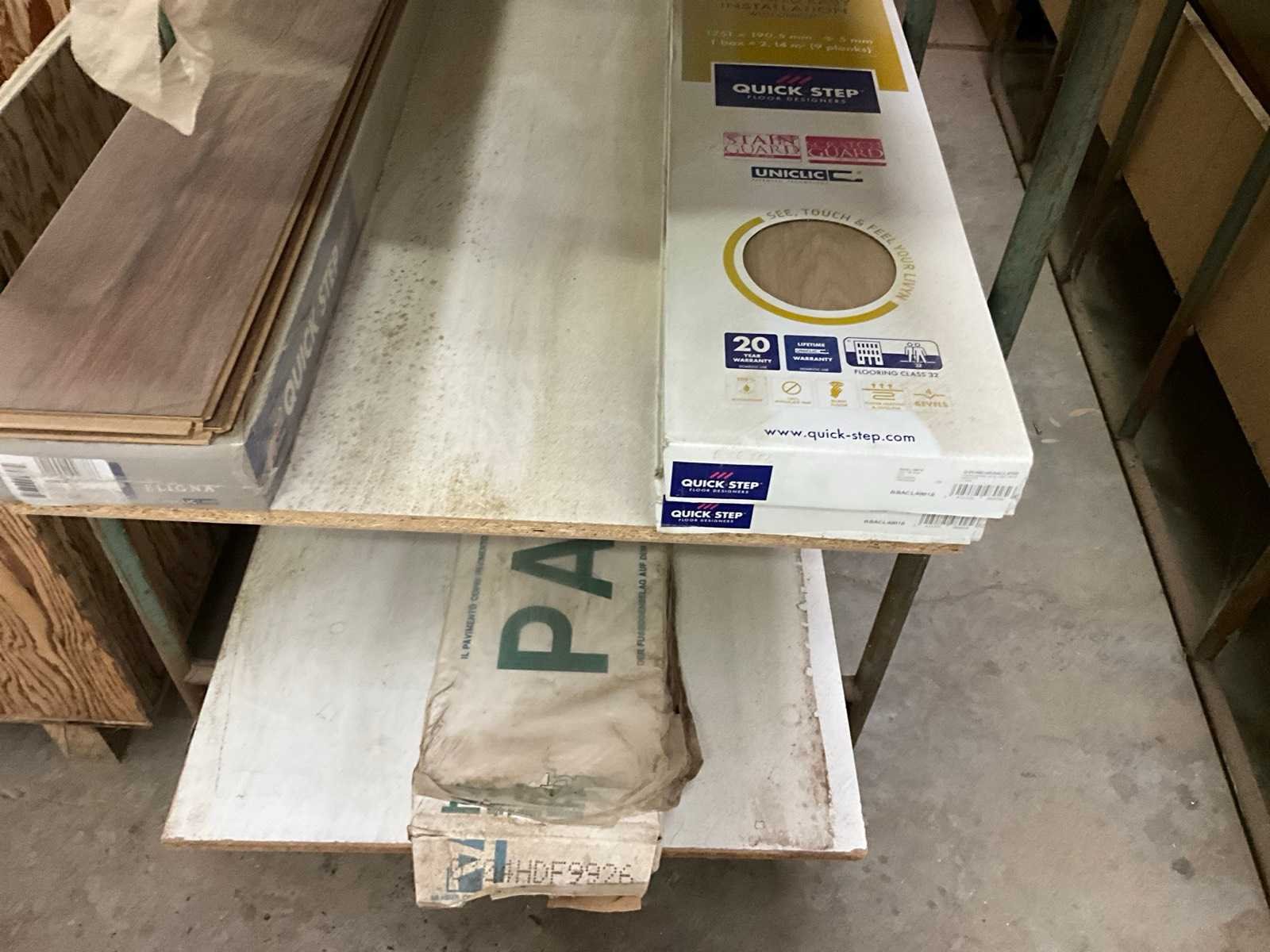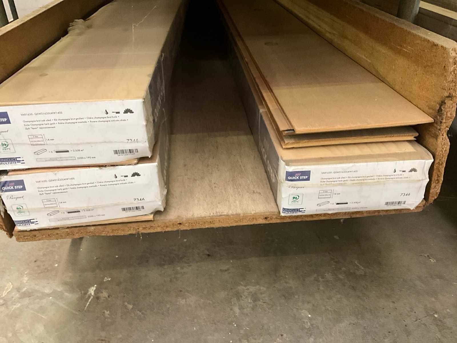 Bestaand uit circa 10 pakken laminaat diverse soorten, + partij houten deur en raamlijsten, inclusief stapeljuk Nee Merk: Quick step