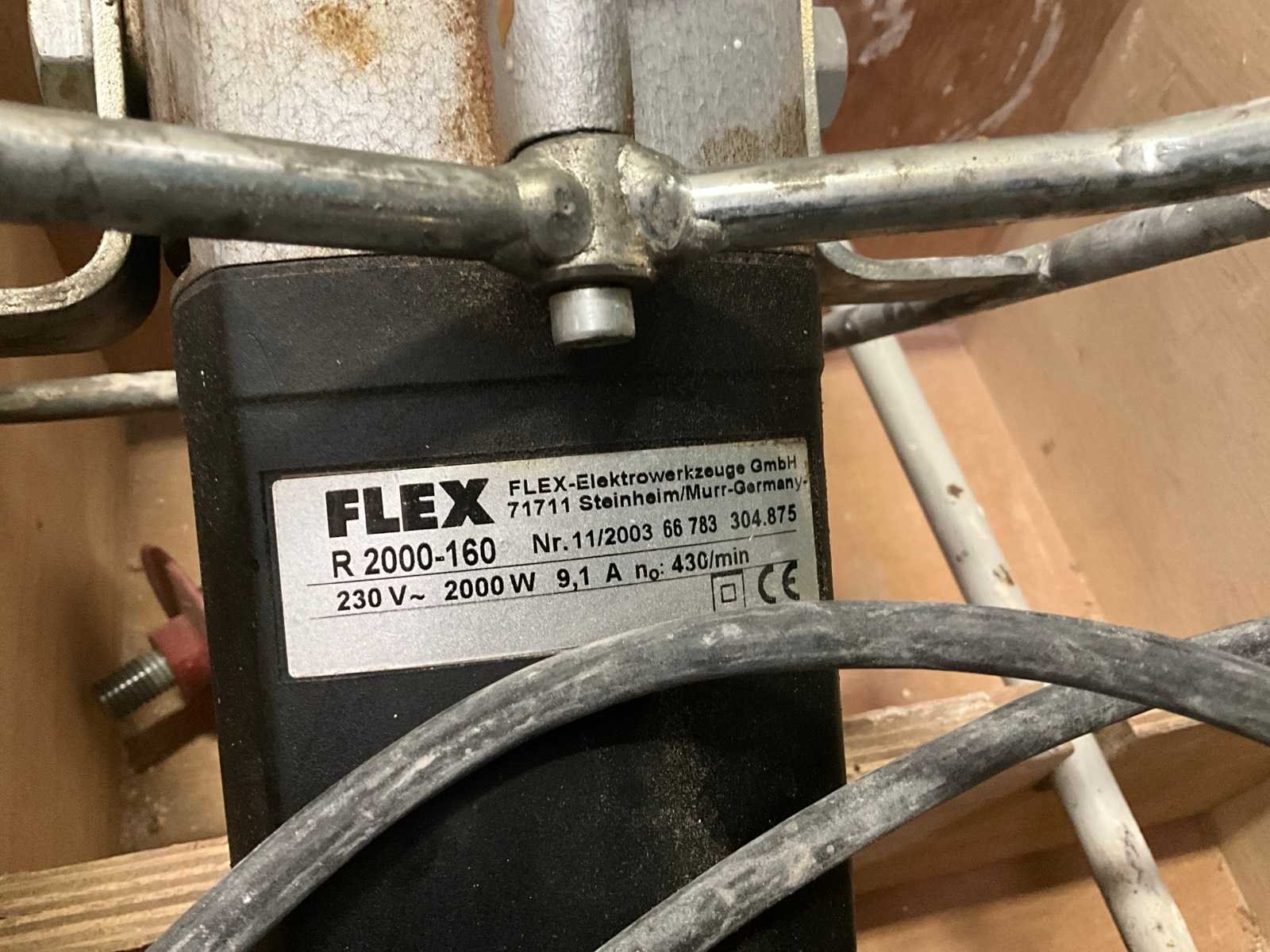 Motor 220 volt vermogen 2000W, voorzien van mengvijzel, in houten opbergkoffer Nee Merk: Flex Type: R2000-160 Totale afmeting L: 600mm Totale afmeting Breedte: 390mm Totale afmeting Hoogte: 300mm