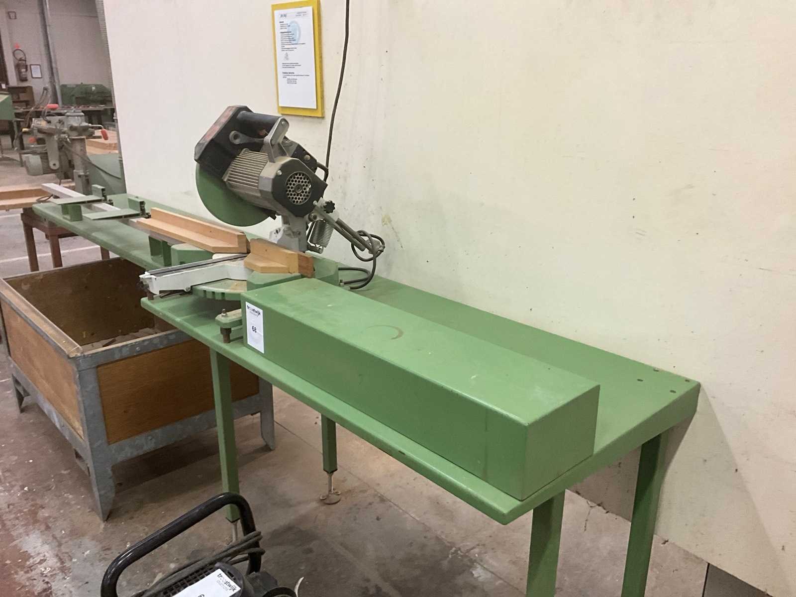 Voorzien van profielstalen werktafel Nee Merk: Electra Beckum Zaagblad Ø: 250mm Verstek: true Tafel afmeting l: 700mm Tafel afmeting b: 3000mm Aansluiting: 220V