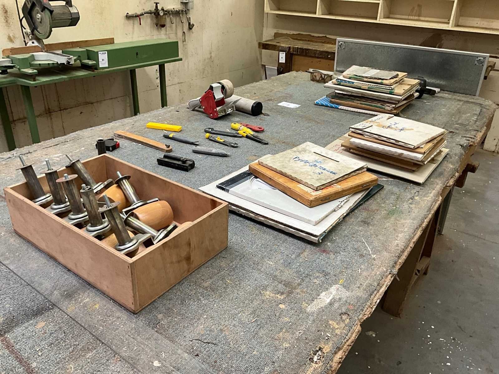 Bestaand uit circa 25 diverse zaagbladen, + cuttermessen, veiligheidsbrillen en houten loopwielen Nee