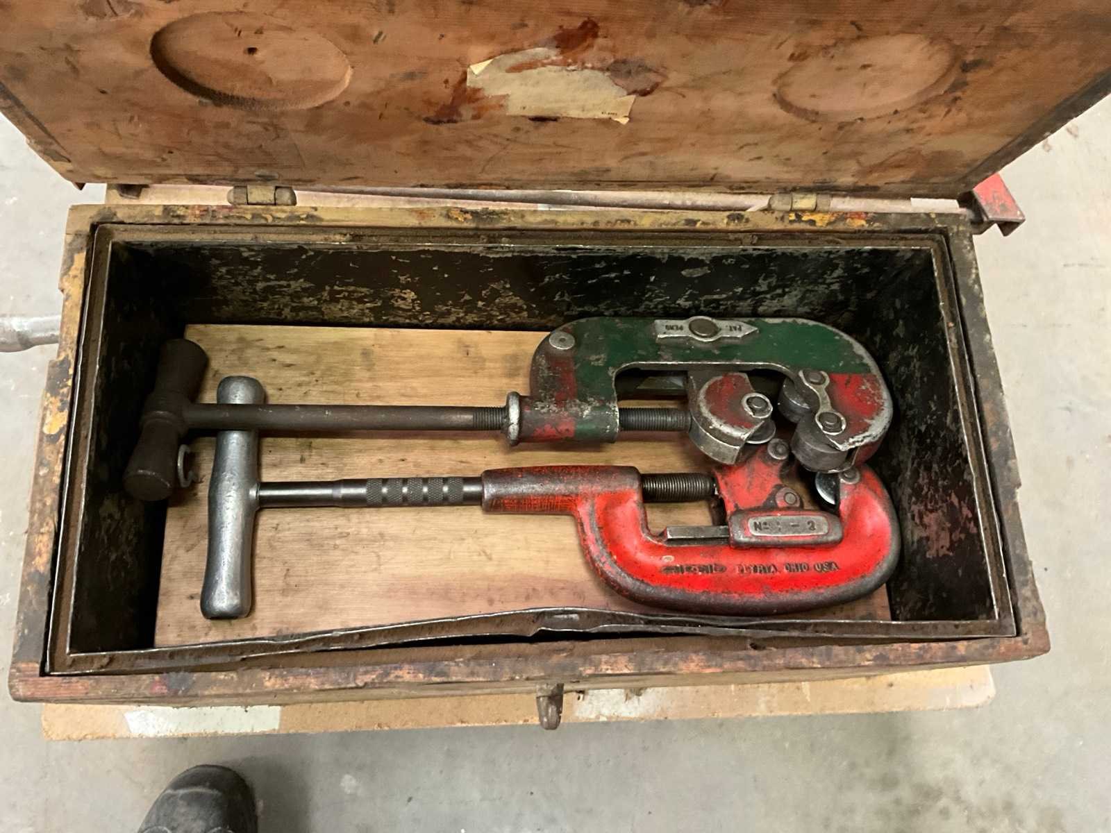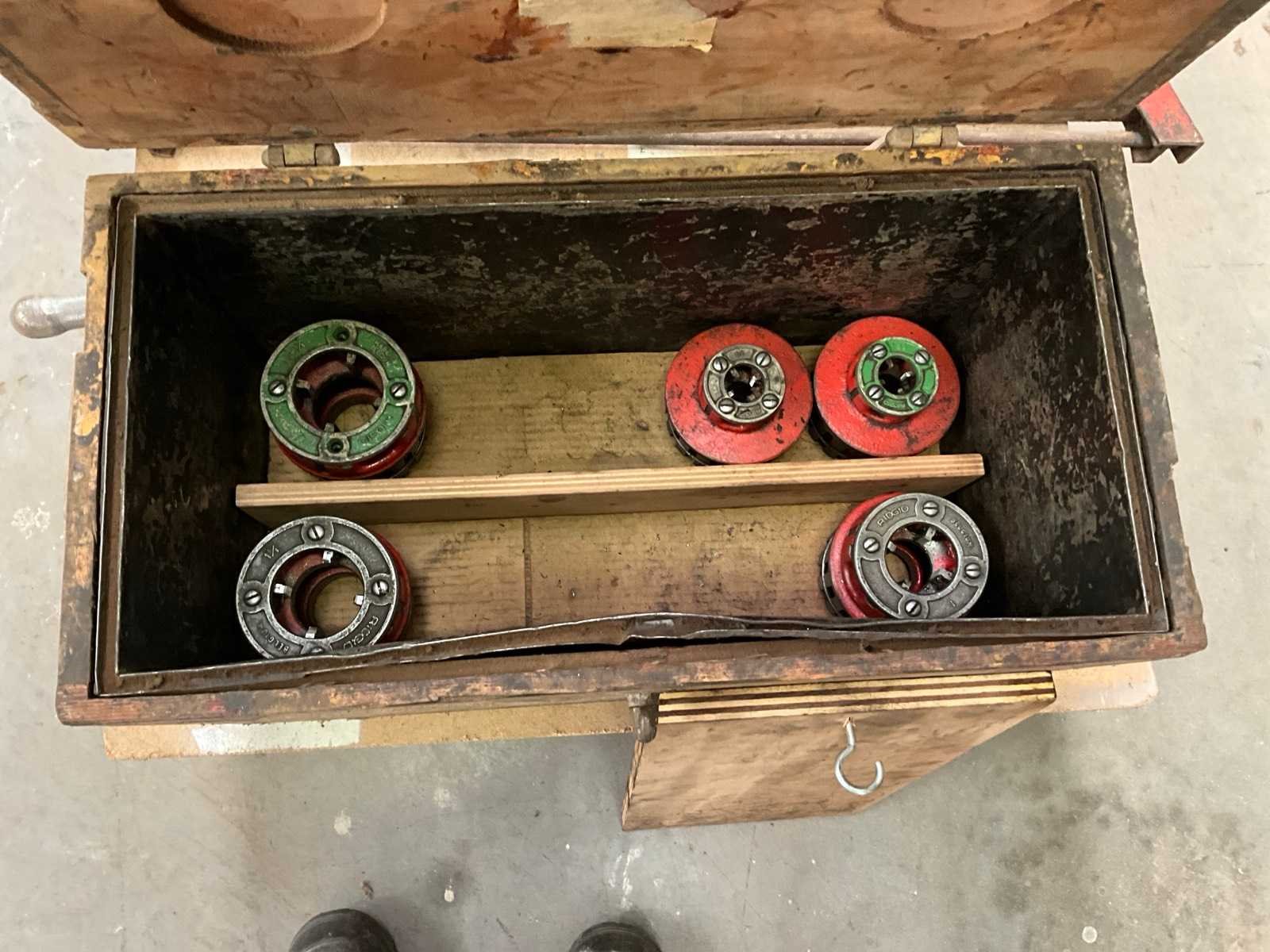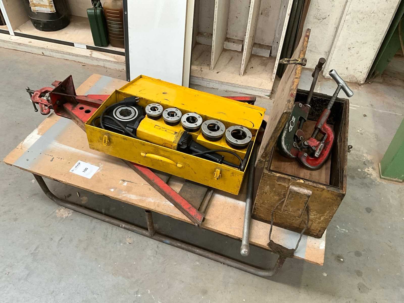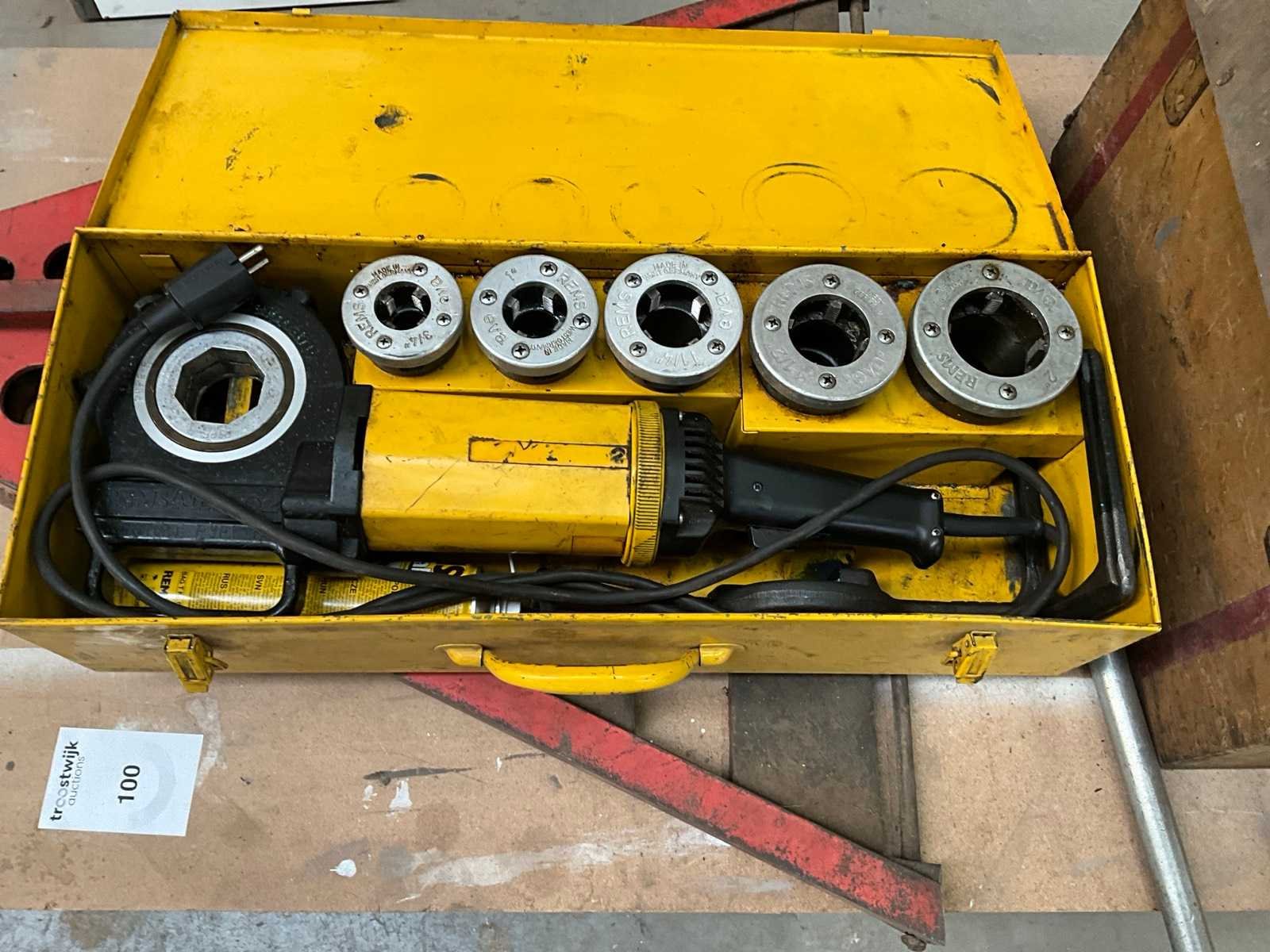 Bestaand uit Rems Amigo 2 draadstangtrekker 1/8-2’’ 220 volt, +3-pikkel buizen opspannen, +kist met draadsnijmachines Nee