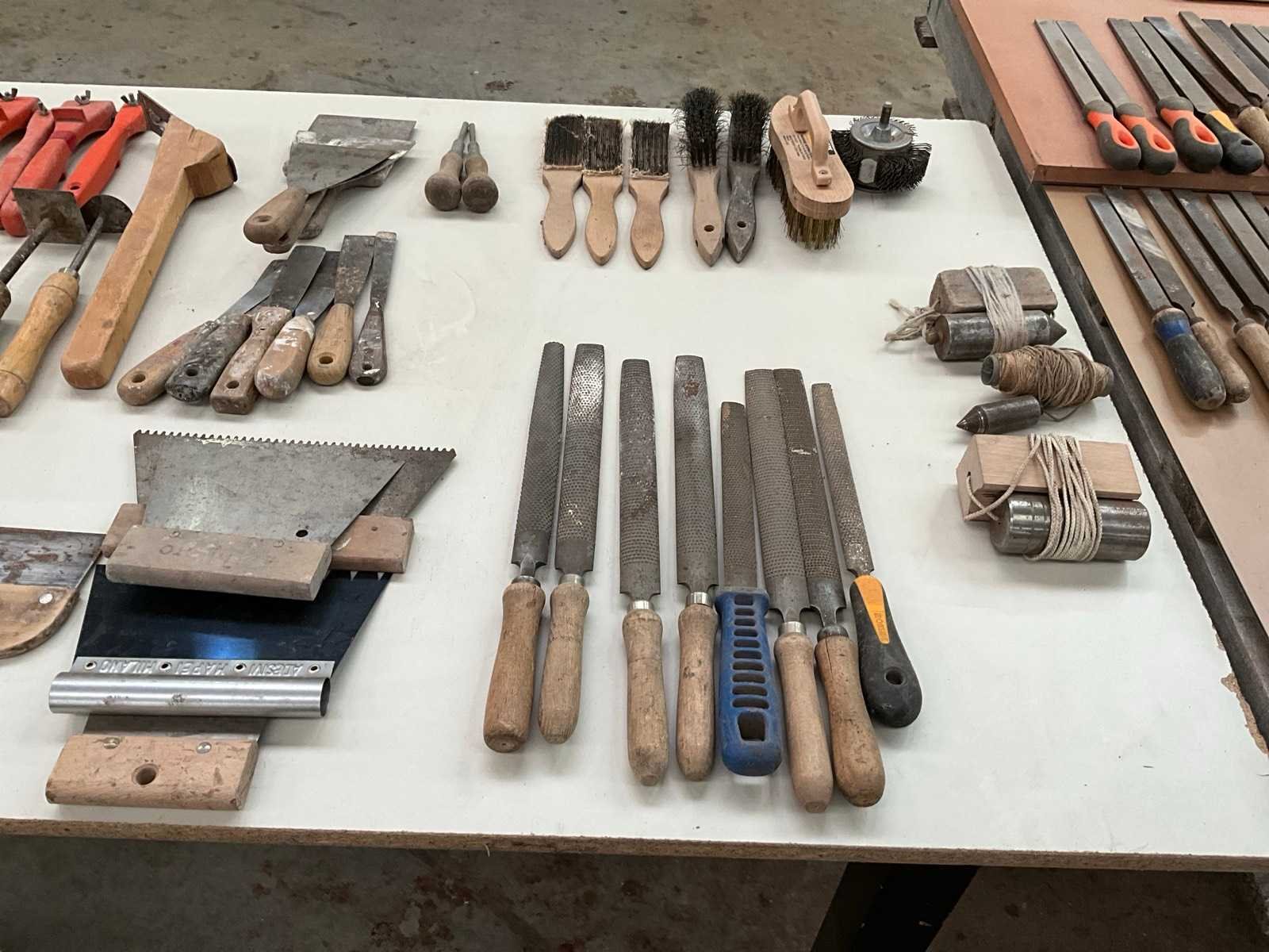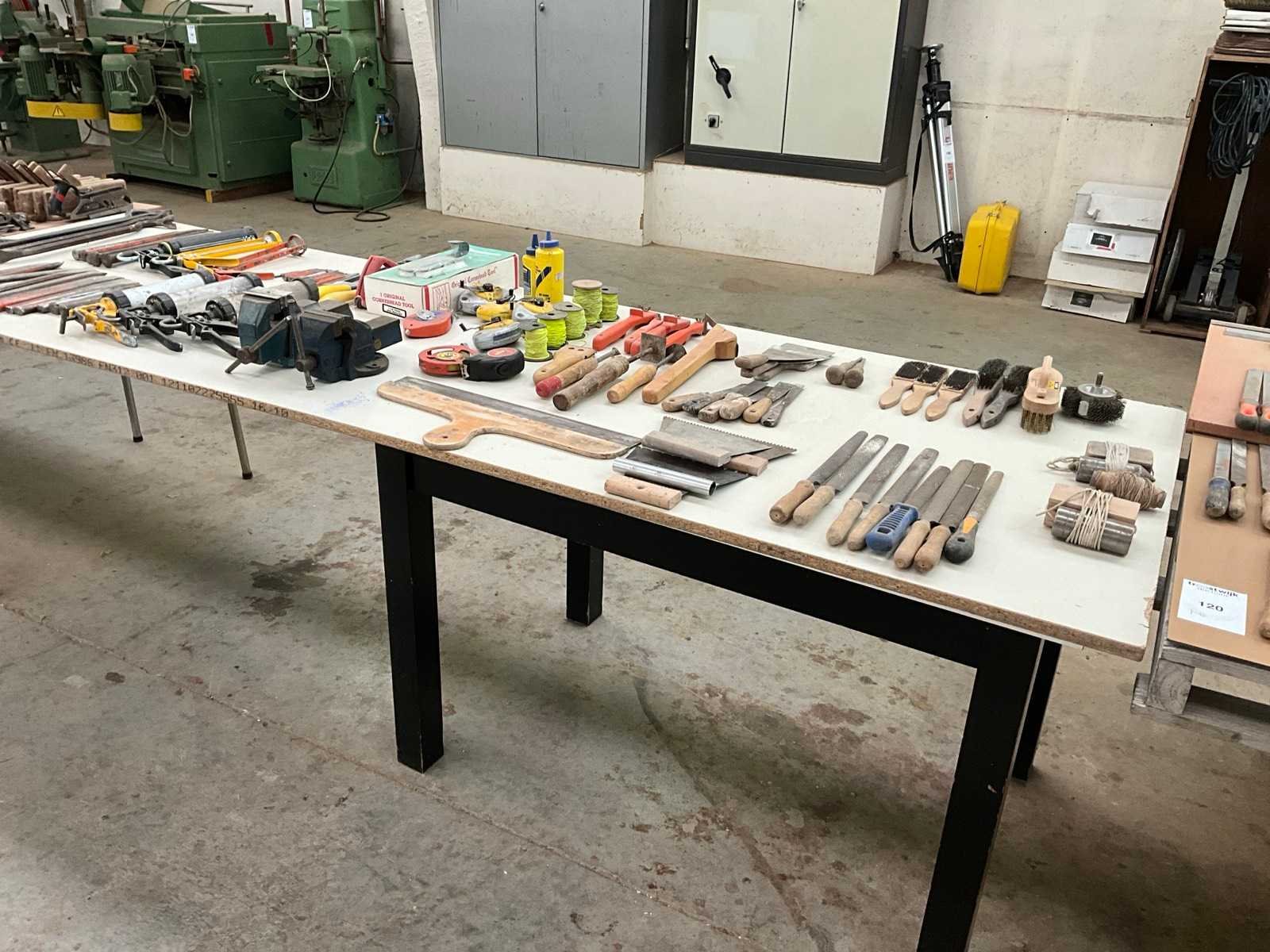 Bestaand uit grote partij beitels-selicone pompen, markeerkoord, breekijzers, pleitermessen, houtvijlen enz.. Nee