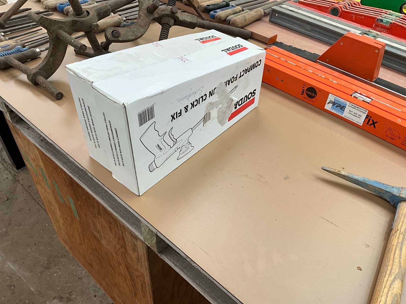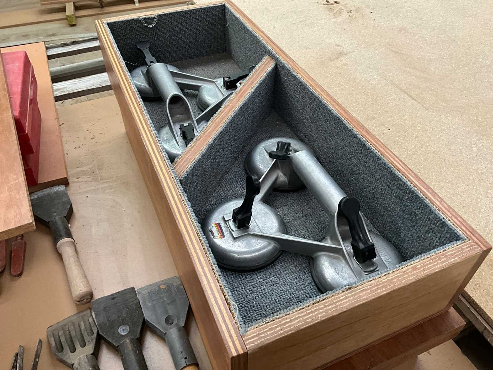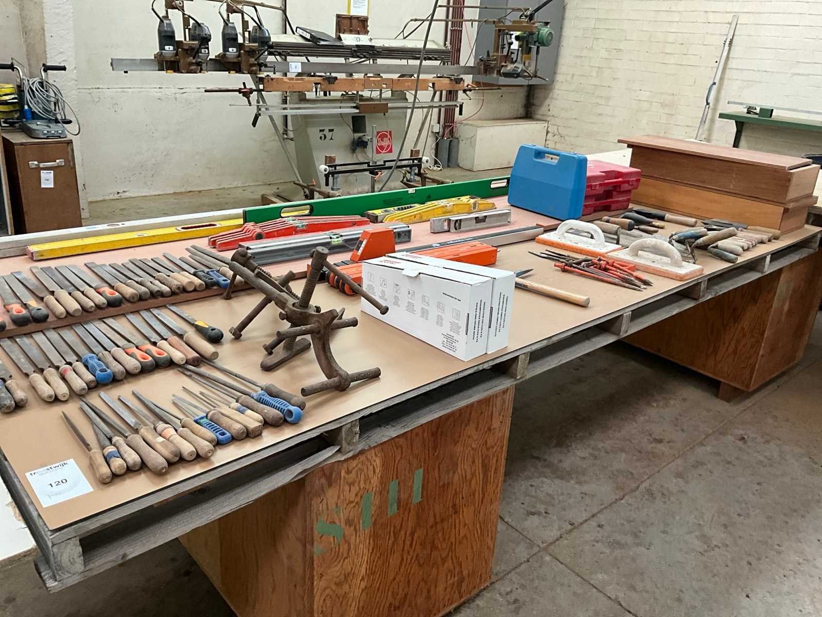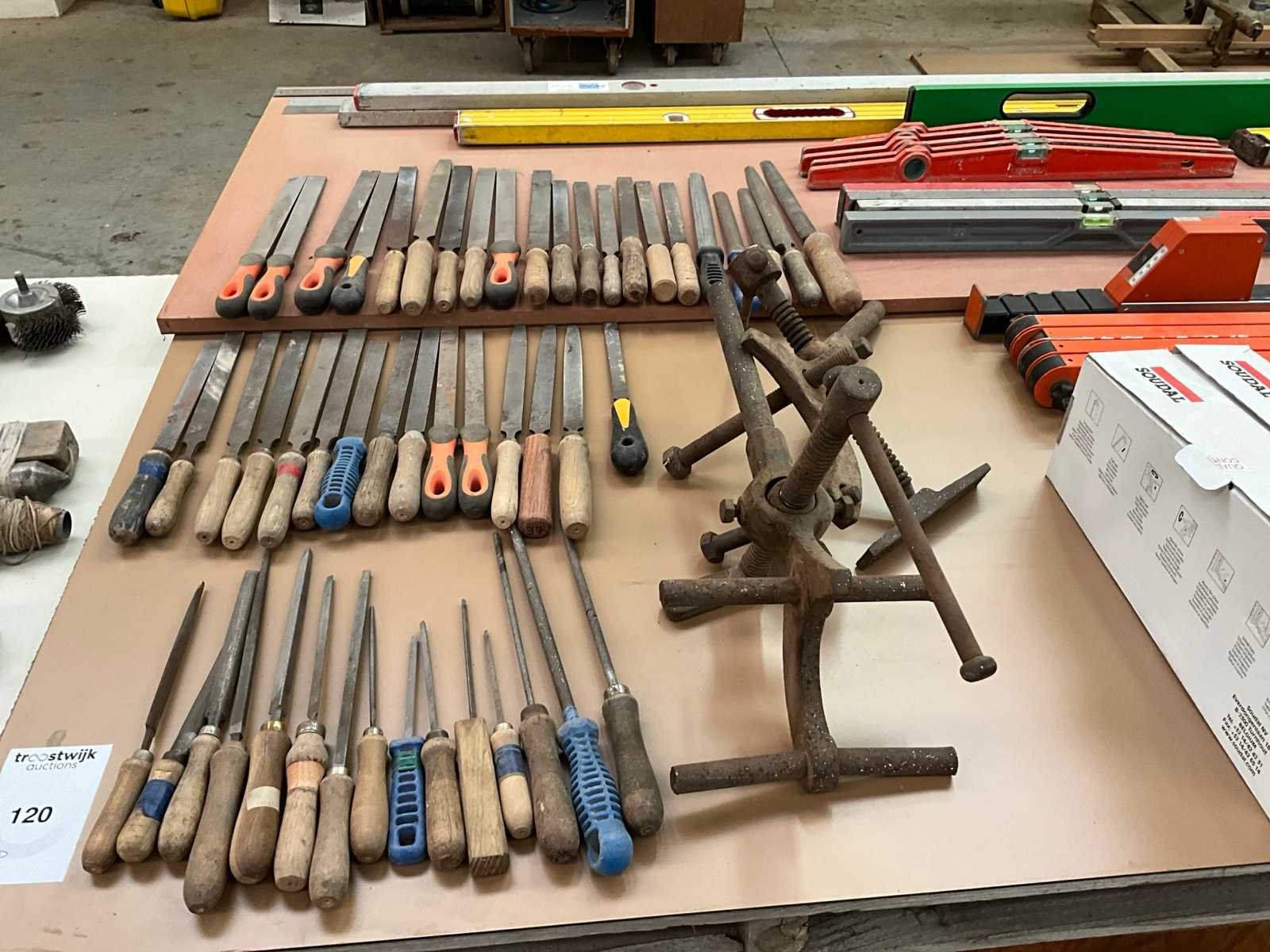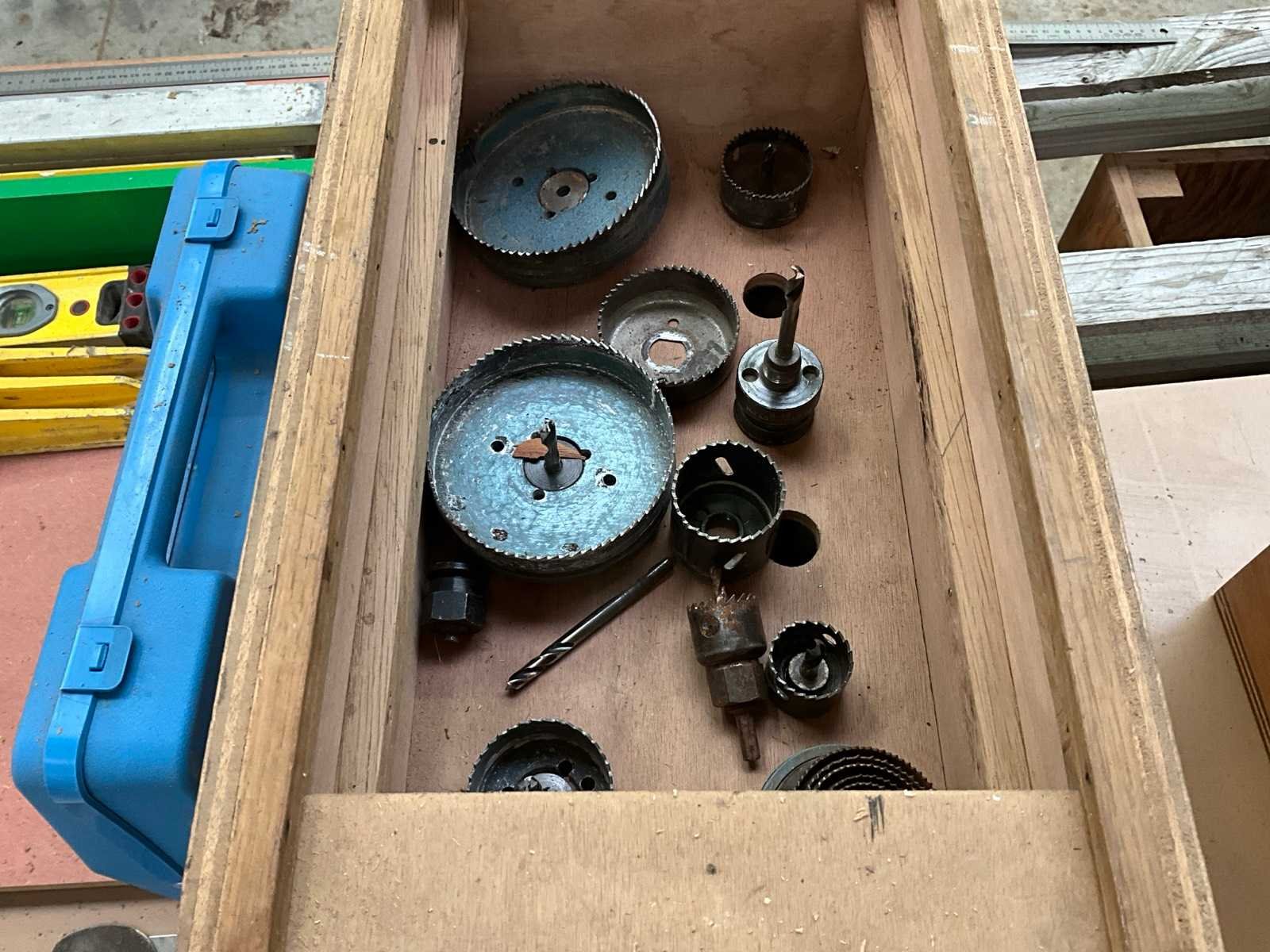 Bestaand uit grote partij ijzervijlen, waterpassen diverse lengtes, metsers materiaal, schuim pistolen, opspangerij, klokboren, glaszuigers enz.. Nee