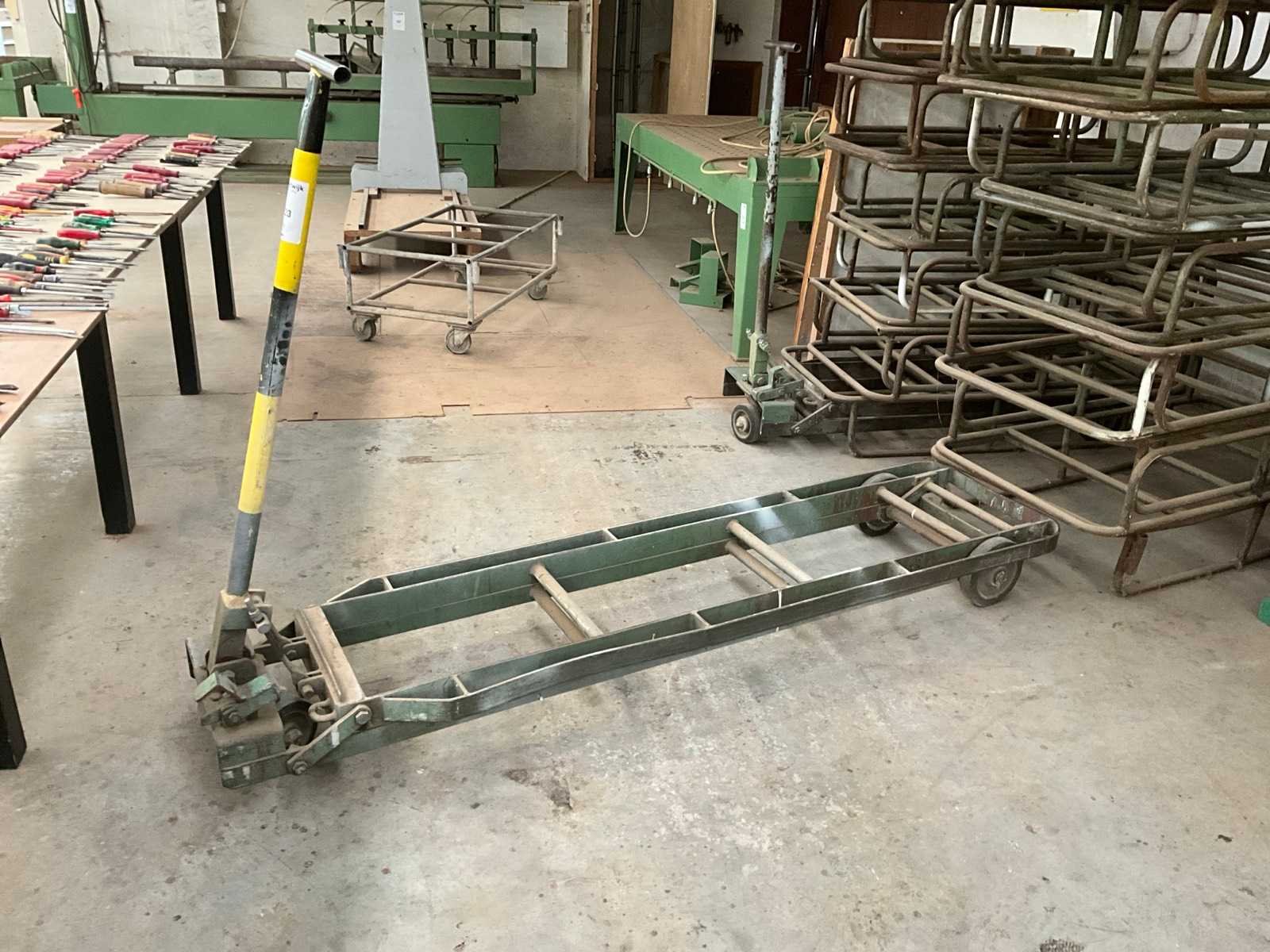 Bestaand uit circa 25 sledes afmetingen 70x130x23 cm + 2x transportwagen met mechanische hefinrichting Nee