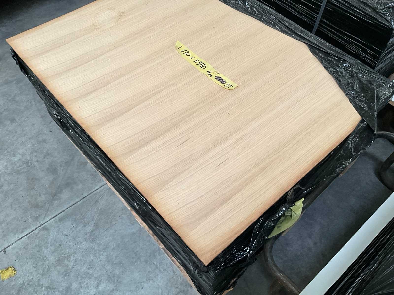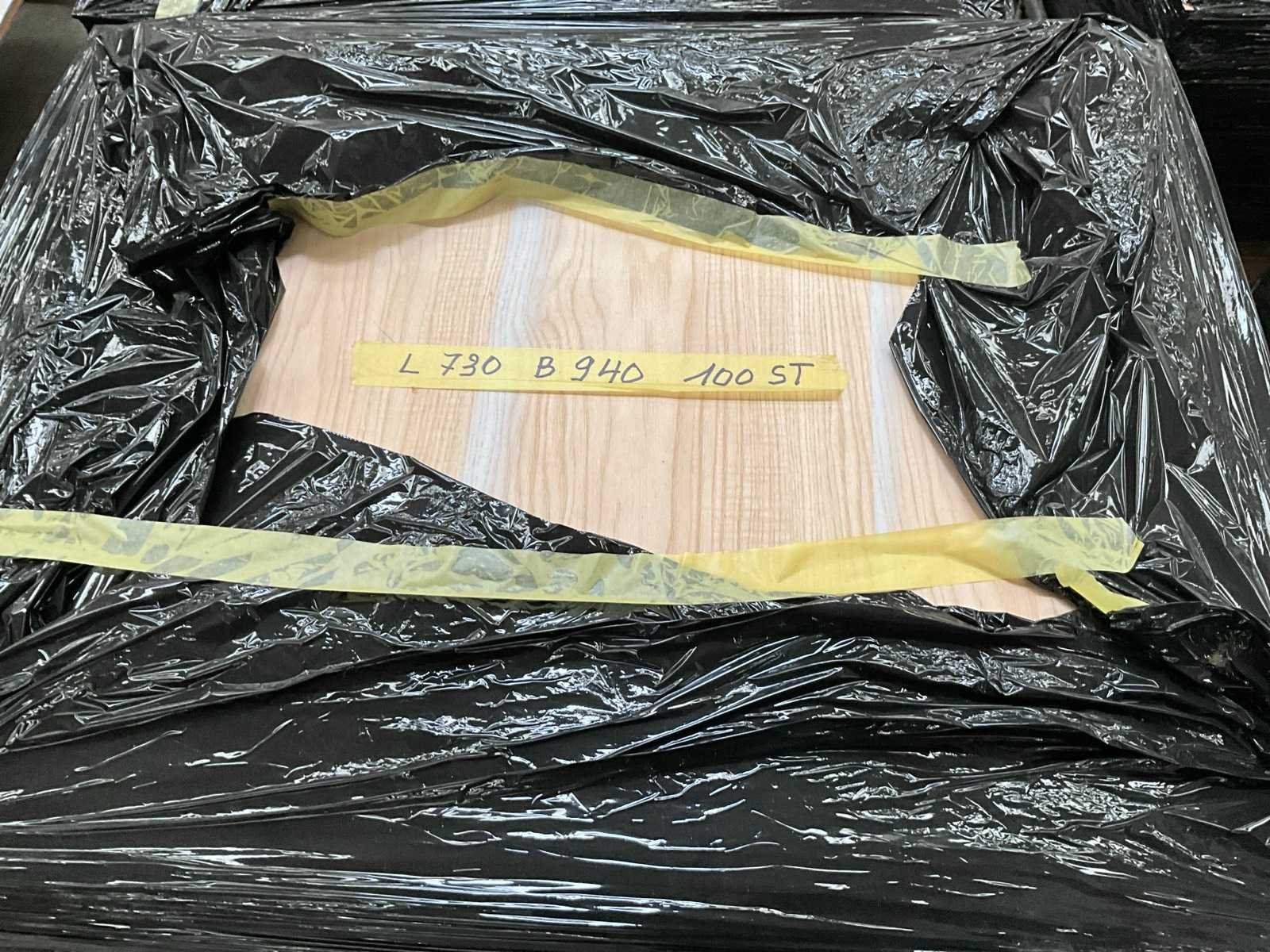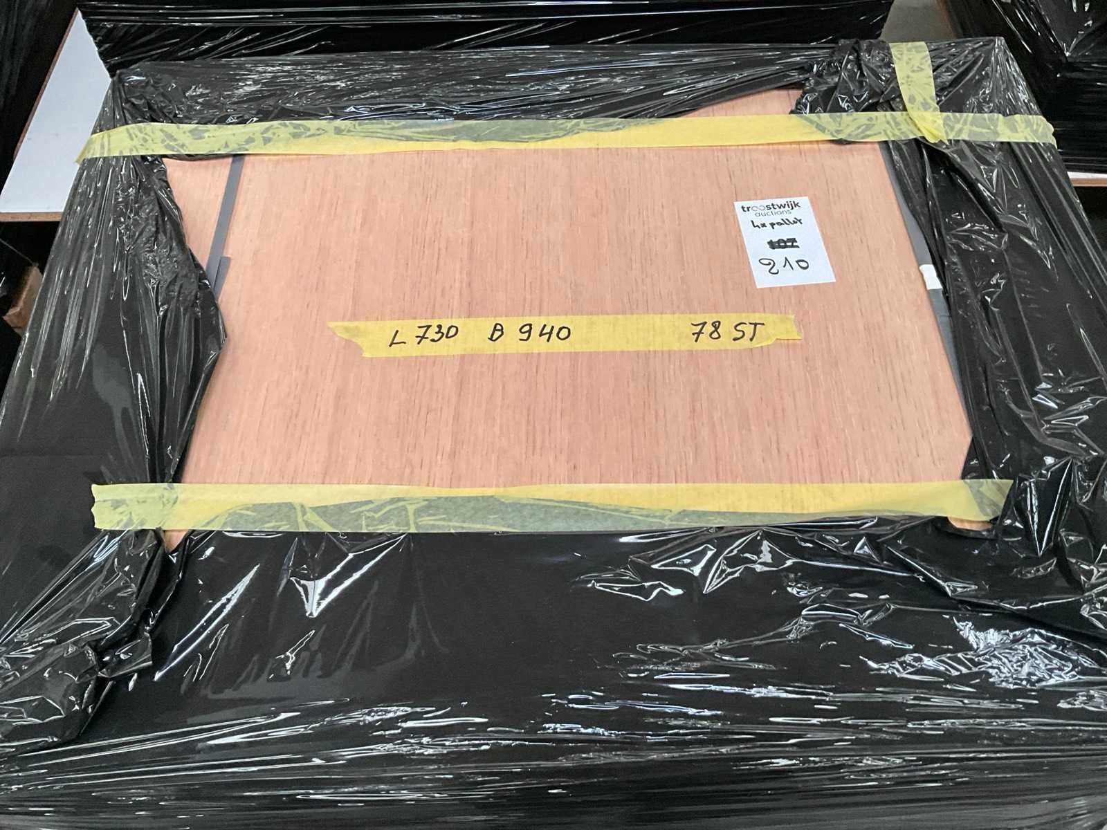 Bestaand uit 4x pallet triplex met eenzijdig fineer Franse eik, totaal 370 stuks met afmeting per plaat 730x940 mm Nee