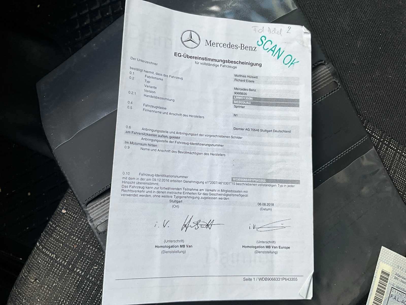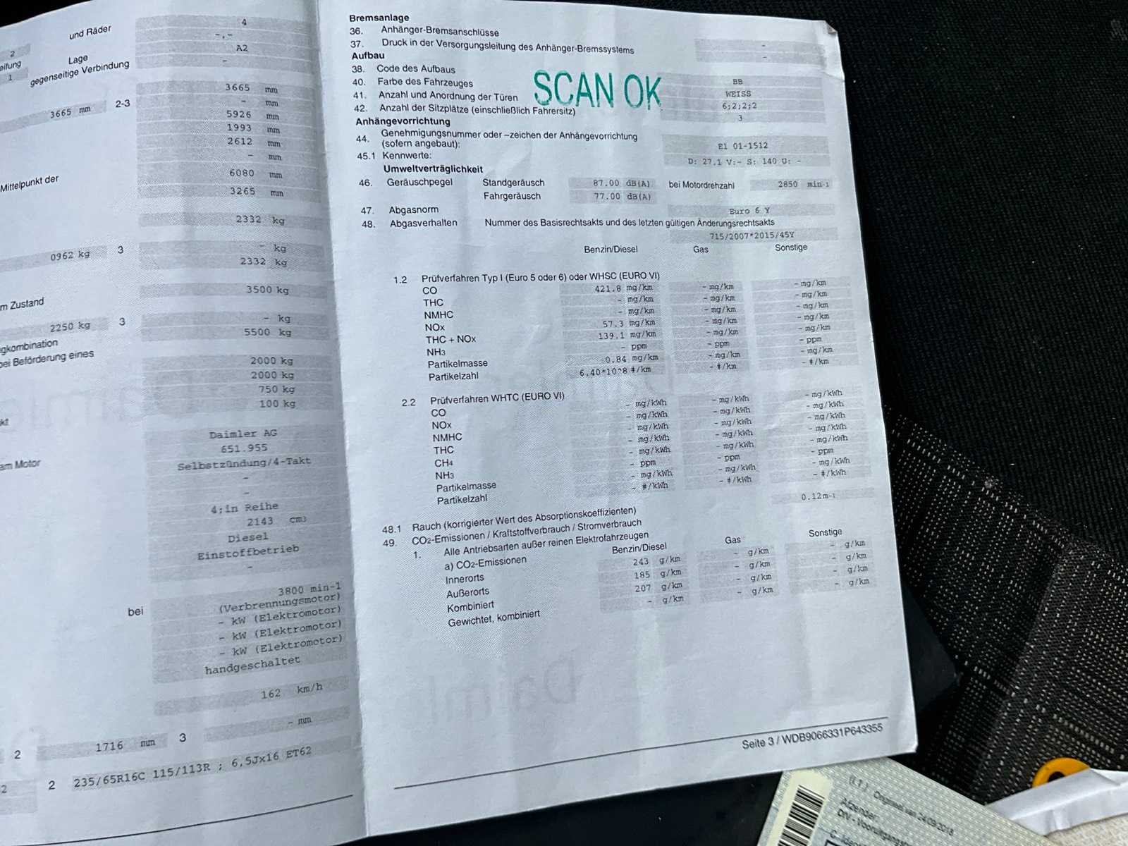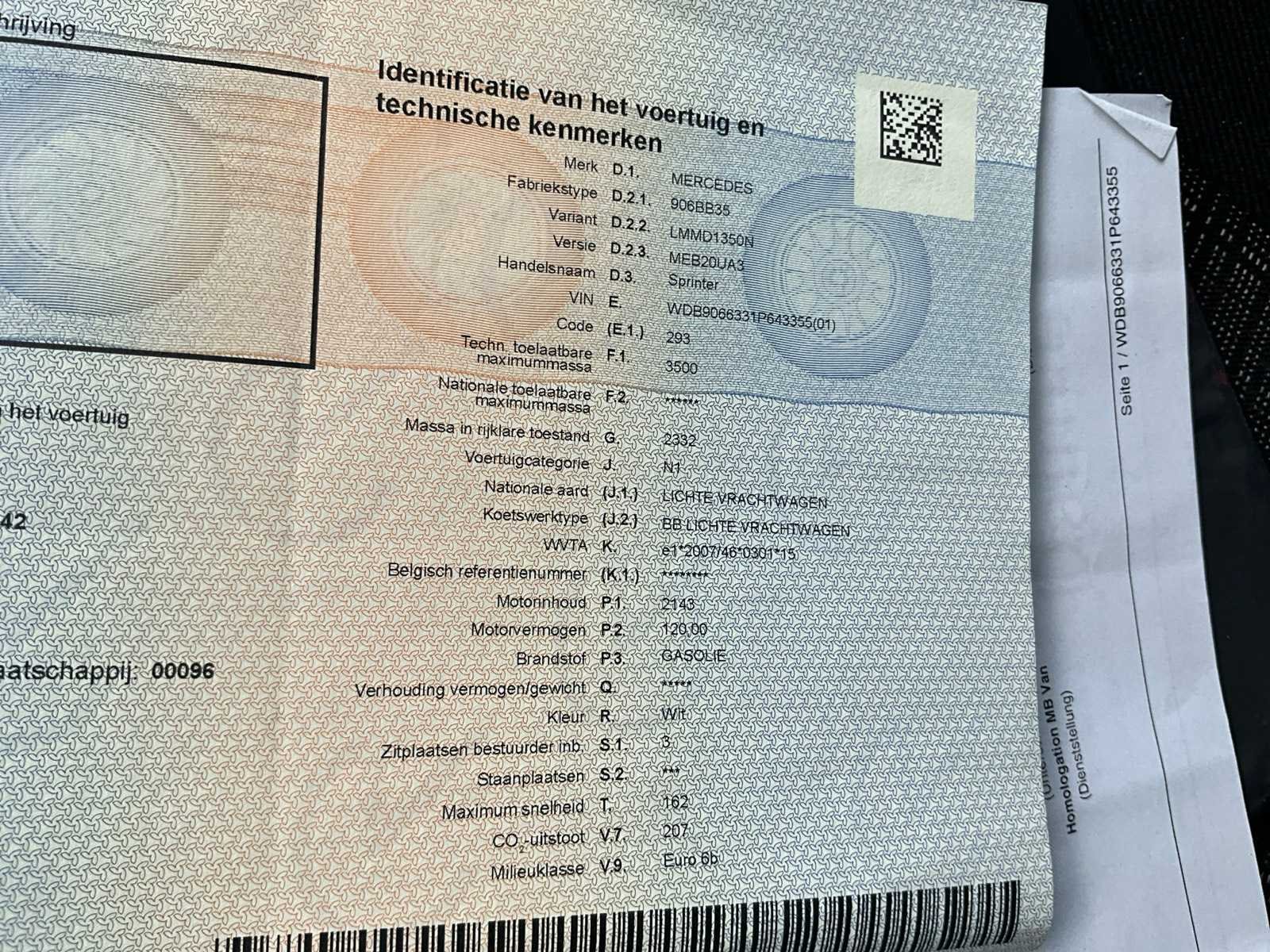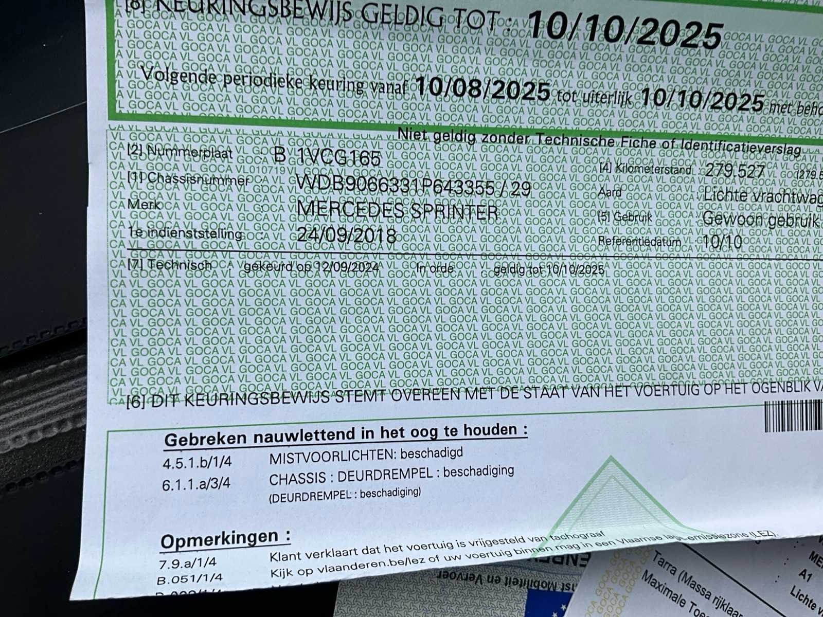 Kilometerstand werd opgenomen op 12/09/2024 ! Nee Kenteken: 1VGG165 Merk: Mercedes Type: Sprinter Bouwjaar: 2018 Chassisnummer: WDB9066331P643355 Afgelezen kilometerstand: 279527km Cilinderinhoud: 2143cc Vermogen (kW): 120kW Brandstof: Gasolie Datum eerste inschrijving: 24/09/2018 Aantal zitplaatsen: 3 Nationaliteit documenten: Belgisch Aantal sleutels: 2 Laadvermogen: 3500kg CO2-uitstoot NEDC: 207 Emissieklasse: Euro 6b Kentekenpapieren compleet?: true Boorddocumenten aanwezig?: true Startinformatie: Start niet !