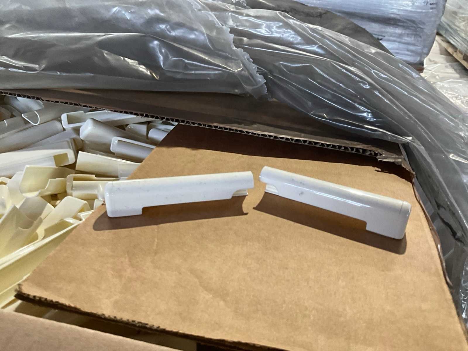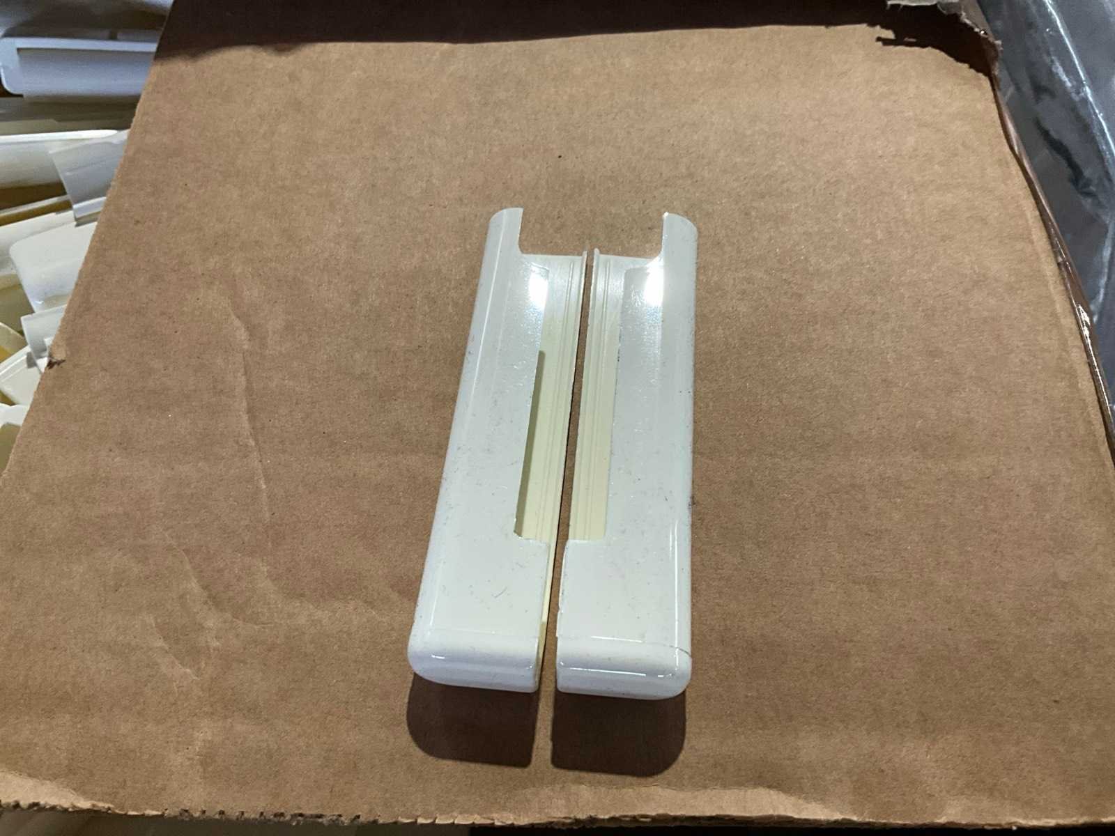In kunststoffen uitvoering wit, telkens set L+R, 7,5 cm lang, per 1500 sets in doos, totaal 20 grote dozen op 1 pallet. Nee