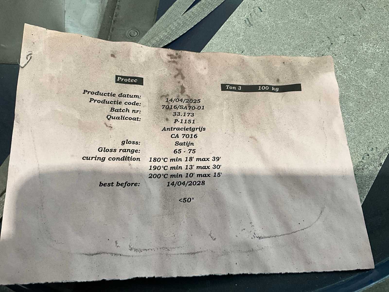 Vat zeoliet moleculaire zeven, elk van 100 kg, waaronder in qualicoat P-1151 antracietgrijs CA7016 satijn en donker mat. Nee Merk: Siliporite Type: Arkema NK30 BO.7