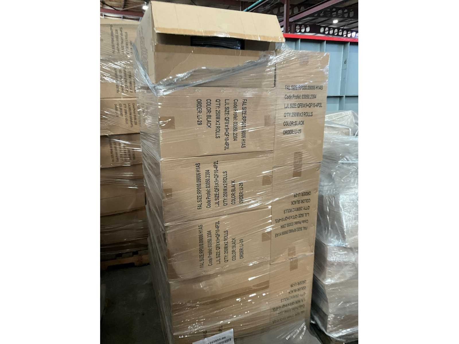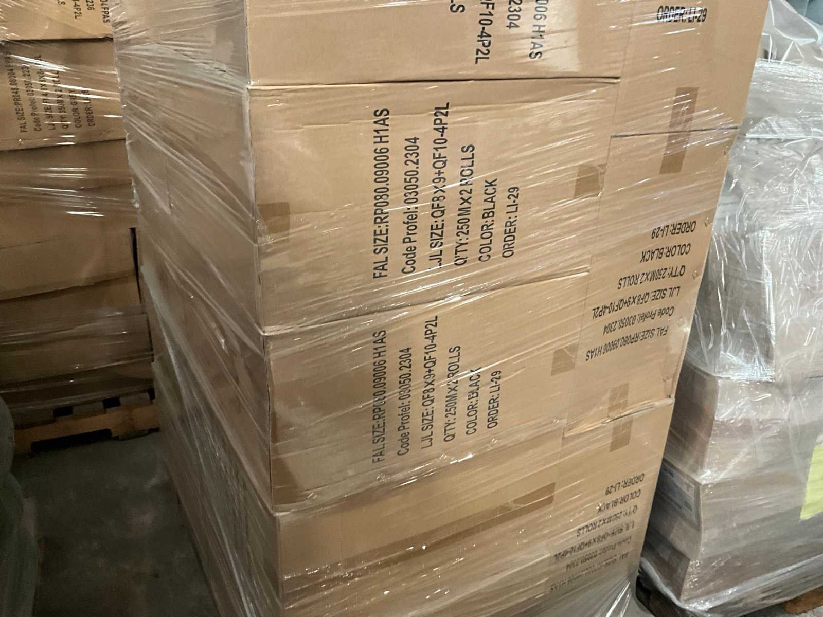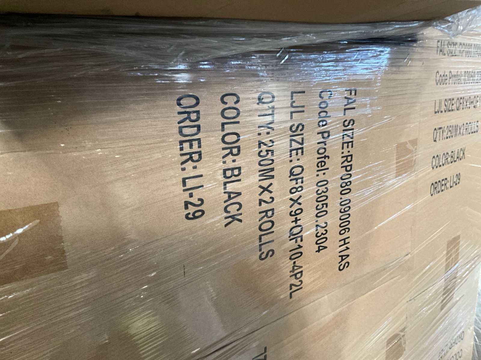 36 rollen, elk inhoudende 250 meter strip, specificaties zie foto, kleur zwart, verpakt per 2 rollen in doos. Totaal : 9000 lpm. Nee
